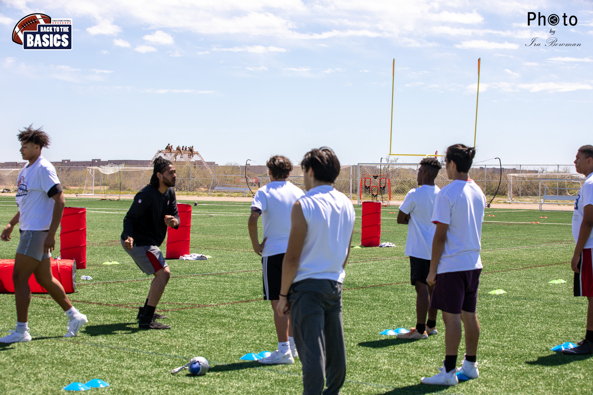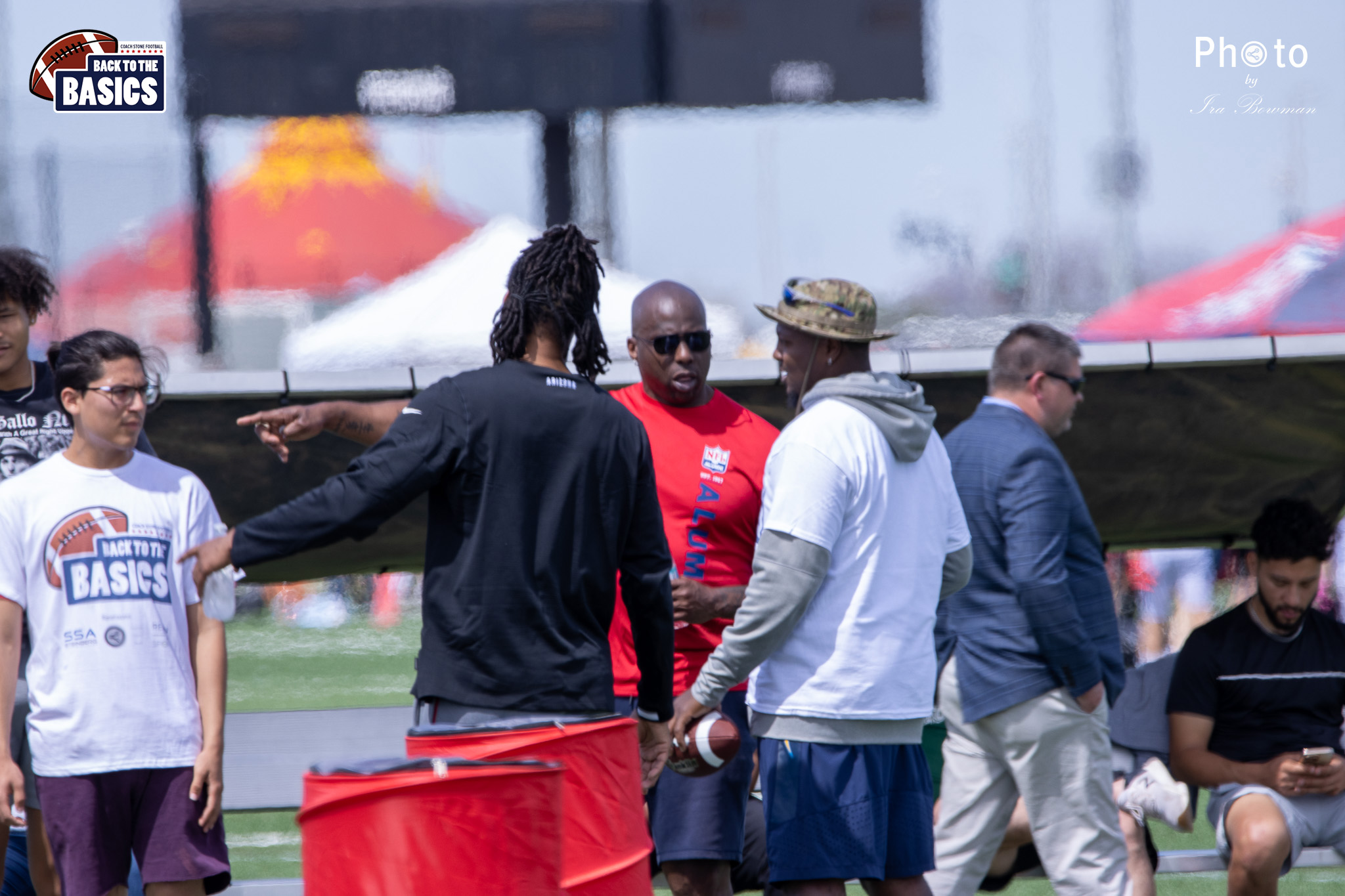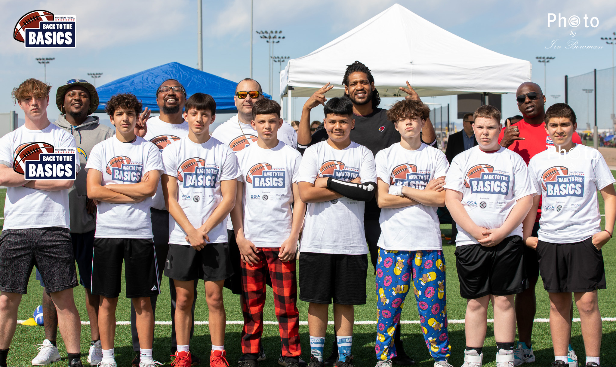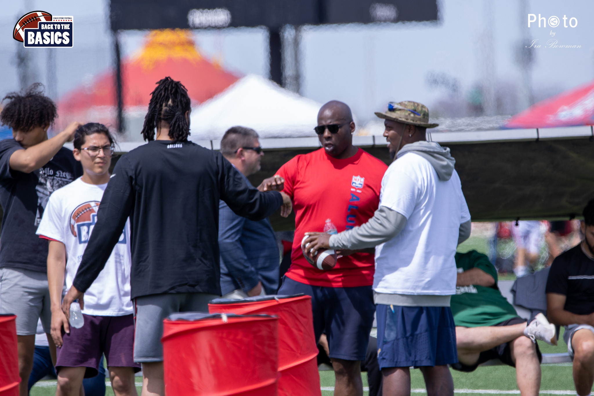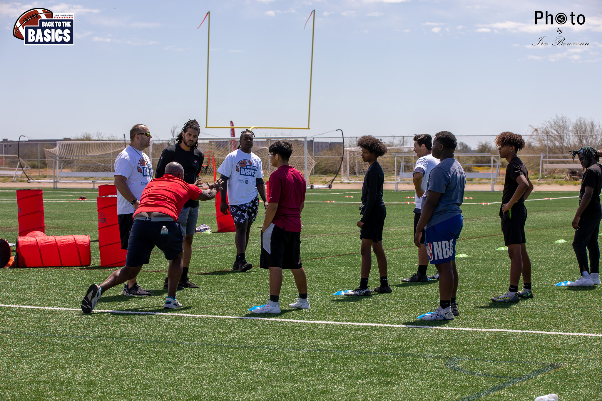 Steinberg Sports Academy hosted the Back to the Basics football camp, with Coach Stone and several former NFL Football Players including Super Bowl winning Chukky Okobi, Reggie Walker, David Carter and Charmeachealle Moore II. All photos presented here were taken and are owned by Ira Bowman, and all rights are reserved.