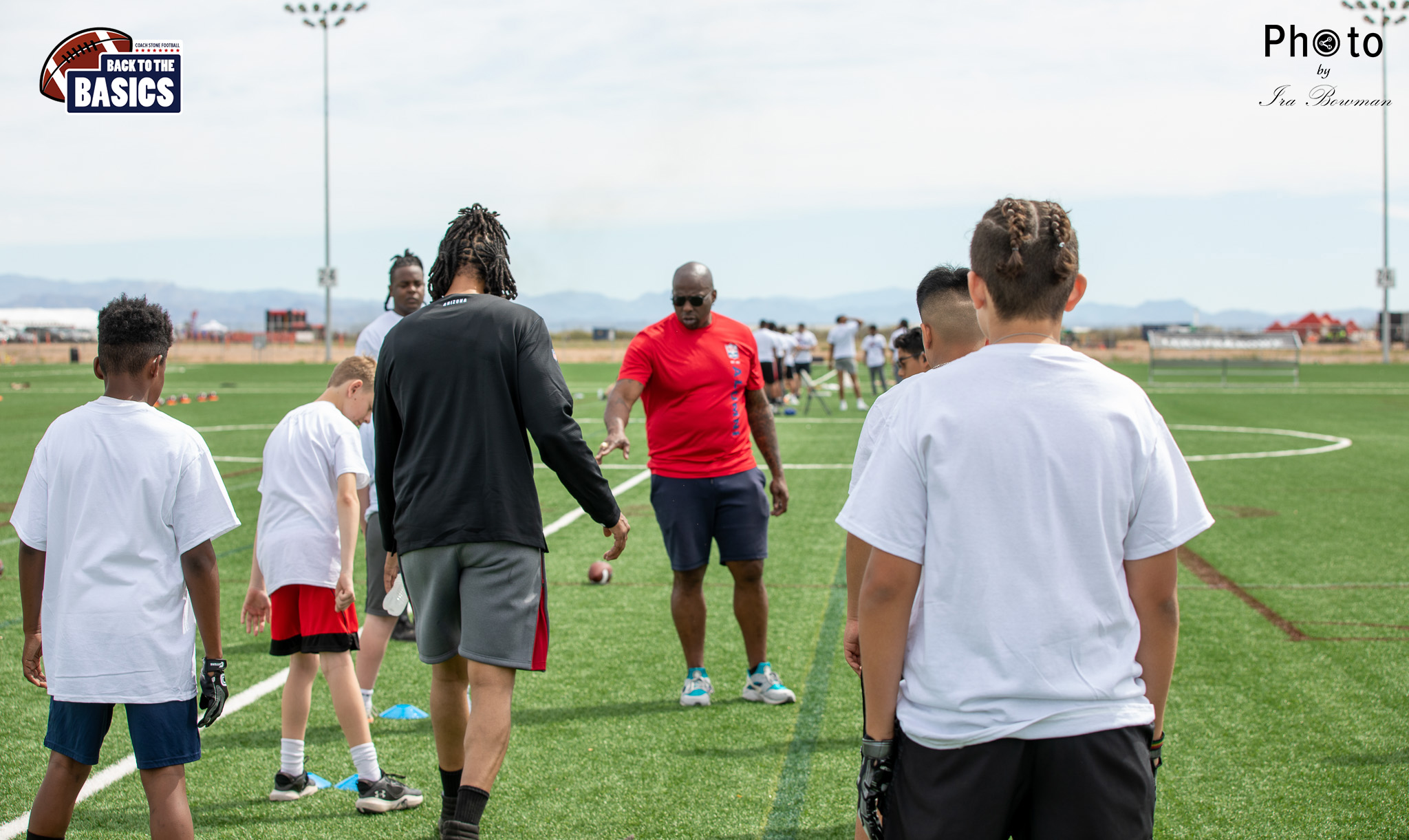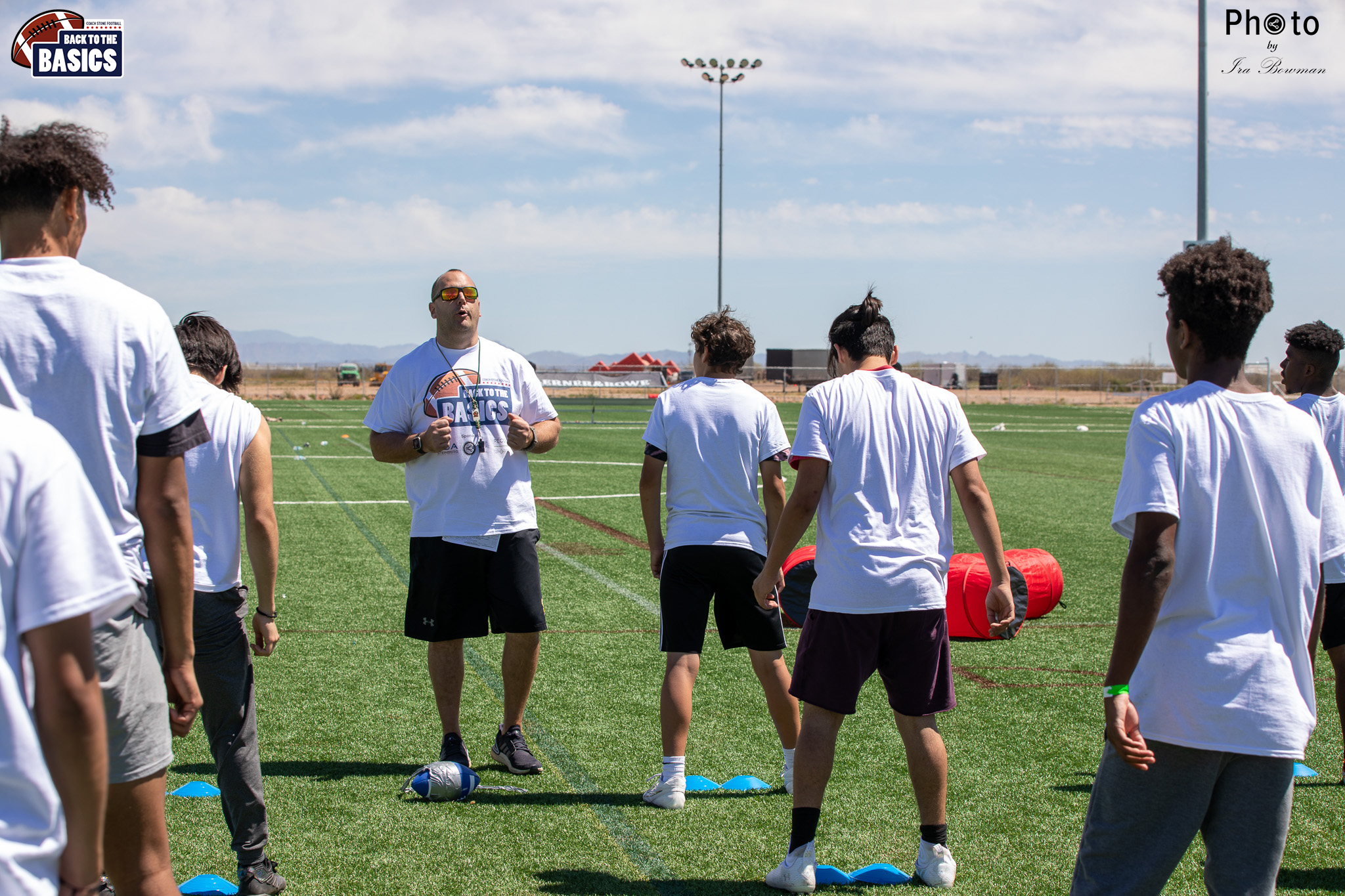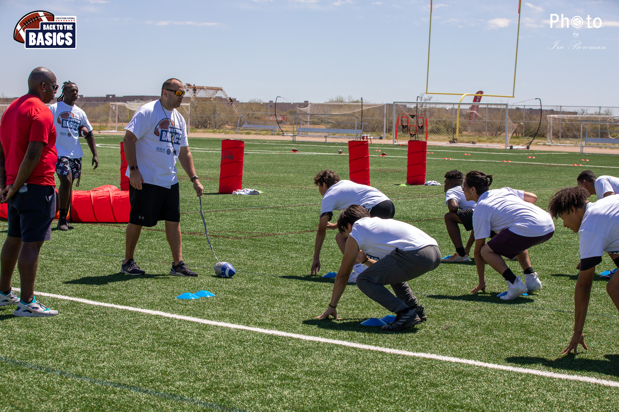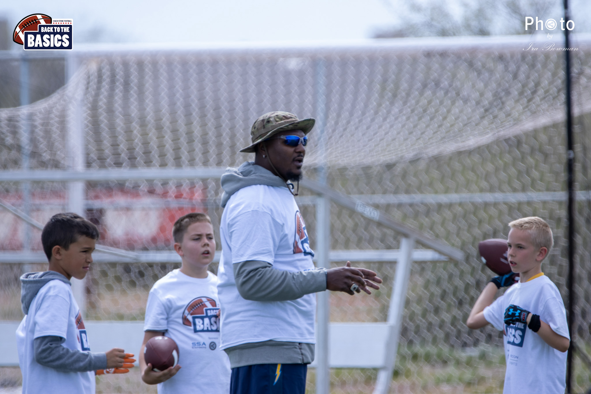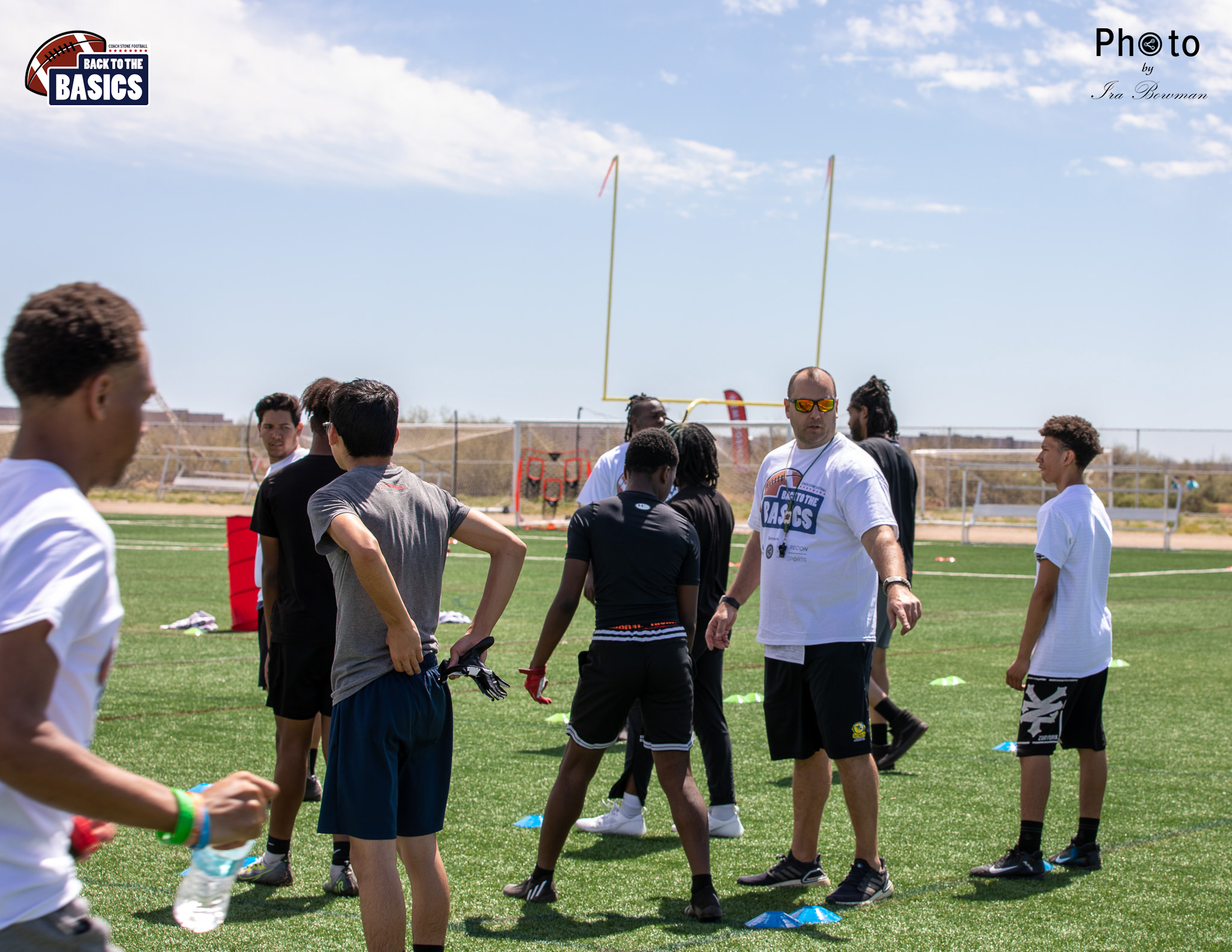 Steinberg Sports Academy hosted the Back to the Basics football camp, with Coach Stone and several former NFL Football Players including Super Bowl winning Chukky Okobi, Reggie Walker, David Carter and Charmeachealle Moore II. All photos presented here were taken and are owned by Ira Bowman, and all rights are reserved.