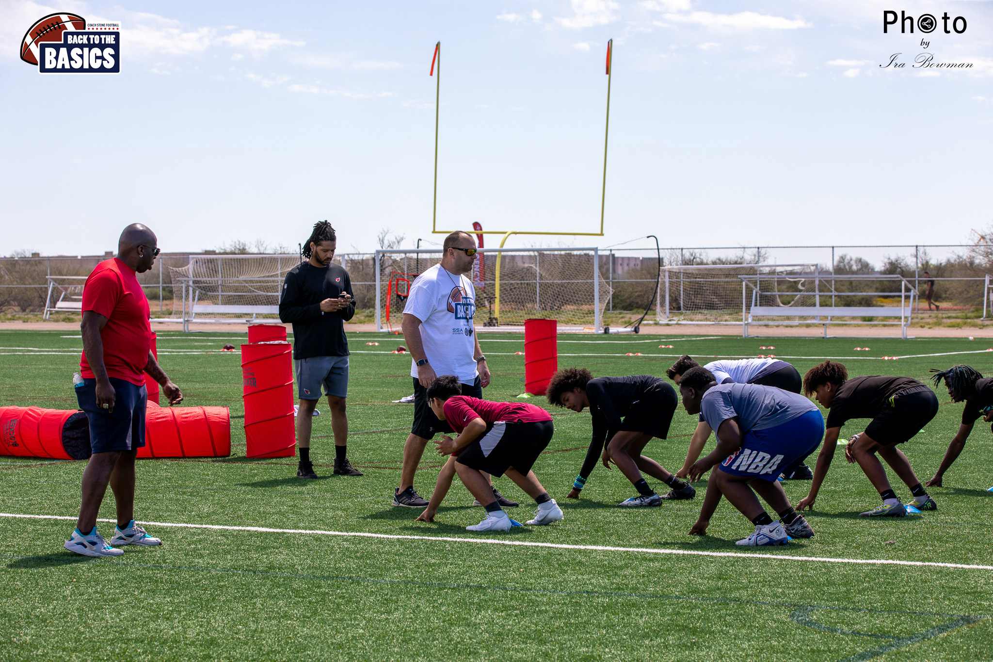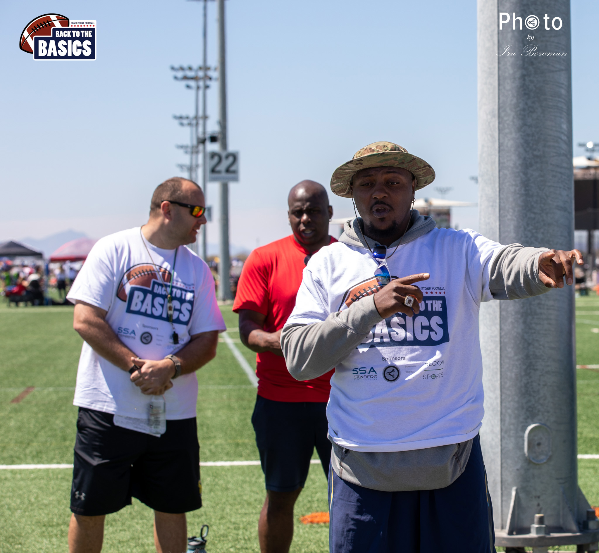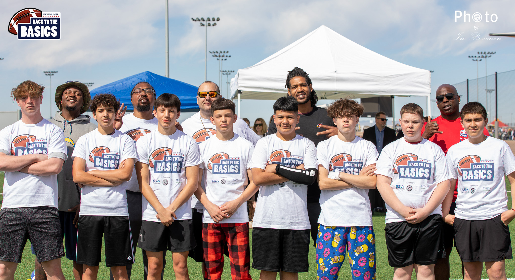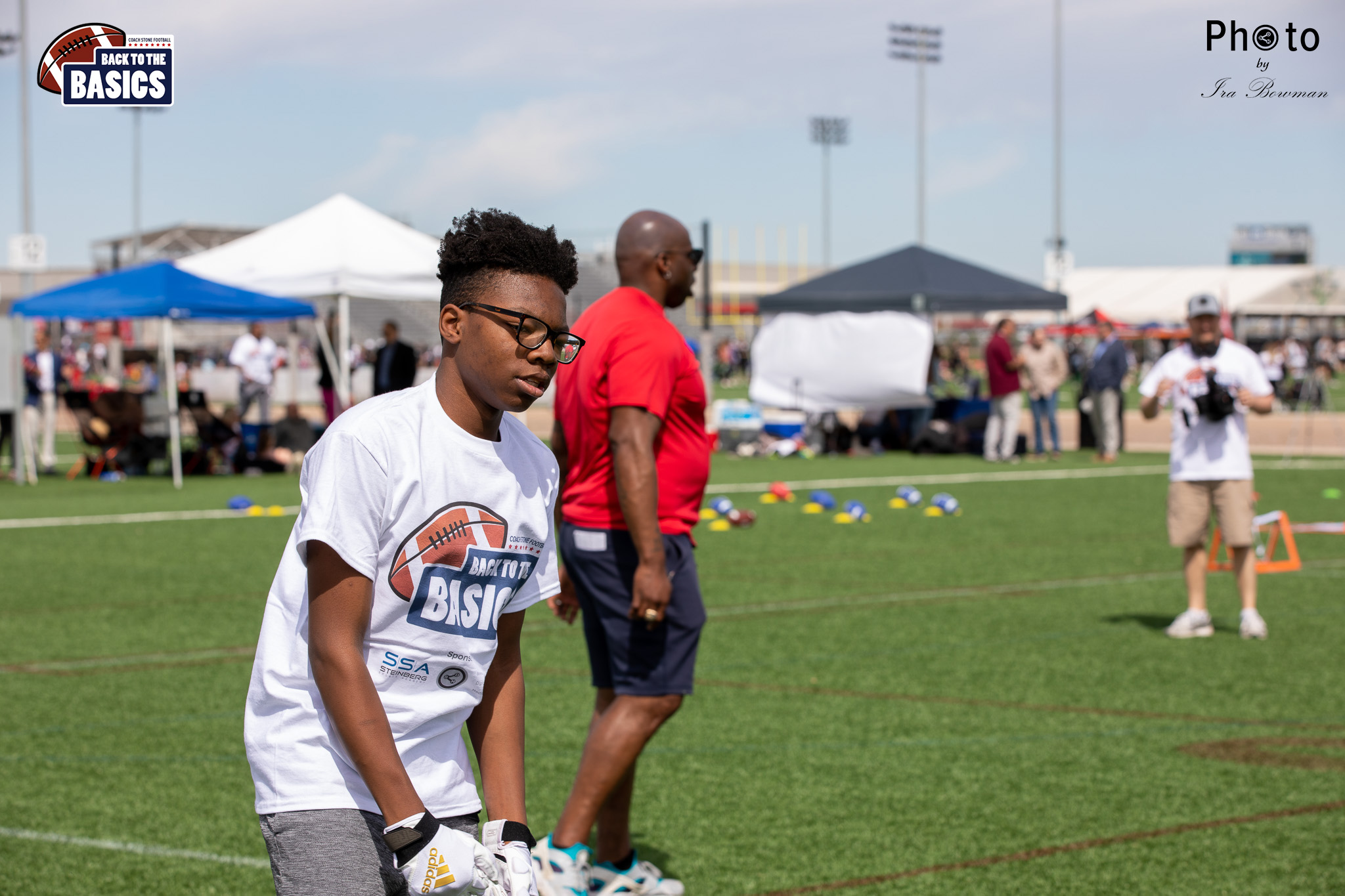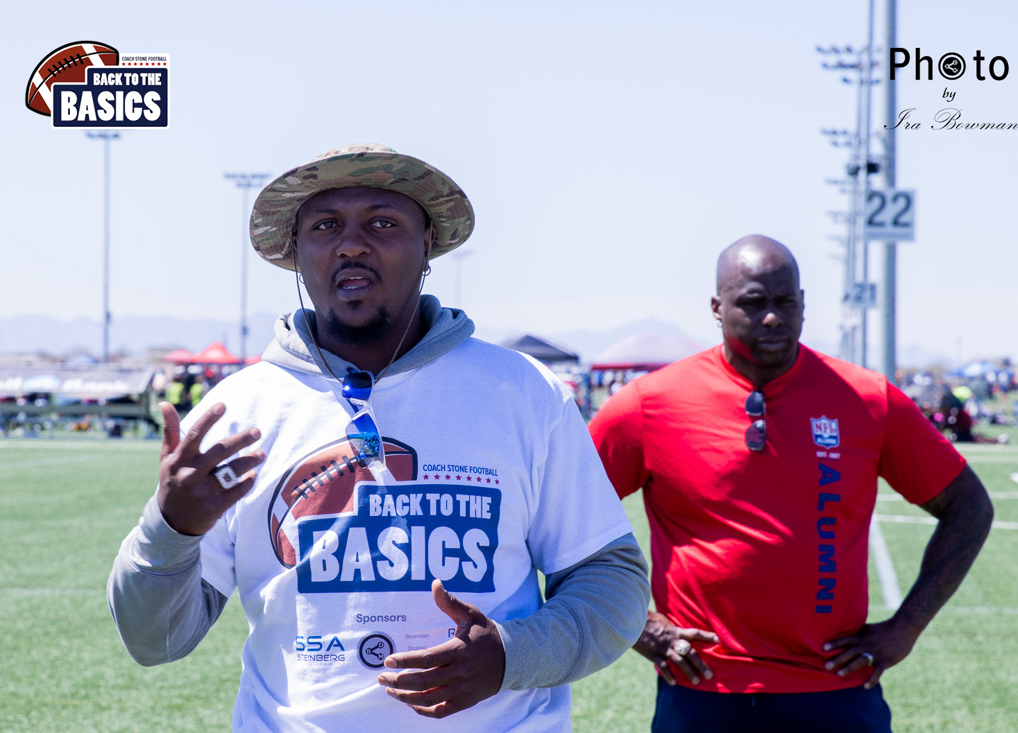 Steinberg Sports Academy hosted the Back to the Basics football camp, with Coach Stone and several former NFL Football Players including Super Bowl winning Chukky Okobi, Reggie Walker, David Carter and Charmeachealle Moore II. All photos presented here were taken and are owned by Ira Bowman, and all rights are reserved.