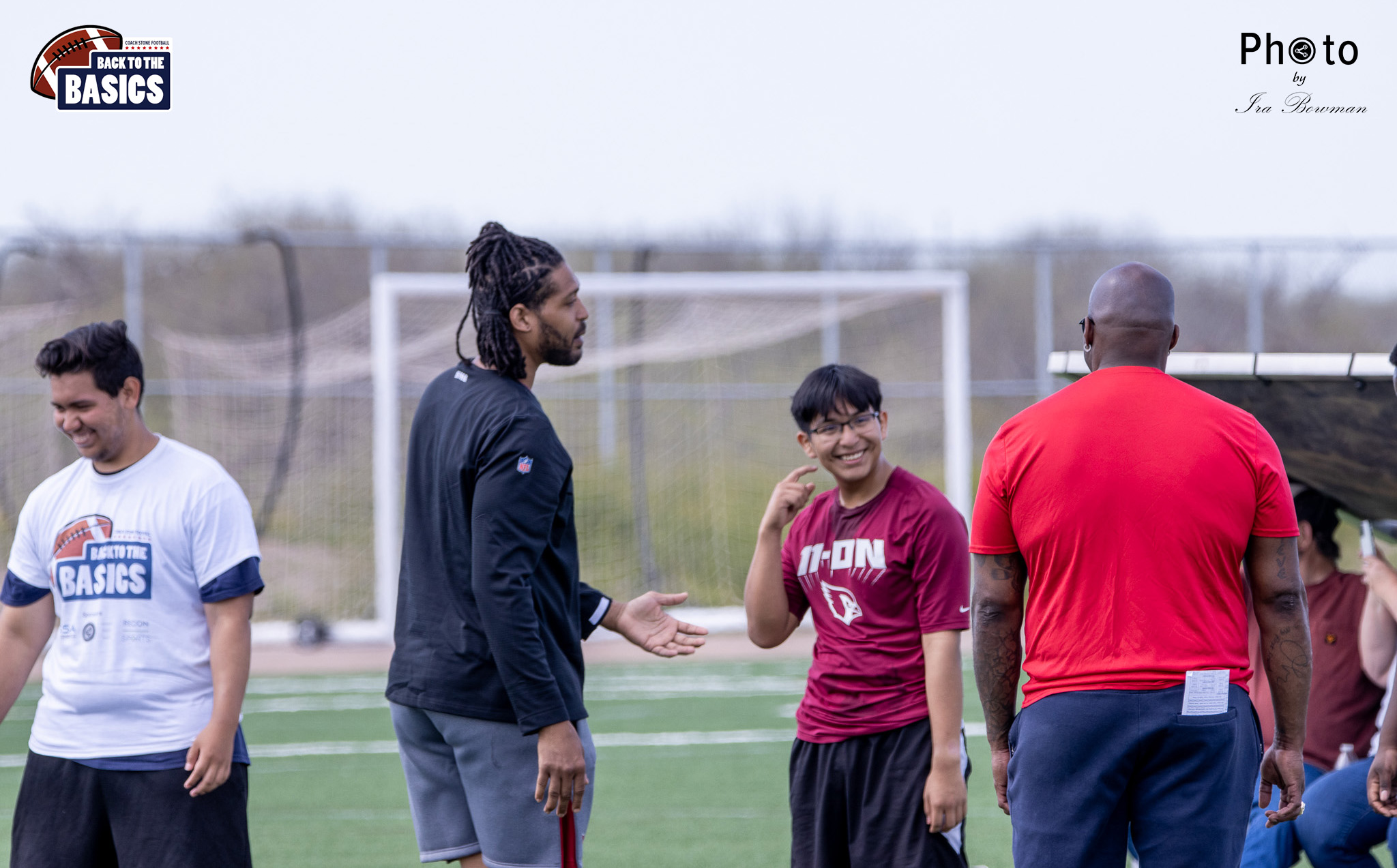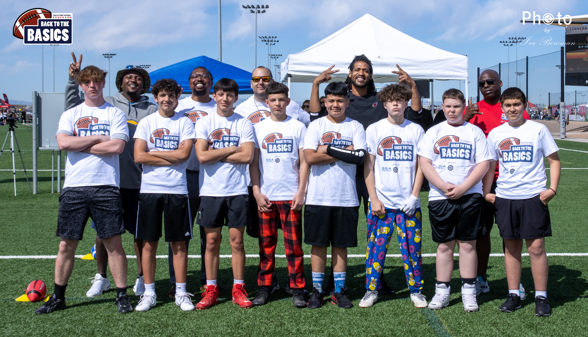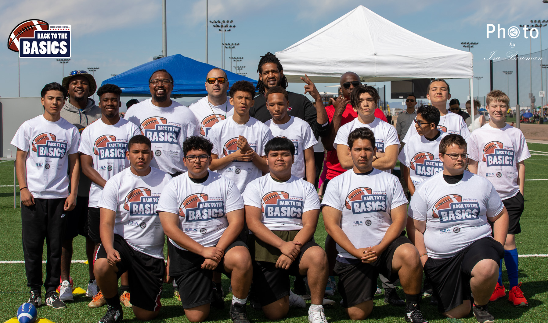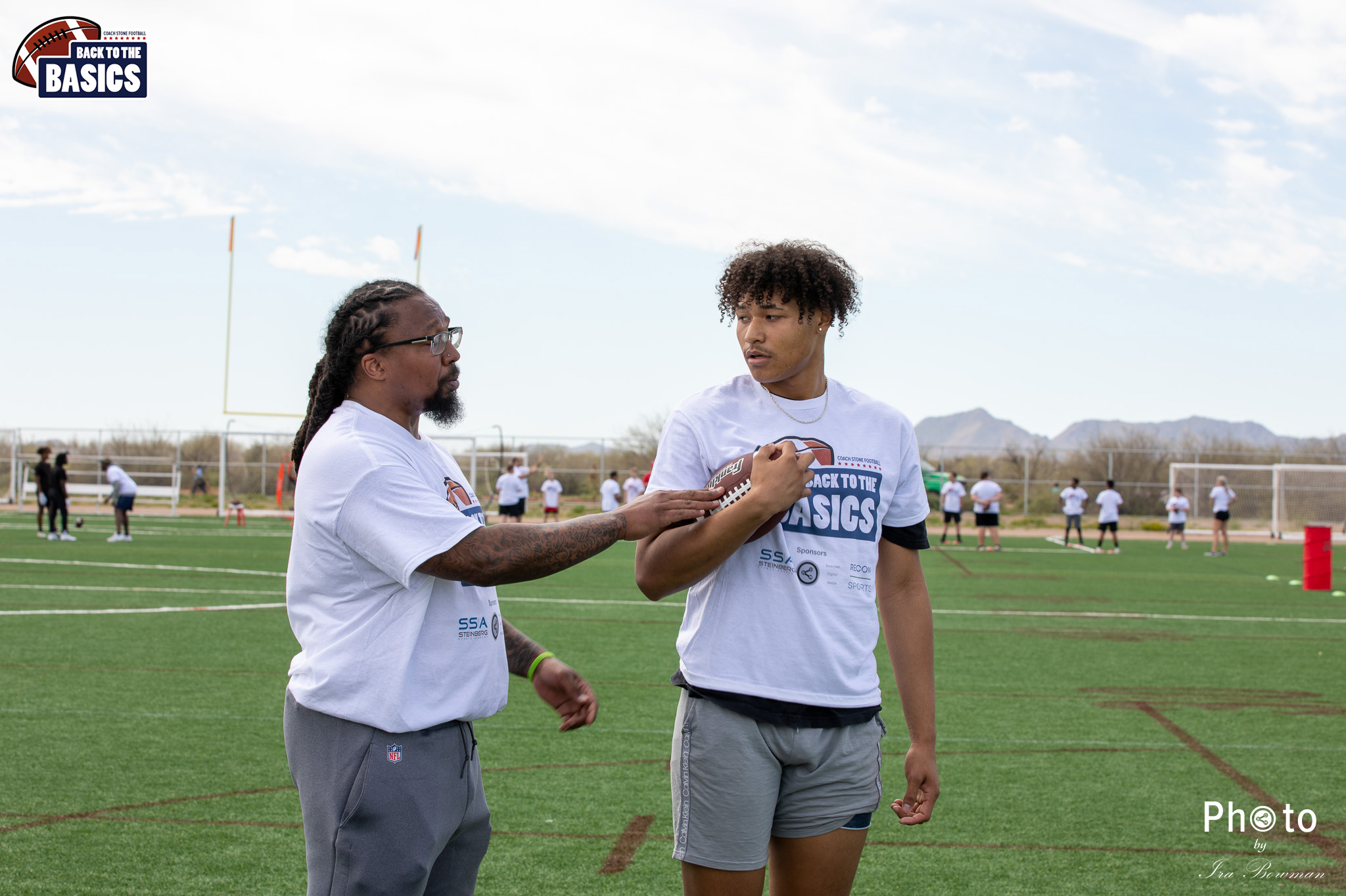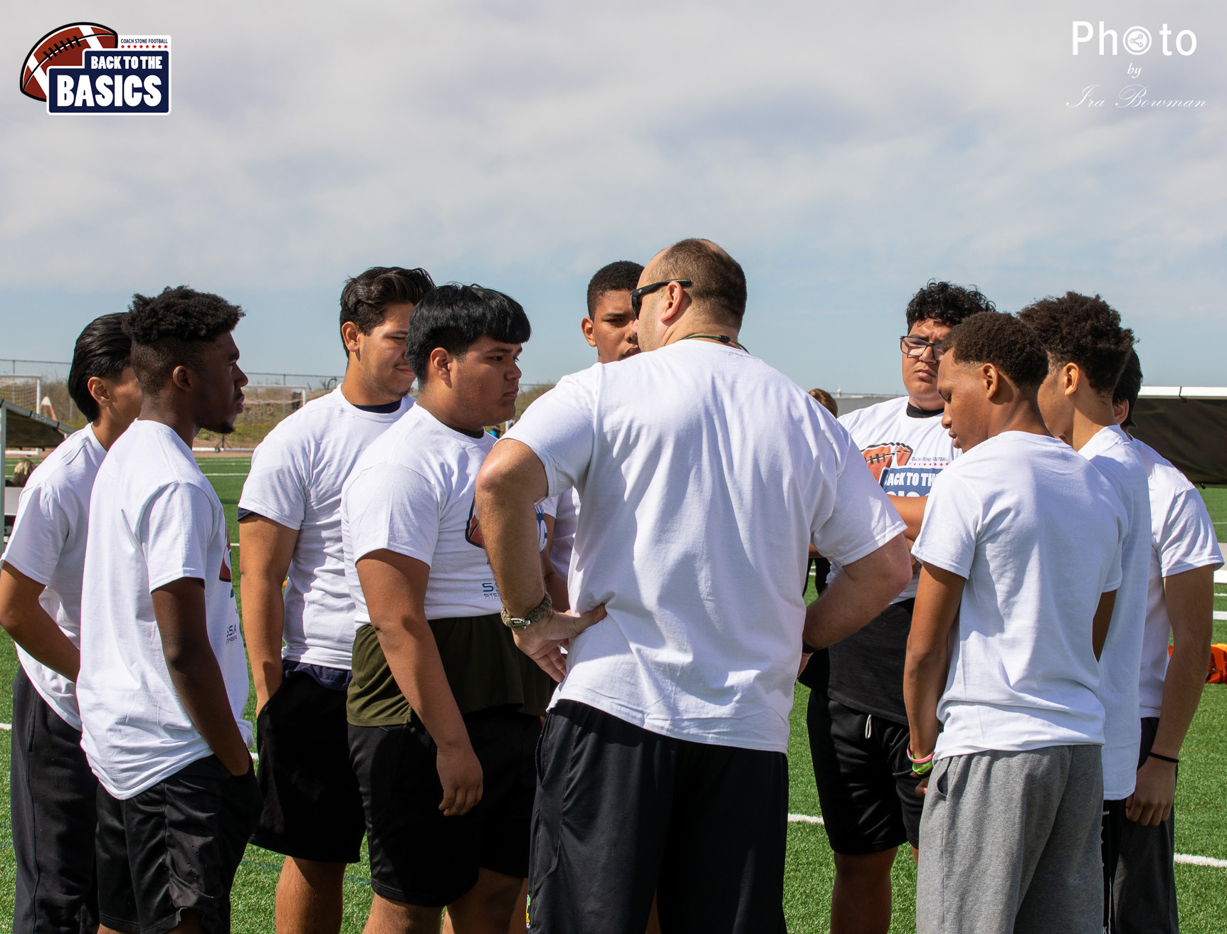 Steinberg Sports Academy hosted the Back to the Basics football camp, with Coach Stone and several former NFL Football Players including Super Bowl winning Chukky Okobi, Reggie Walker, David Carter and Charmeachealle Moore II. All photos presented here were taken and are owned by Ira Bowman, and all rights are reserved.