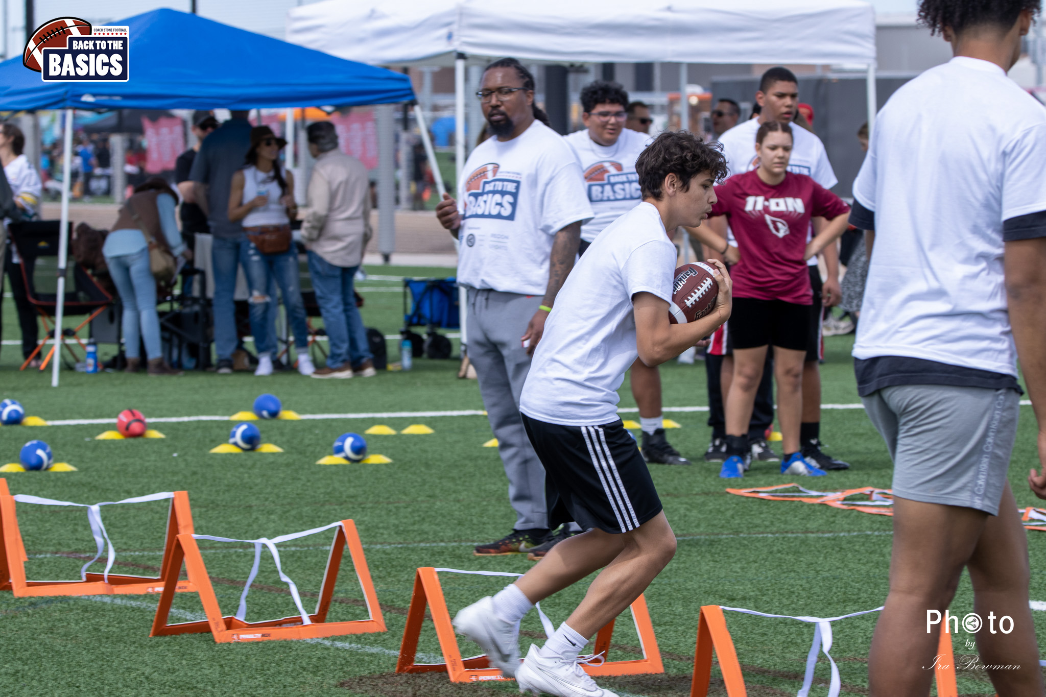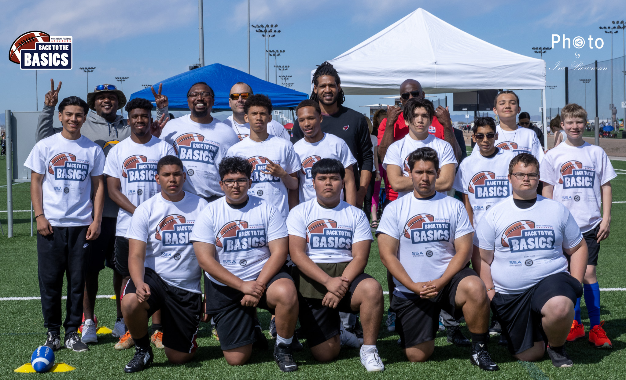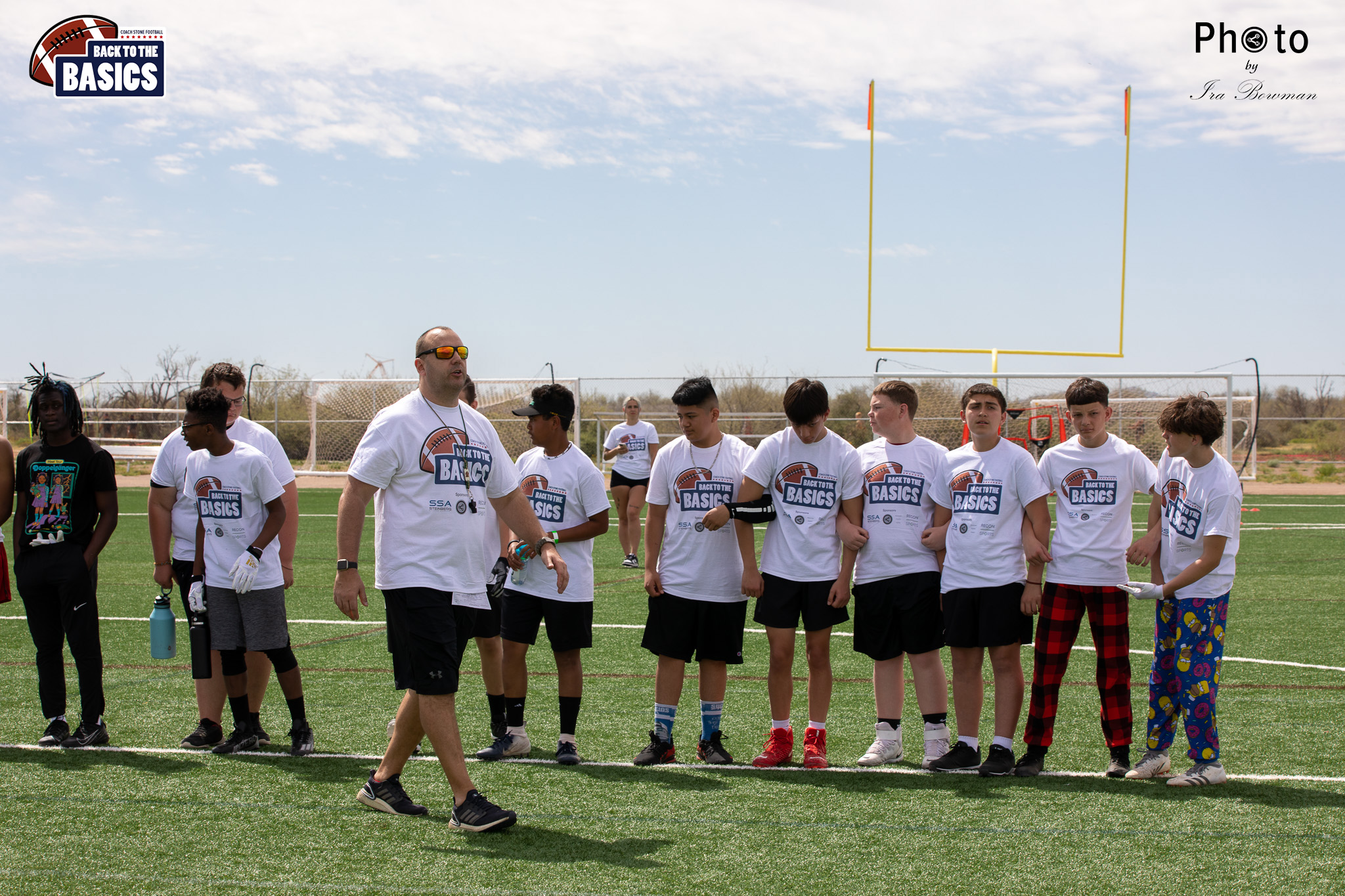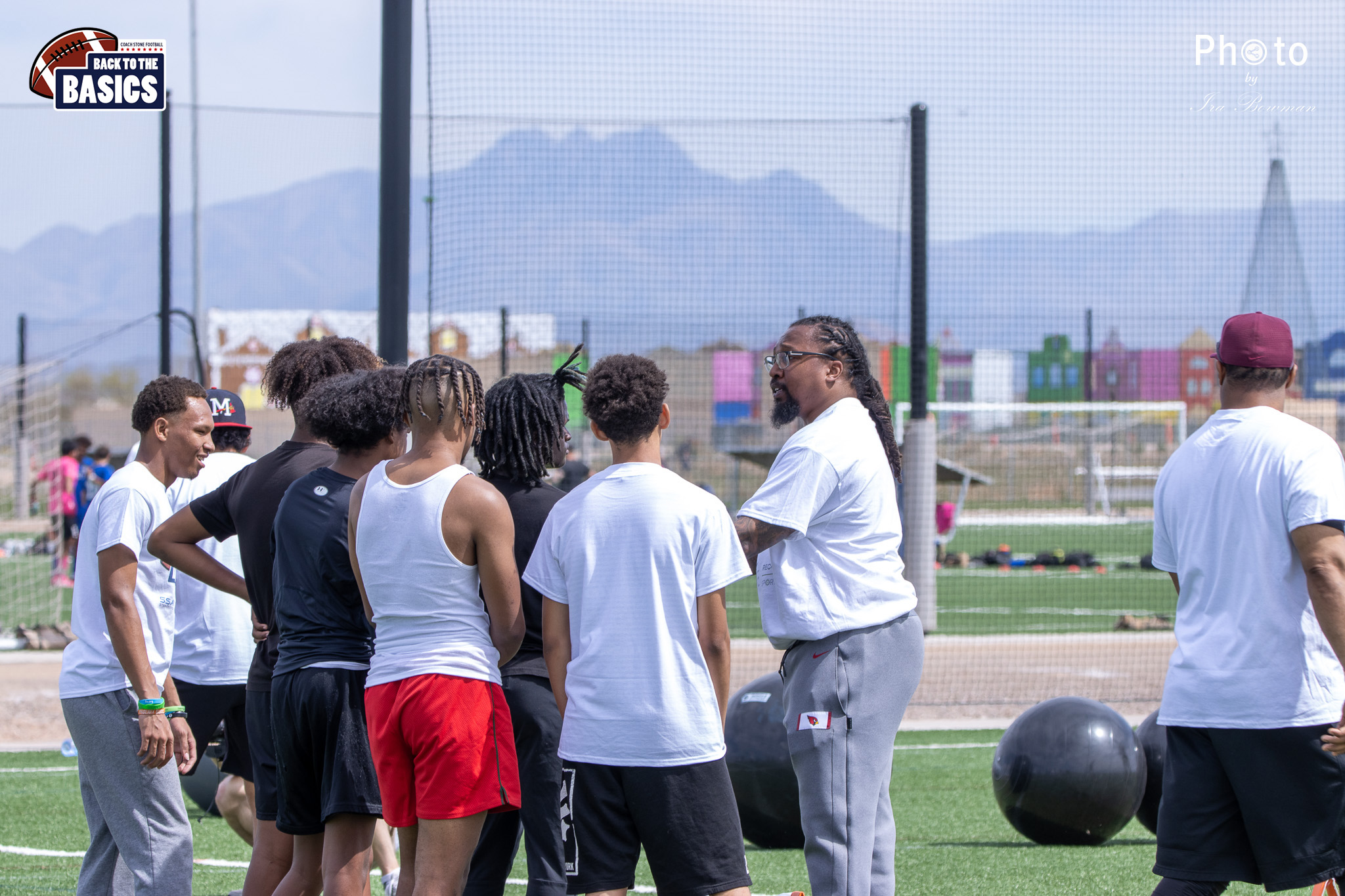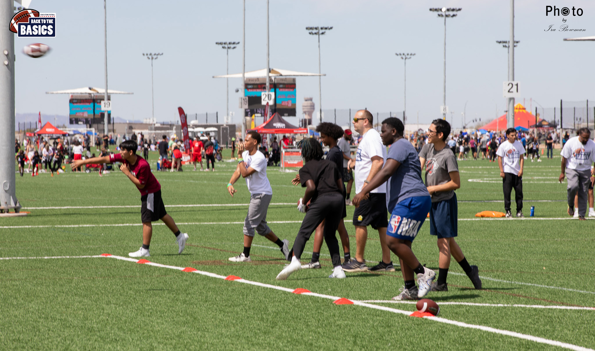 Steinberg Sports Academy hosted the Back to the Basics football camp, with Coach Stone and several former NFL Football Players including Super Bowl winning Chukky Okobi, Reggie Walker, David Carter and Charmeachealle Moore II. All photos presented here were taken and are owned by Ira Bowman, and all rights are reserved.