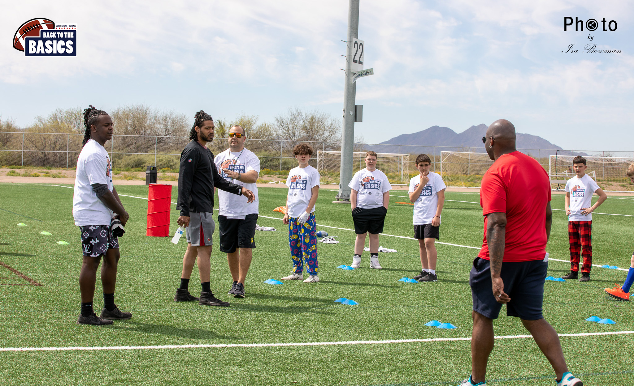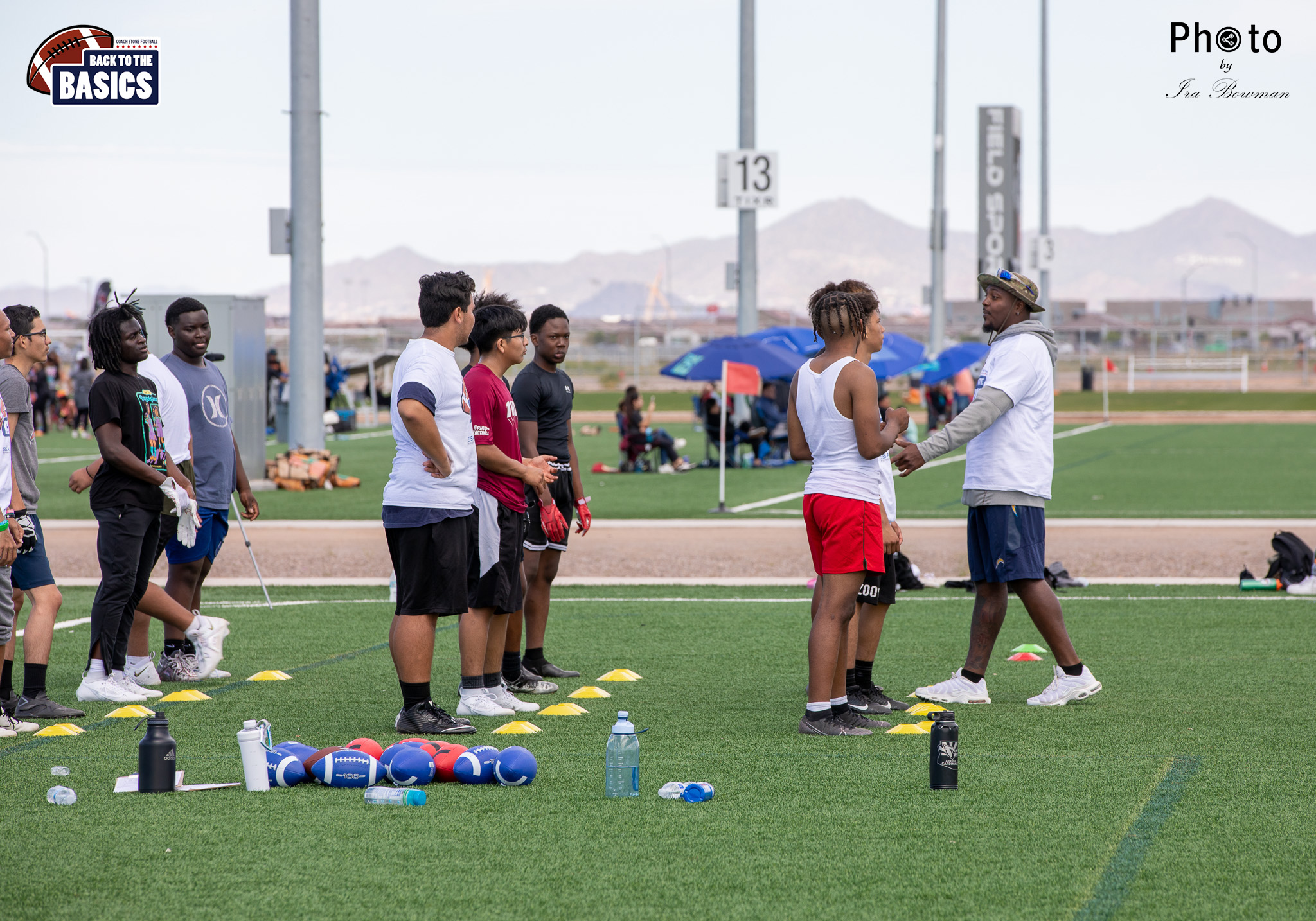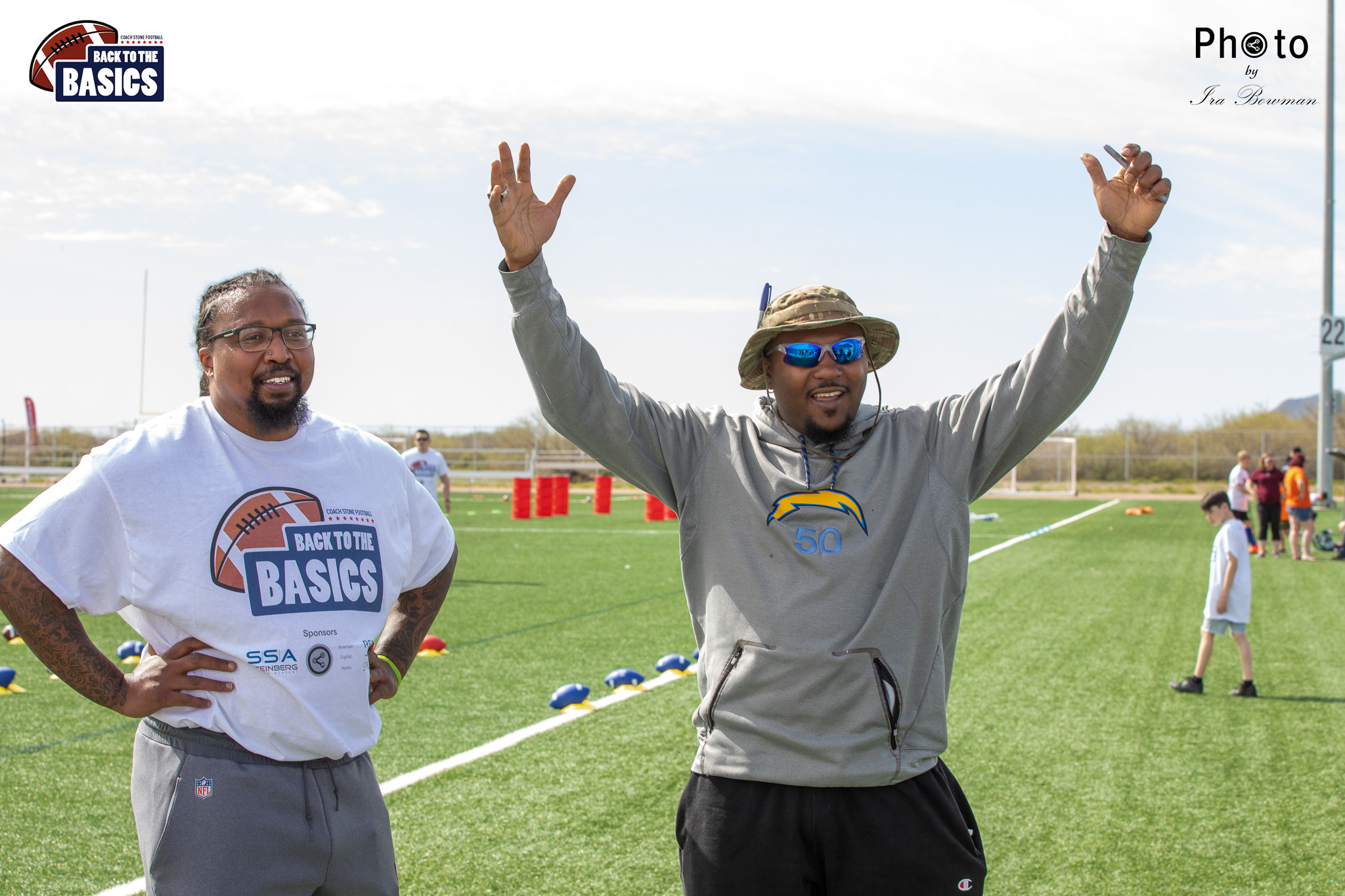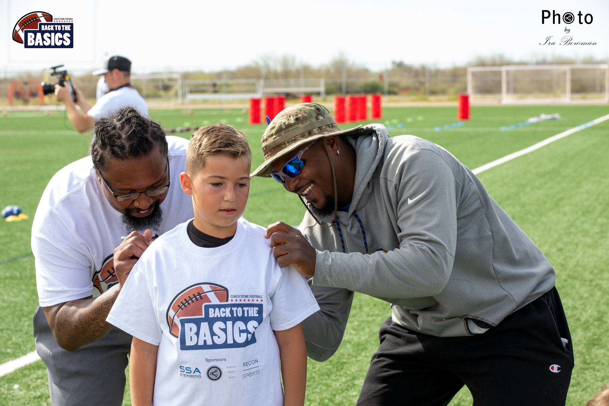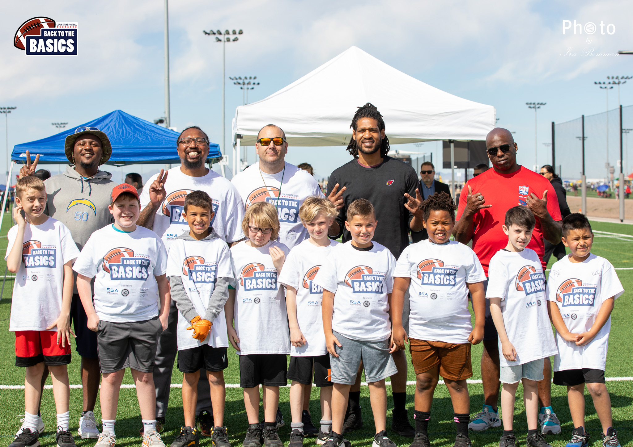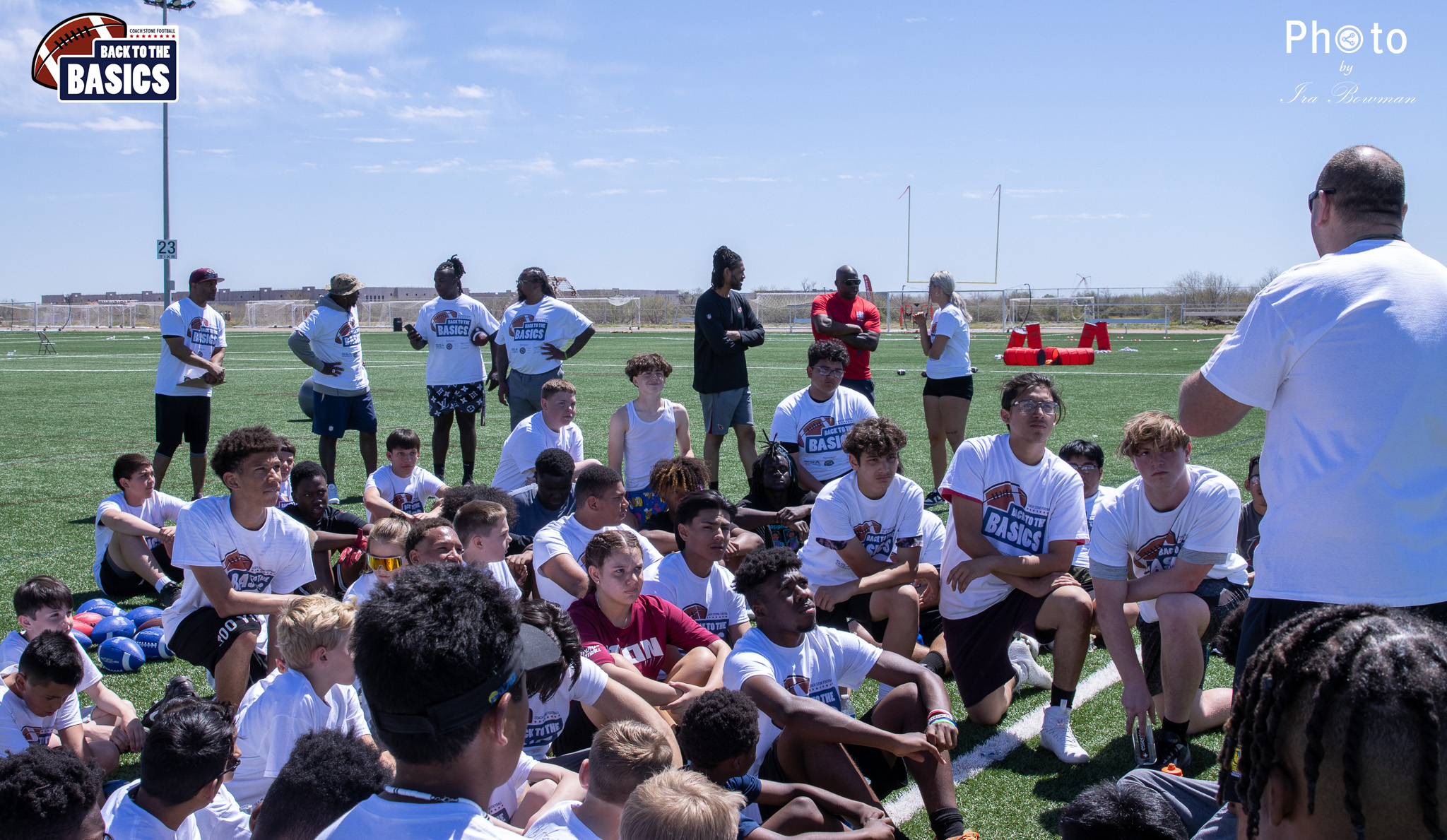 Steinberg Sports Academy hosted the Back to the Basics football camp, with Coach Stone and several former NFL Football Players including Super Bowl winning Chukky Okobi, Reggie Walker, David Carter and Charmeachealle Moore II. All photos presented here were taken and are owned by Ira Bowman, and all rights are reserved.