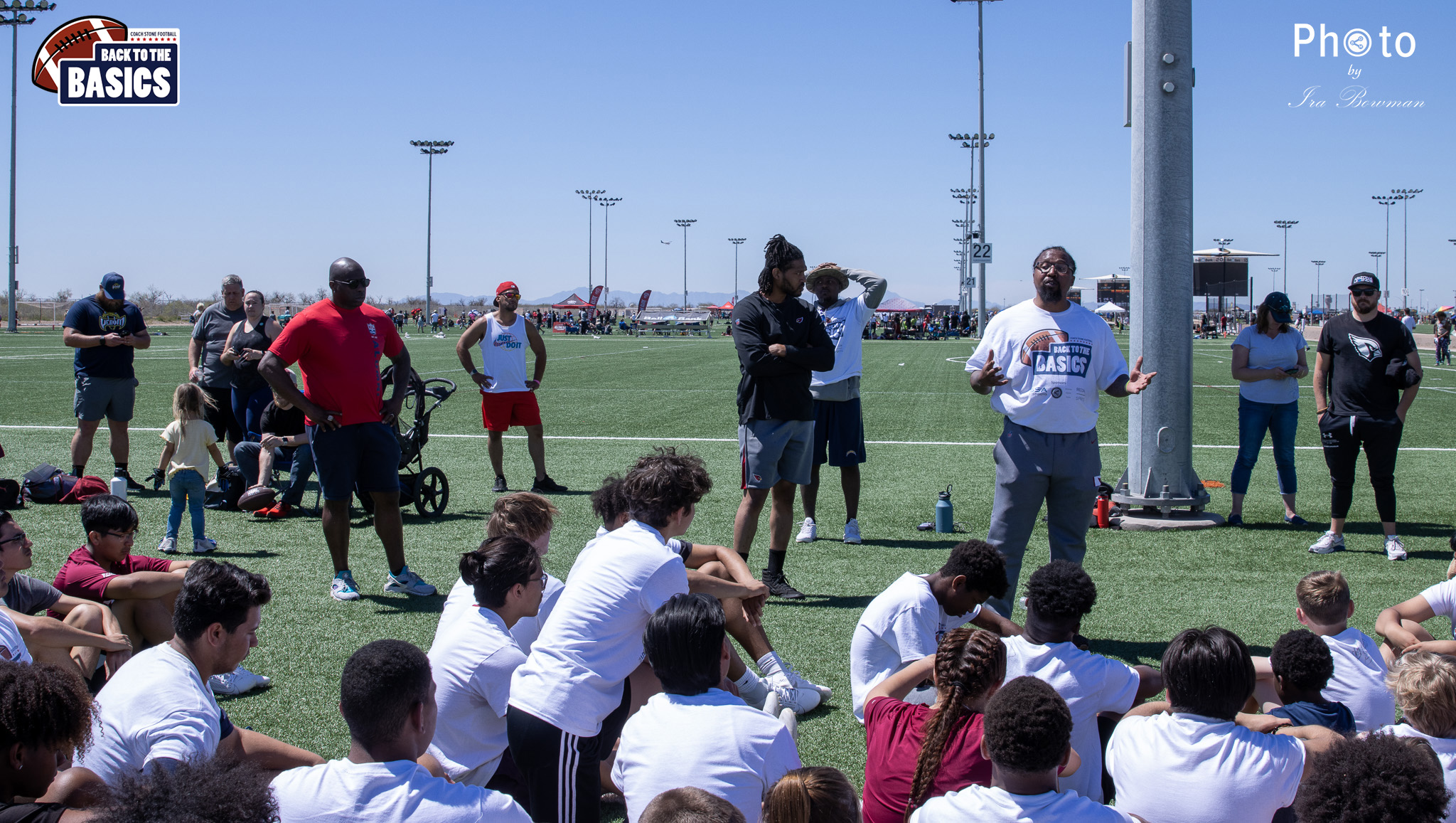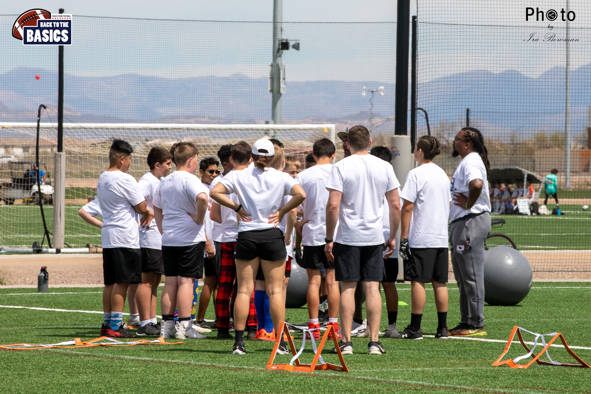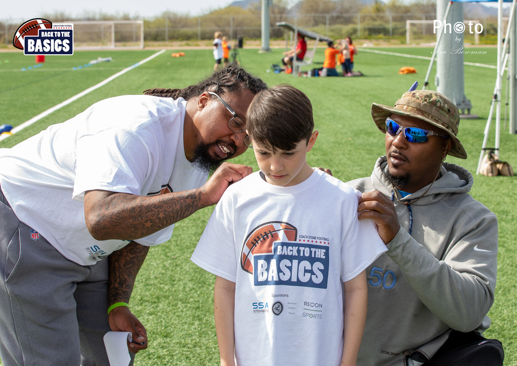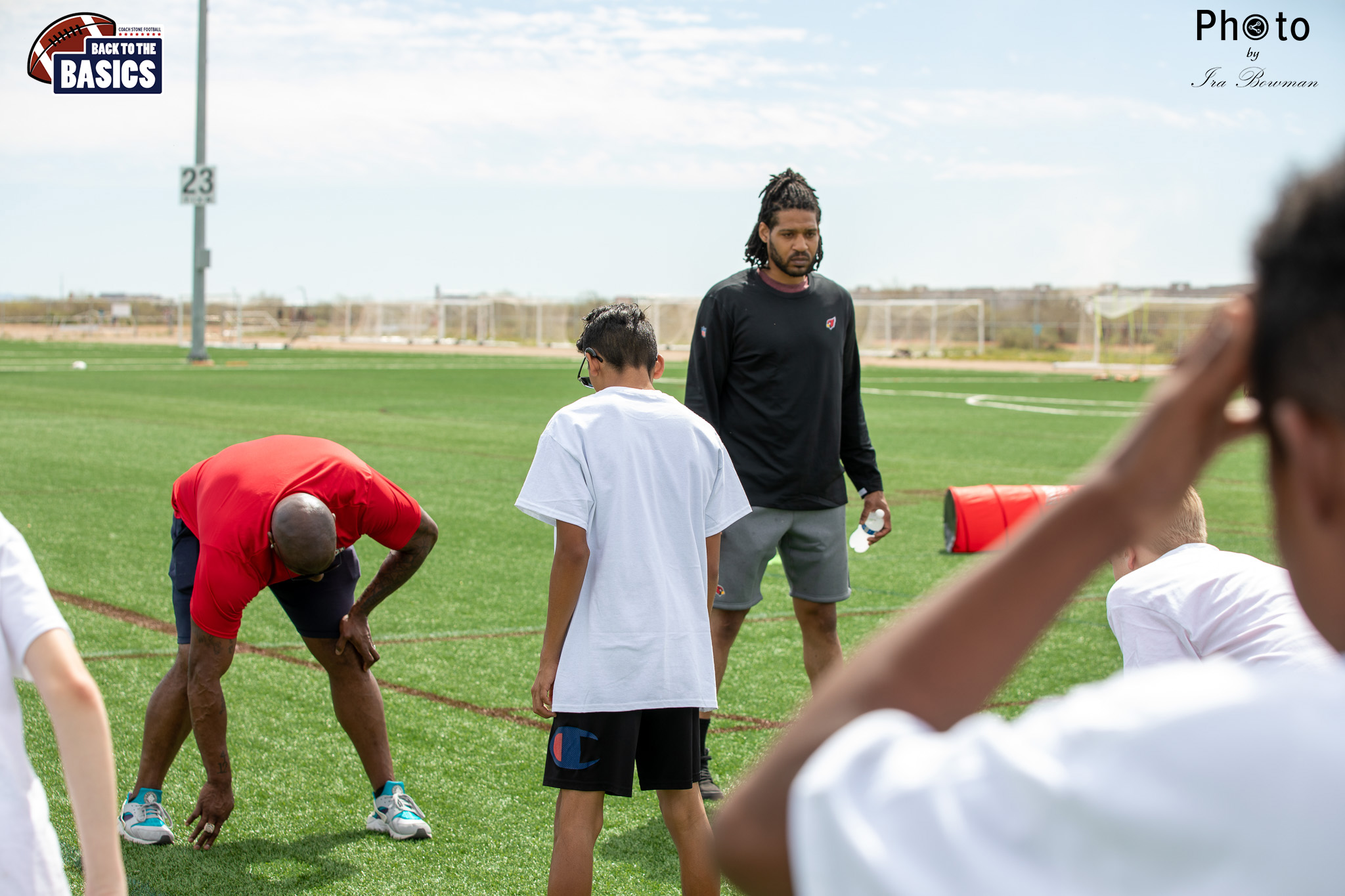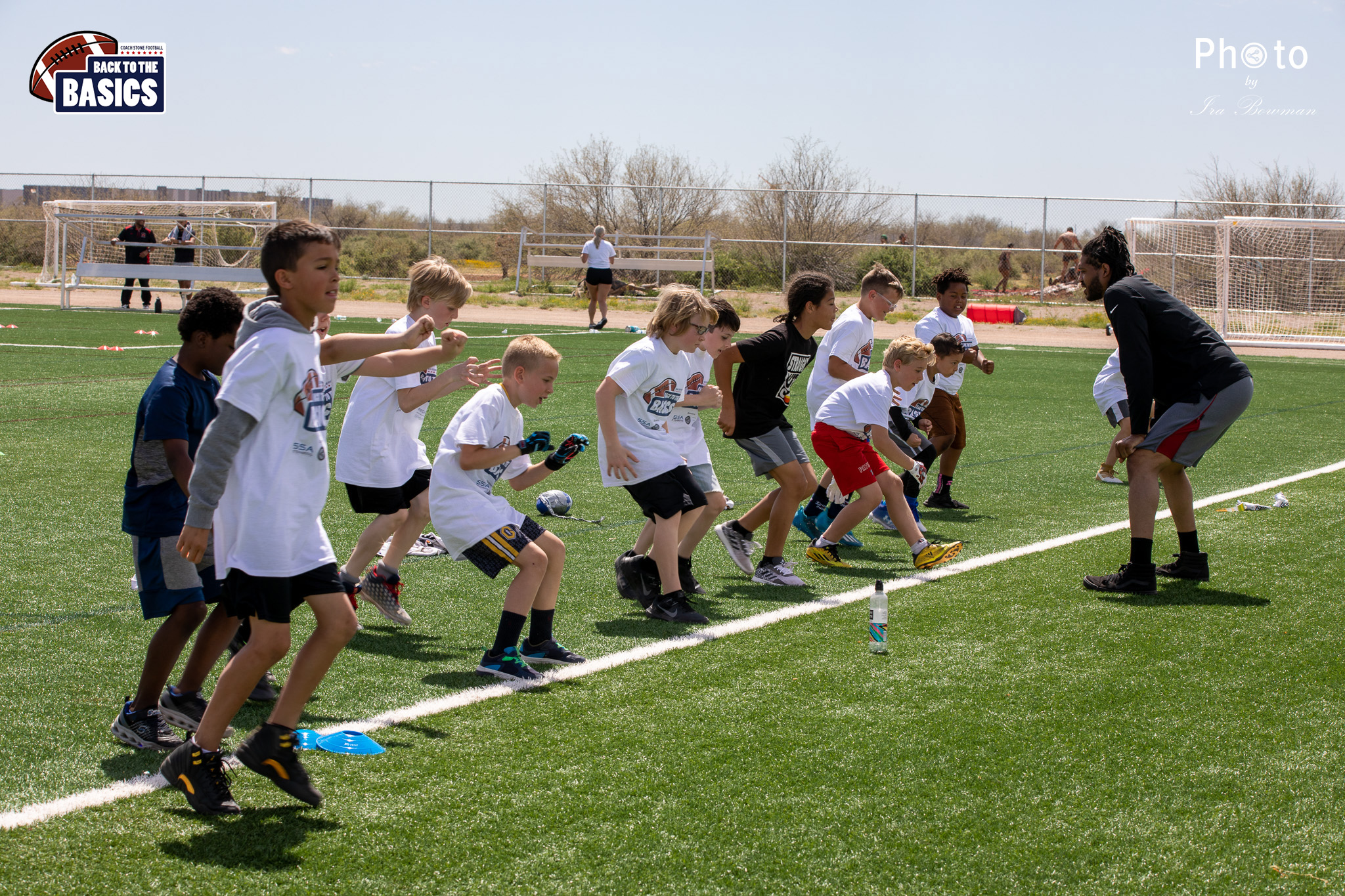 Steinberg Sports Academy hosted the Back to the Basics football camp, with Coach Stone and several former NFL Football Players including Super Bowl winning Chukky Okobi, Reggie Walker, David Carter and Charmeachealle Moore II. All photos presented here were taken and are owned by Ira Bowman, and all rights are reserved.