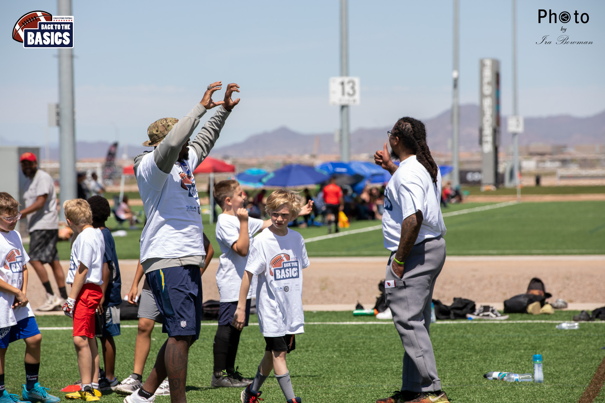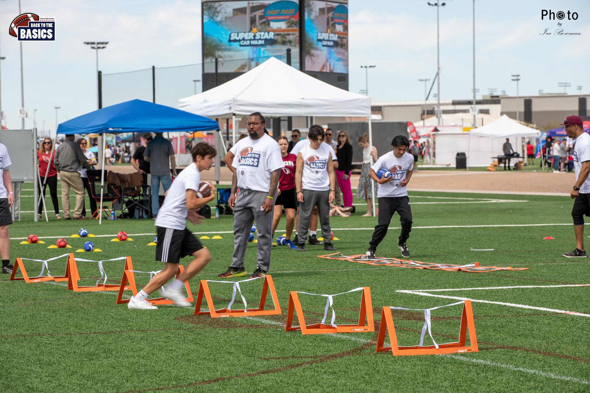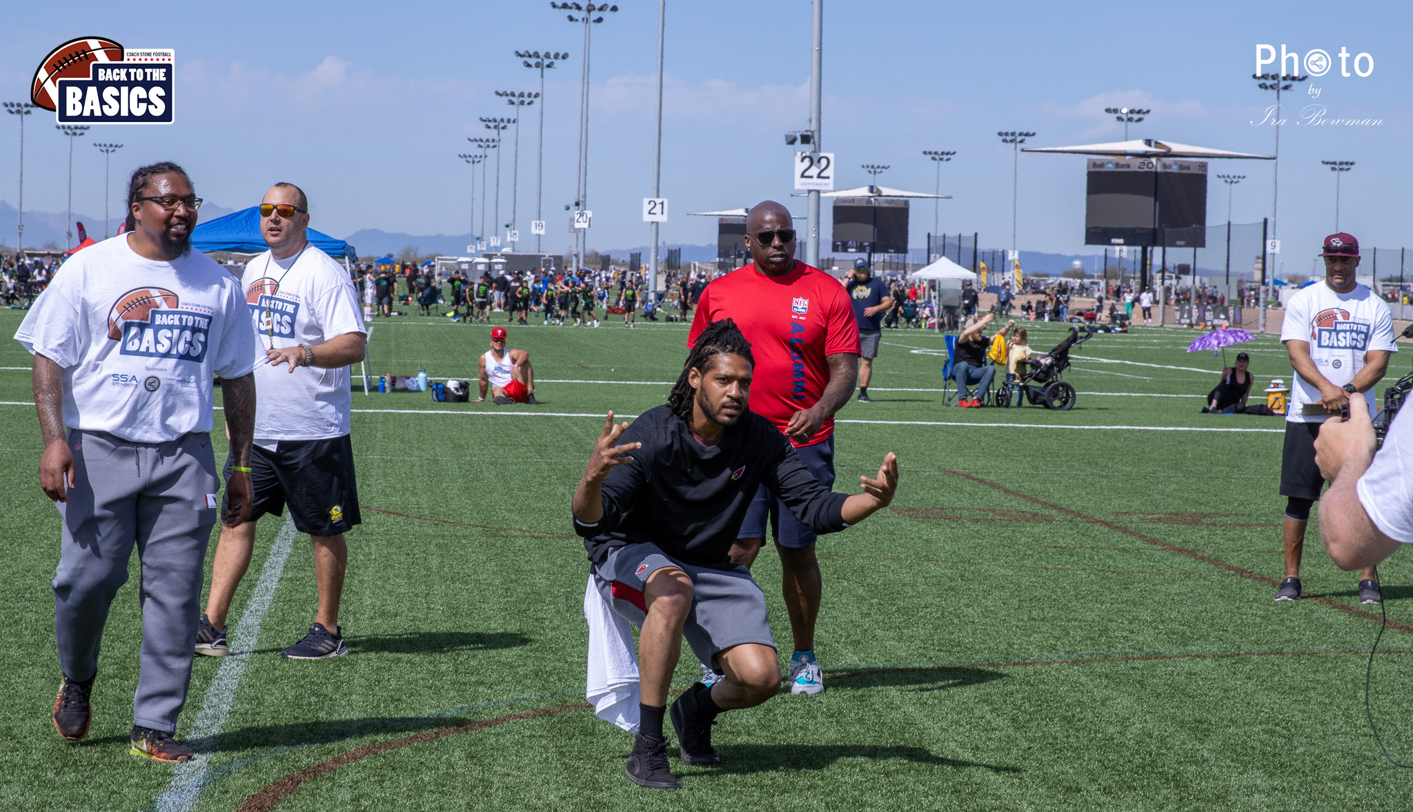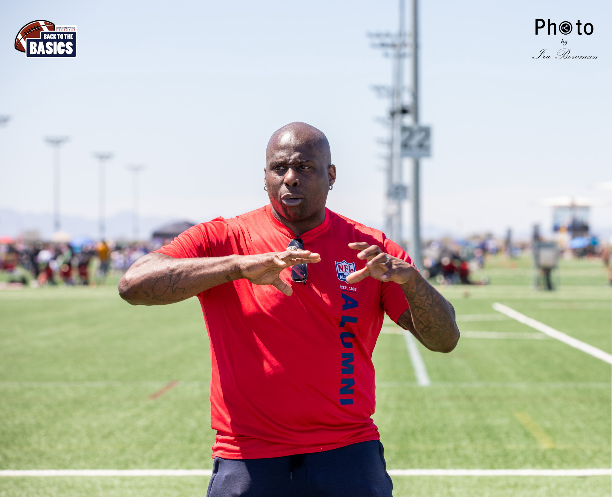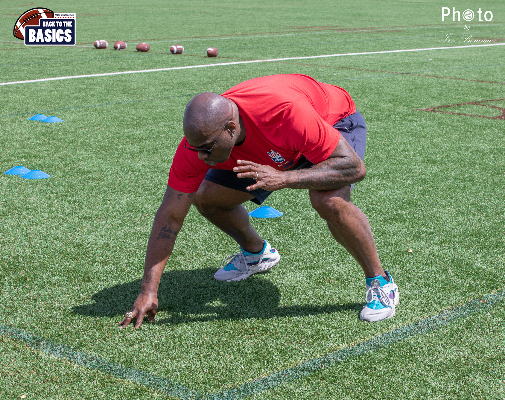 Steinberg Sports Academy hosted the Back to the Basics football camp, with Coach Stone and several former NFL Football Players including Super Bowl winning Chukky Okobi, Reggie Walker, David Carter and Charmeachealle Moore II. All photos presented here were taken and are owned by Ira Bowman, and all rights are reserved.