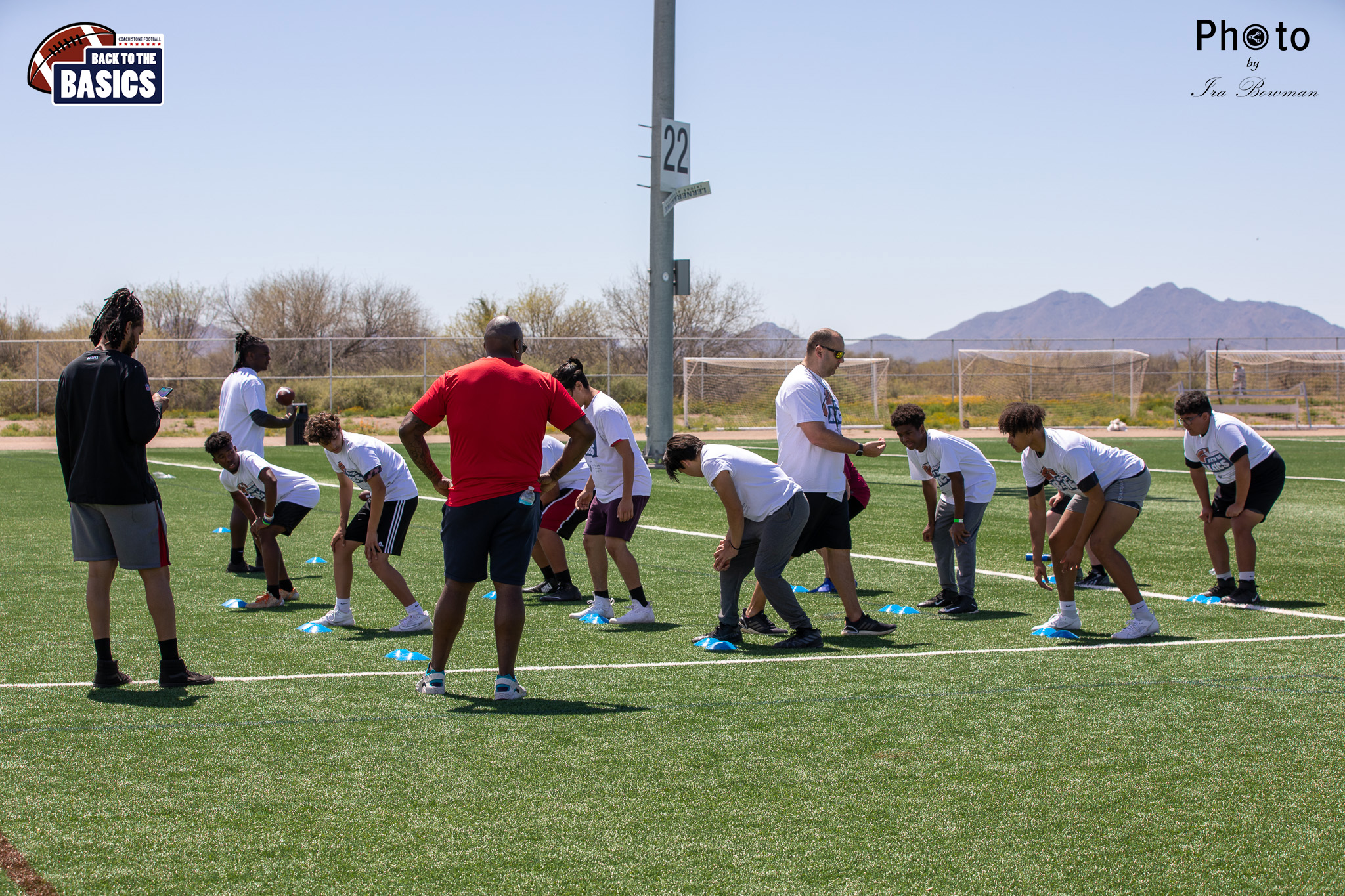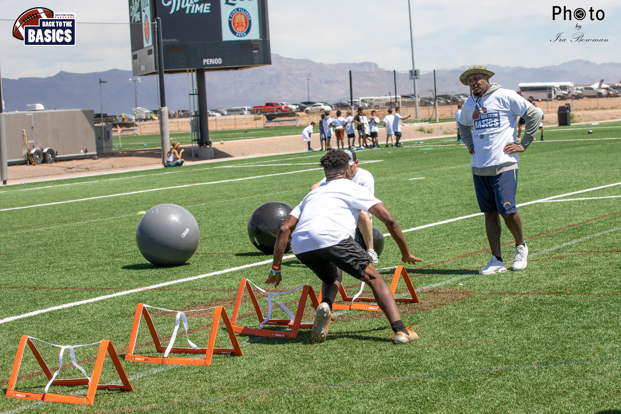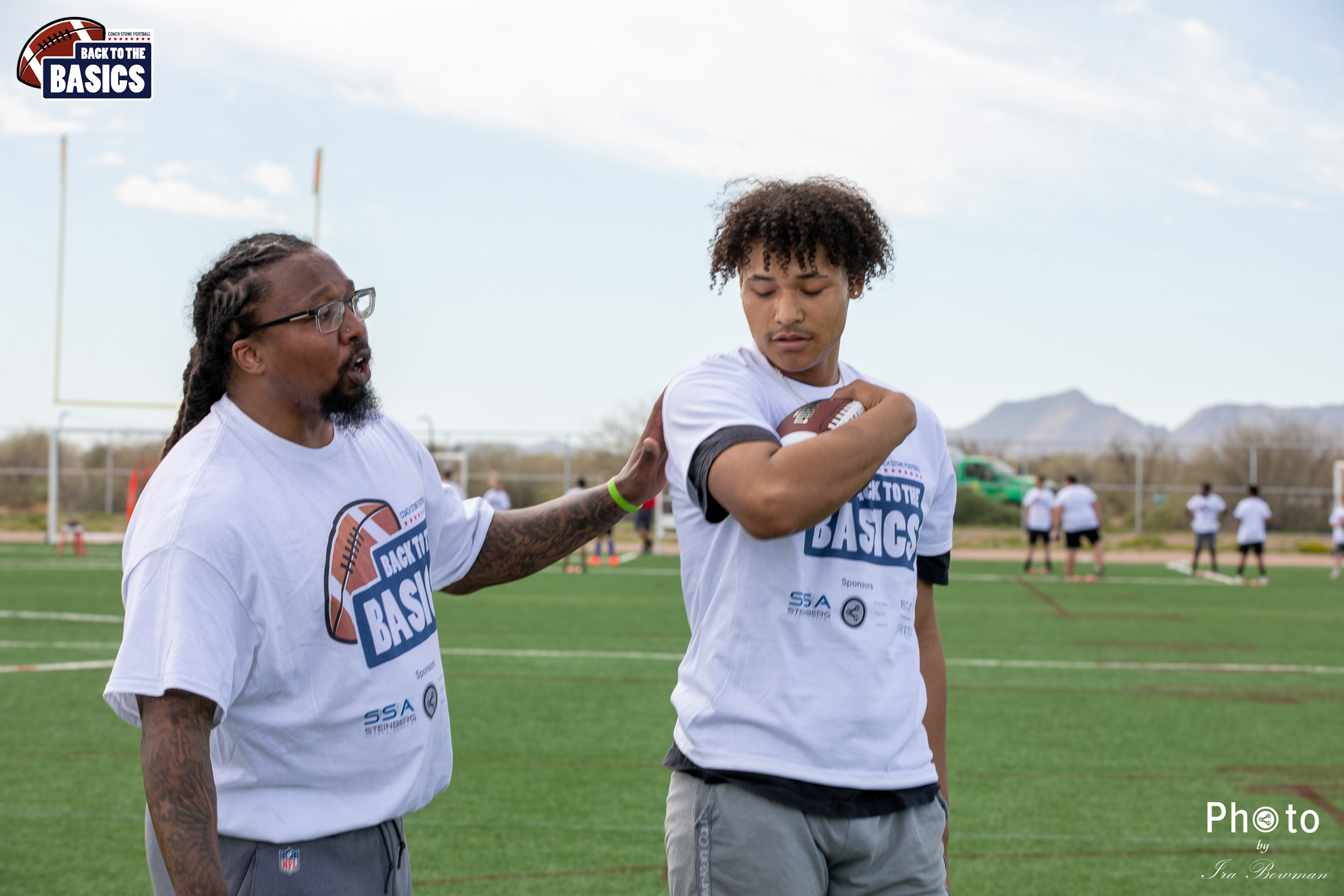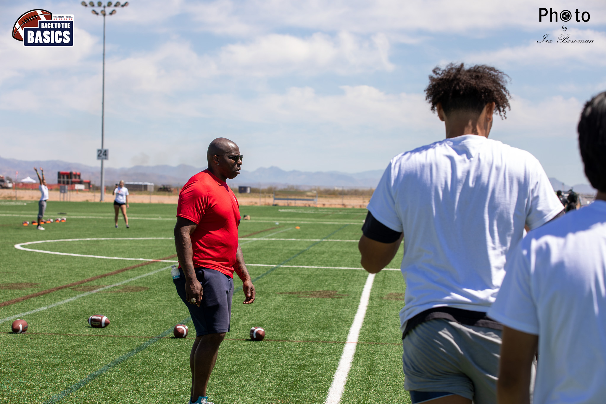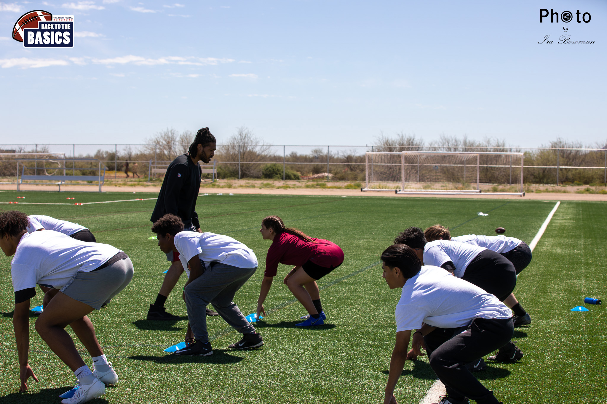 Steinberg Sports Academy hosted the Back to the Basics football camp, with Coach Stone and several former NFL Football Players including Super Bowl winning Chukky Okobi, Reggie Walker, David Carter and Charmeachealle Moore II. All photos presented here were taken and are owned by Ira Bowman, and all rights are reserved.