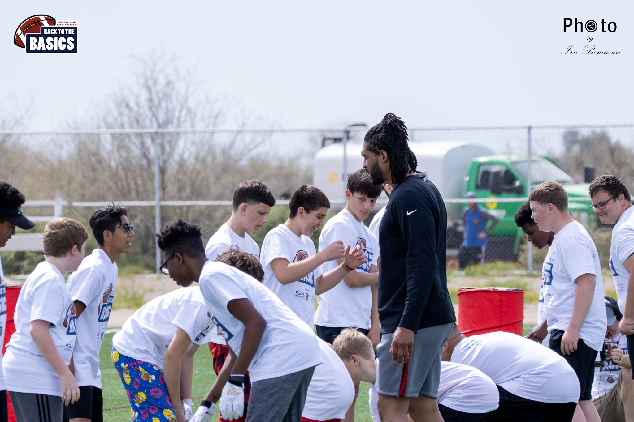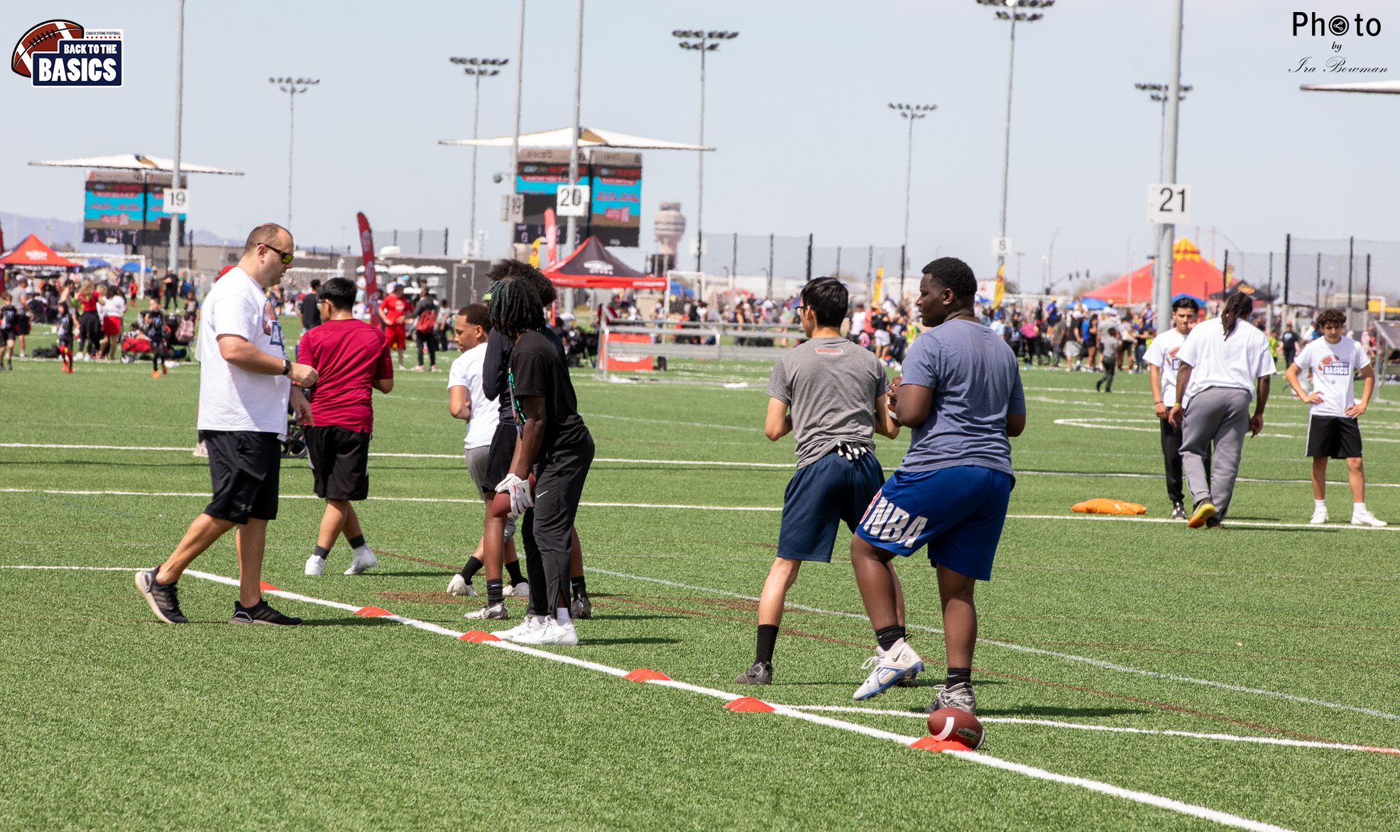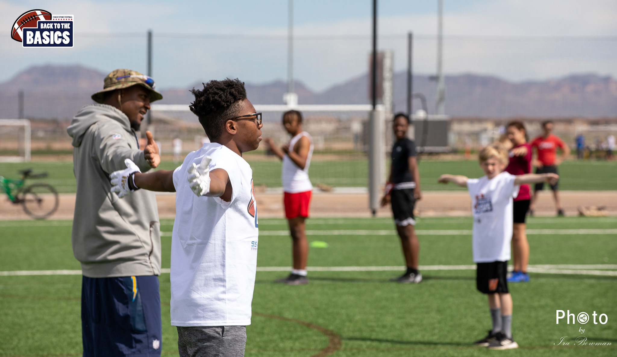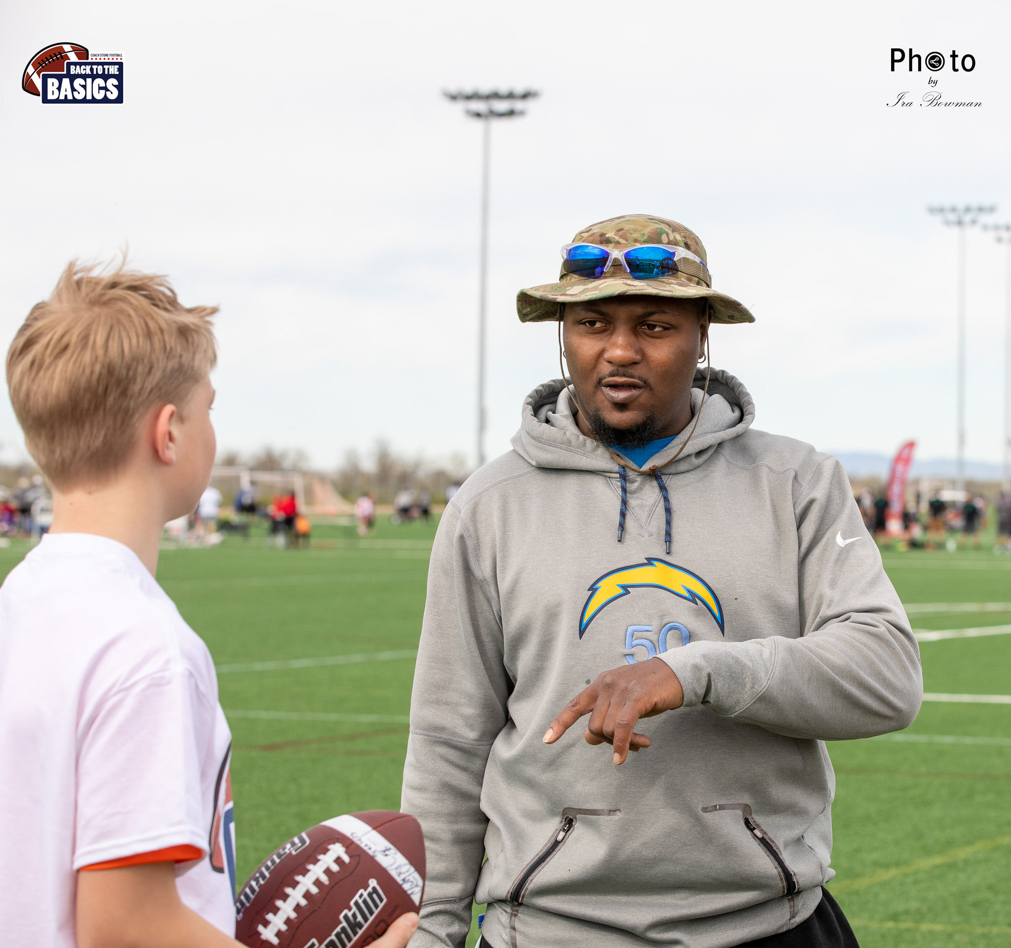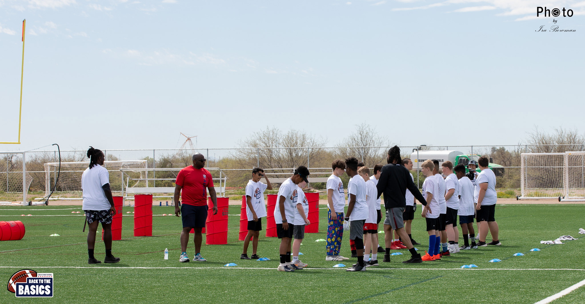 Steinberg Sports Academy hosted the Back to the Basics football camp, with Coach Stone and several former NFL Football Players including Super Bowl winning Chukky Okobi, Reggie Walker, David Carter and Charmeachealle Moore II. All photos presented here were taken and are owned by Ira Bowman, and all rights are reserved.