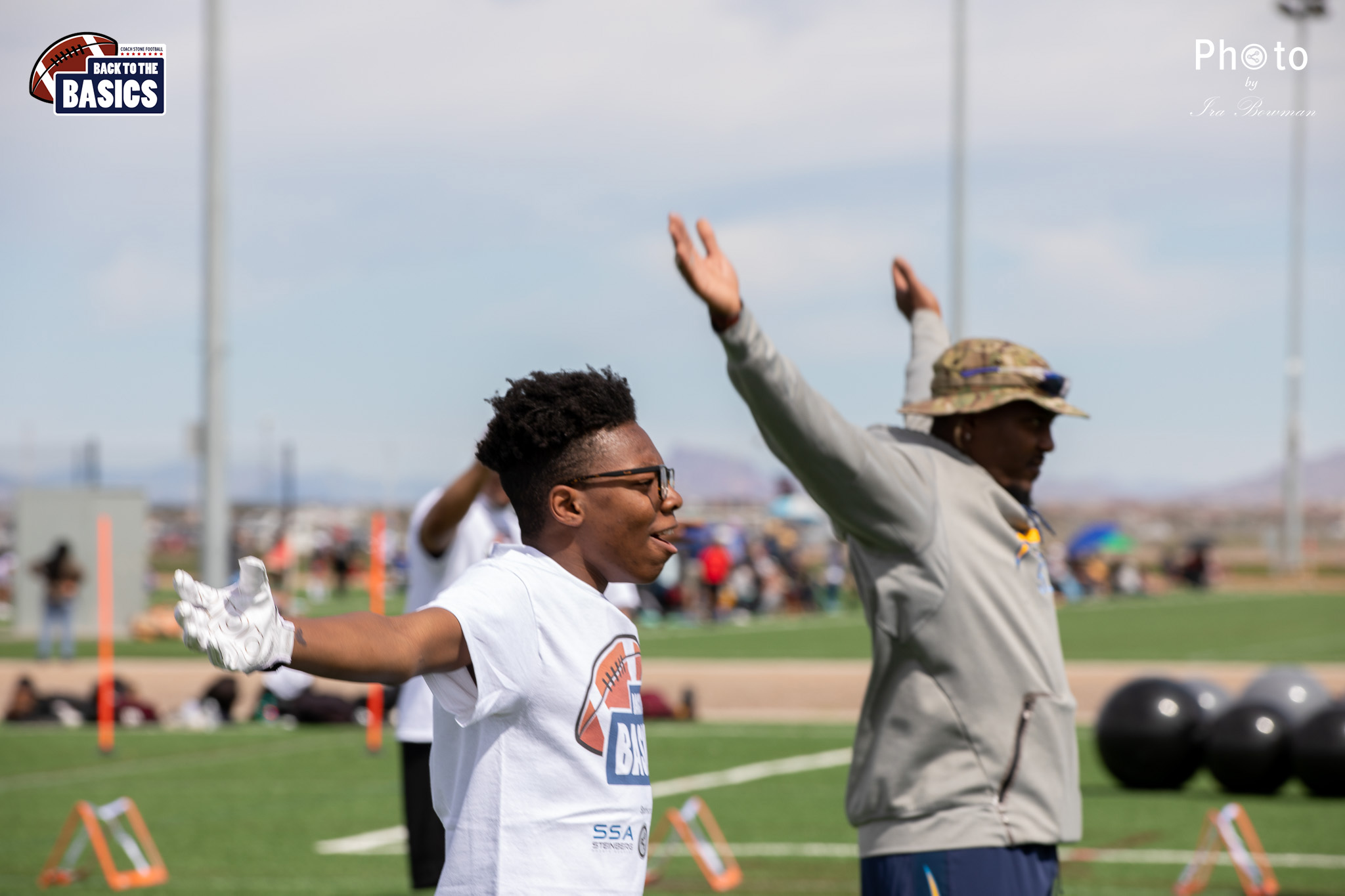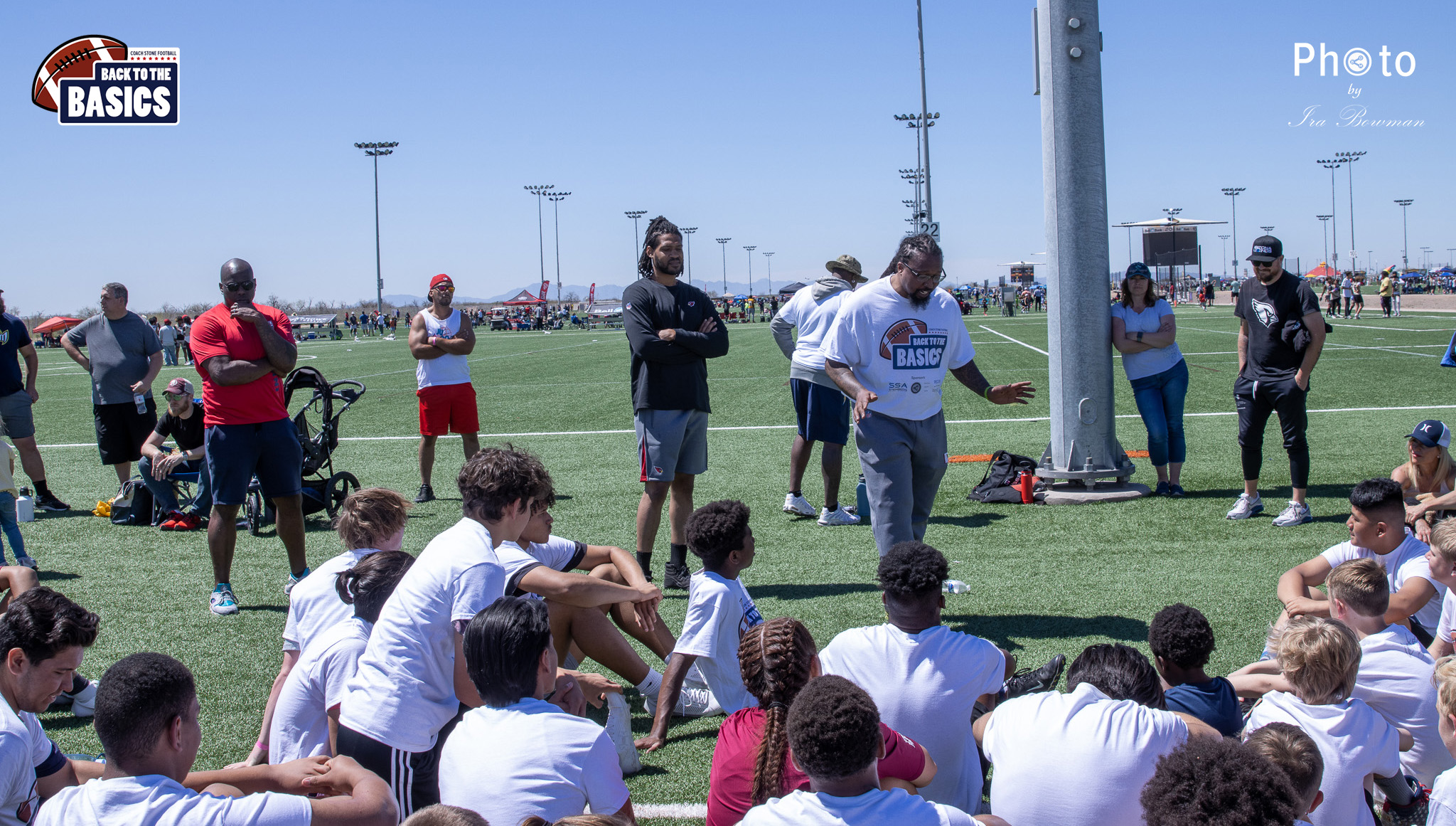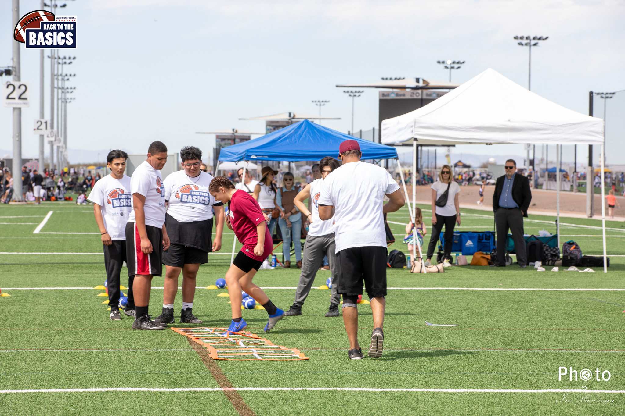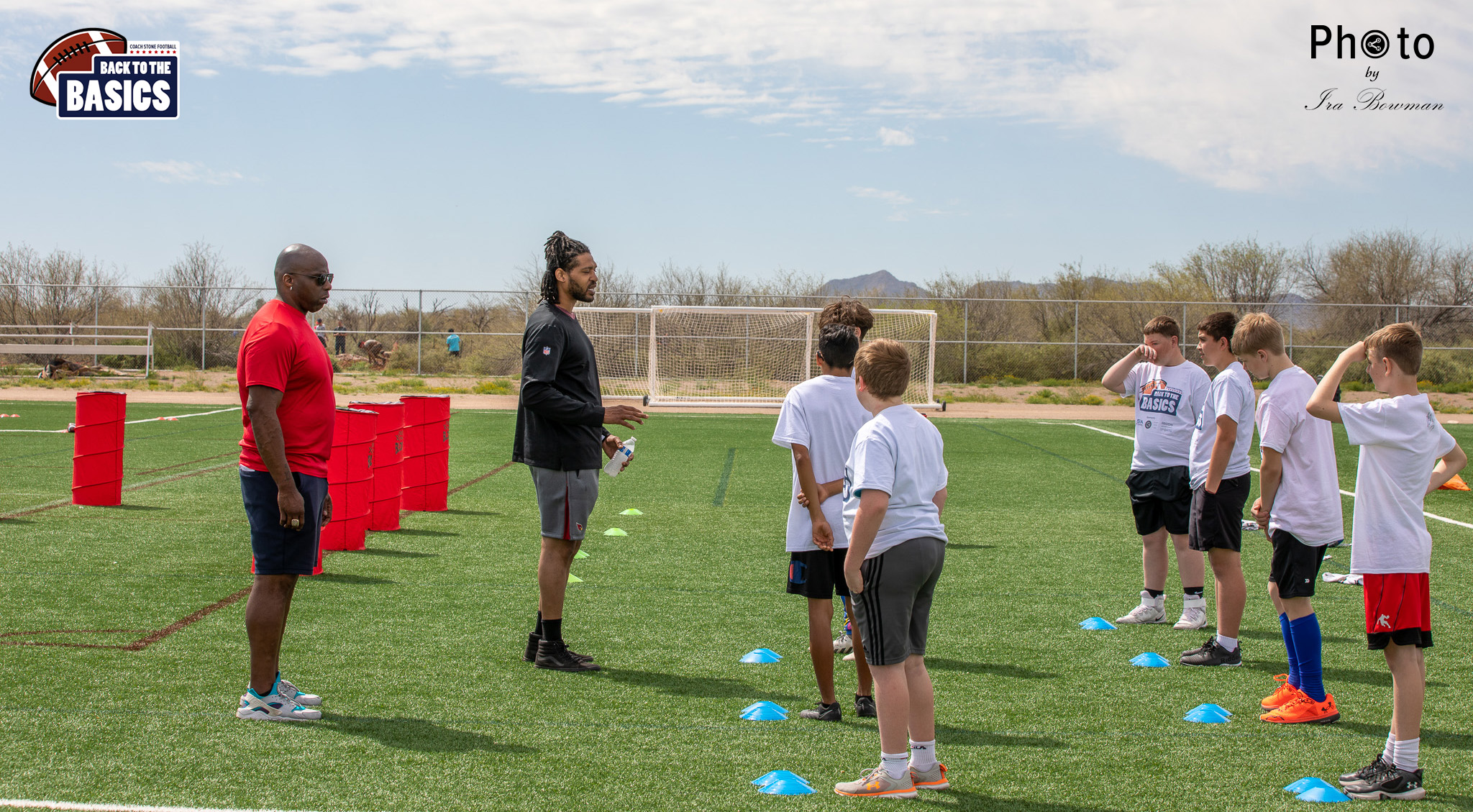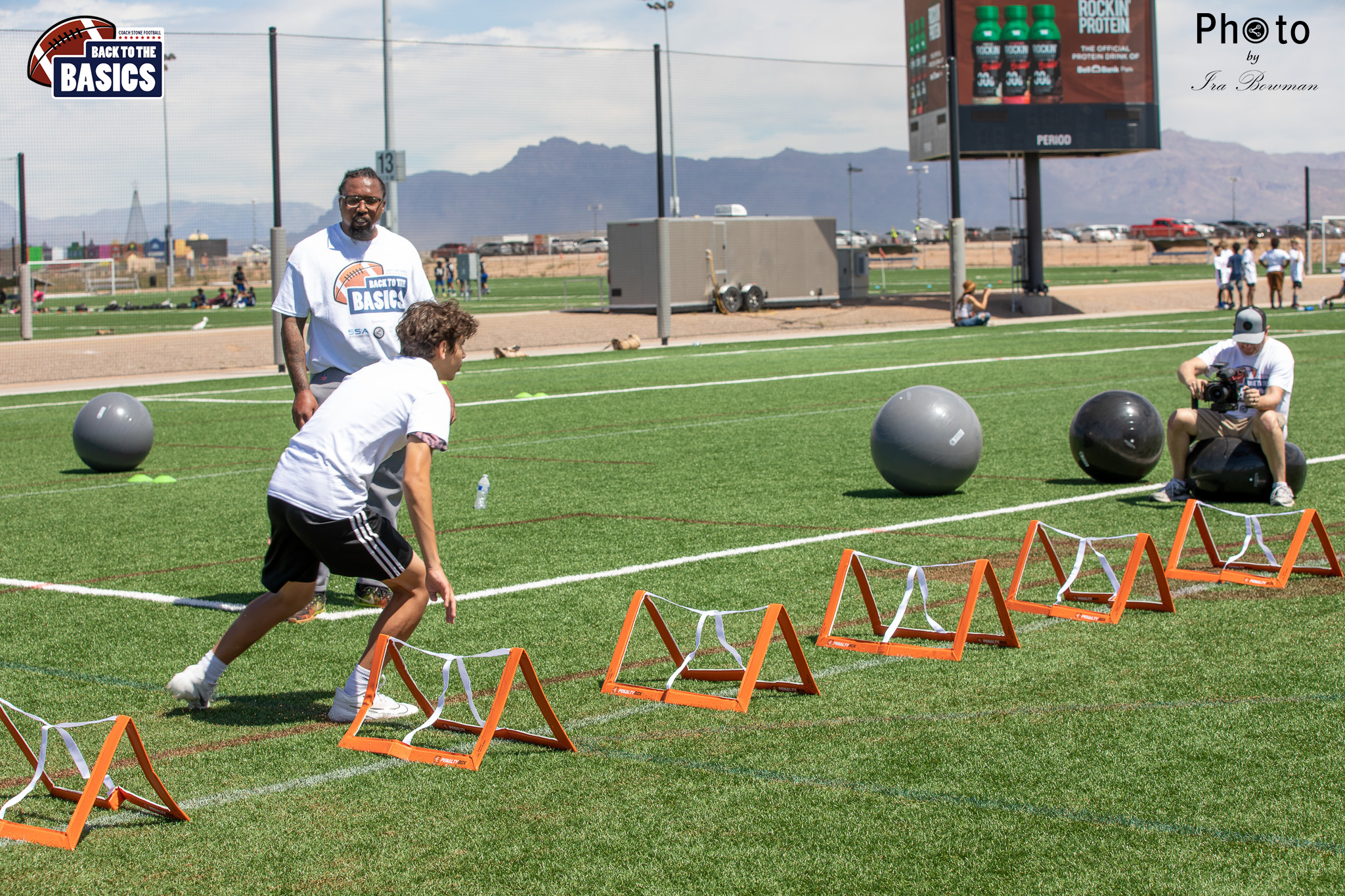 Steinberg Sports Academy hosted the Back to the Basics football camp, with Coach Stone and several former NFL Football Players including Super Bowl winning Chukky Okobi, Reggie Walker, David Carter and Charmeachealle Moore II. All photos presented here were taken and are owned by Ira Bowman, and all rights are reserved.