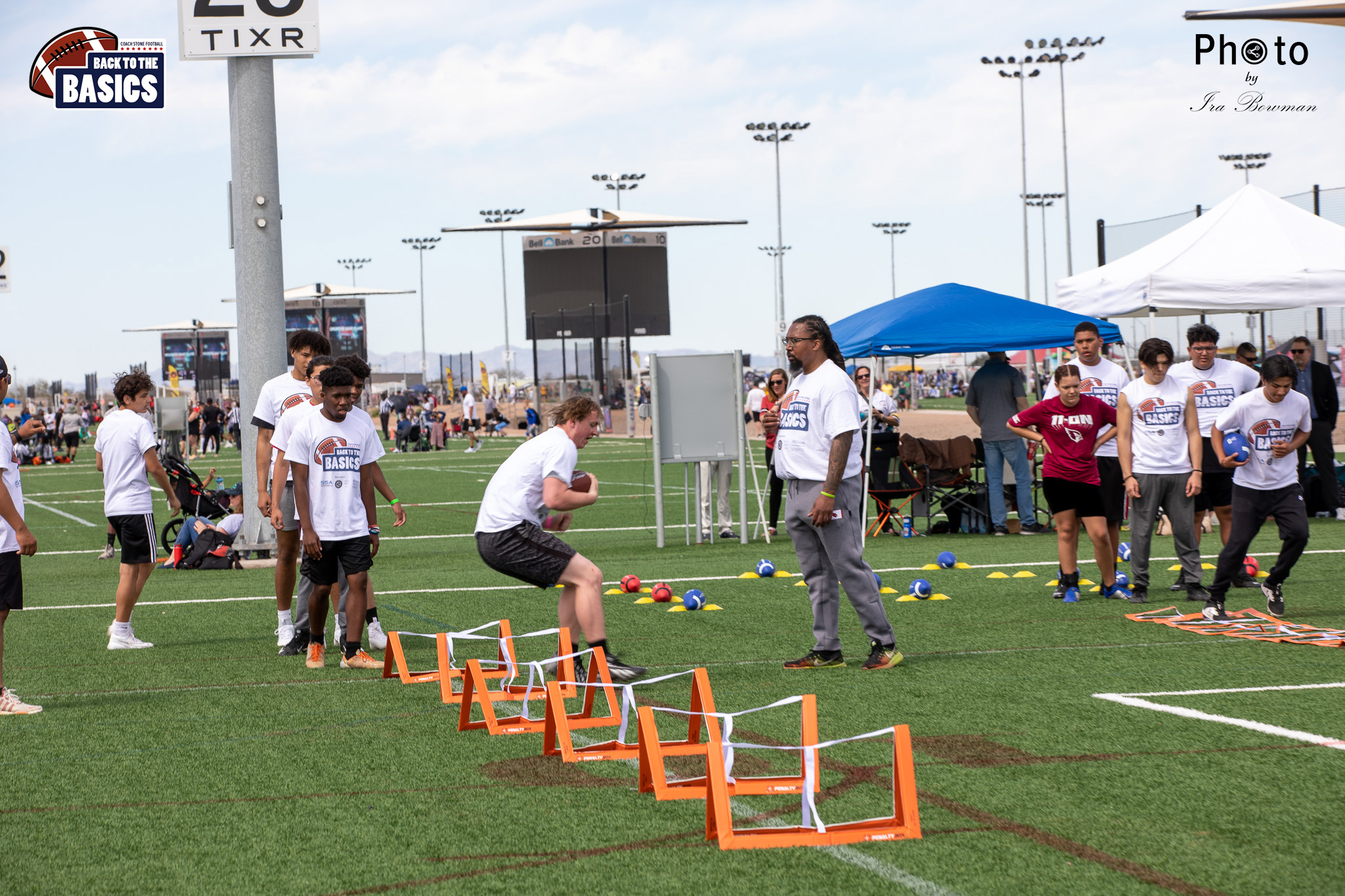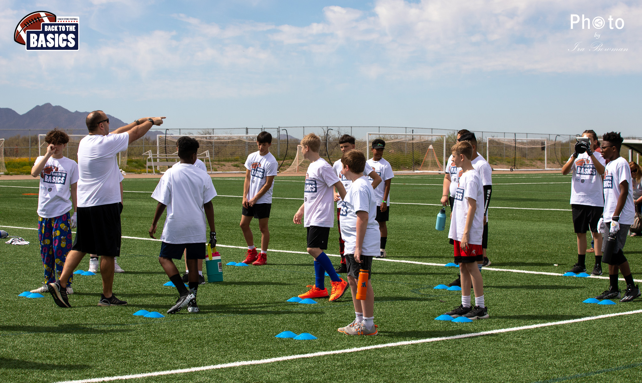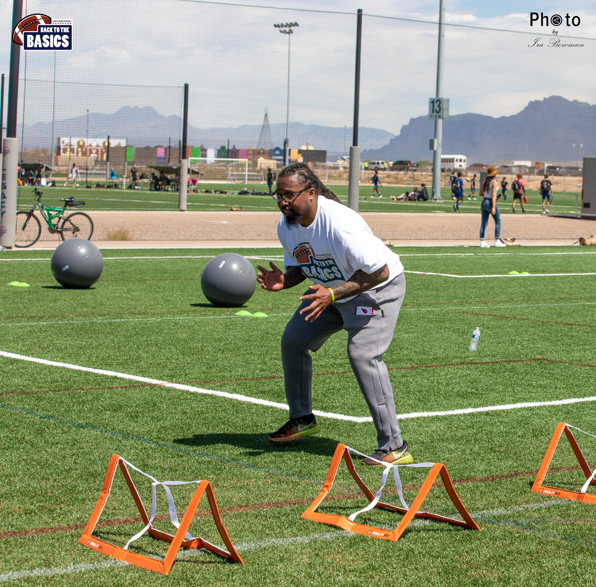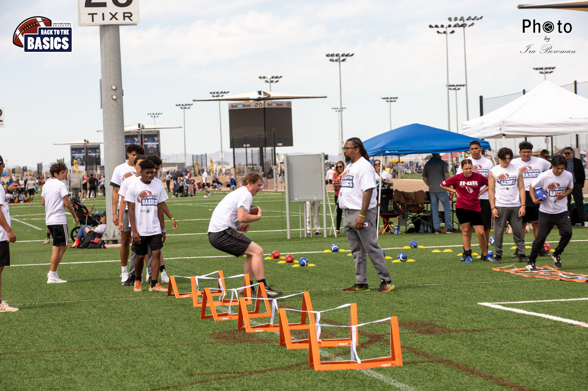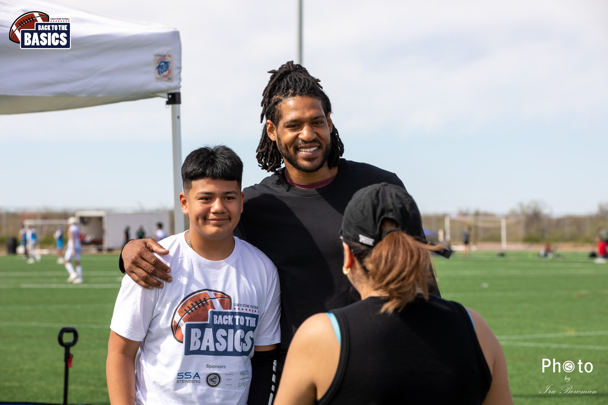 Steinberg Sports Academy hosted the Back to the Basics football camp, with Coach Stone and several former NFL Football Players including Super Bowl winning Chukky Okobi, Reggie Walker, David Carter and Charmeachealle Moore II. All photos presented here were taken and are owned by Ira Bowman, and all rights are reserved.