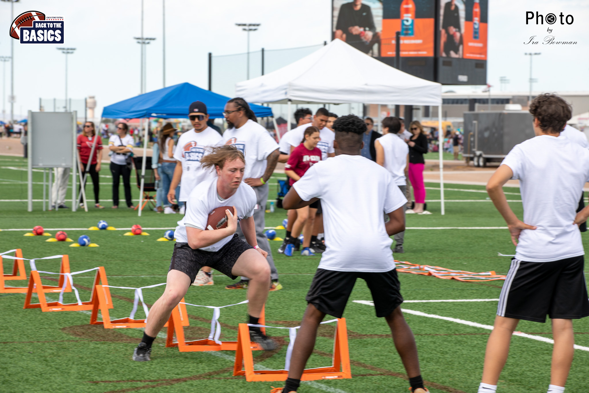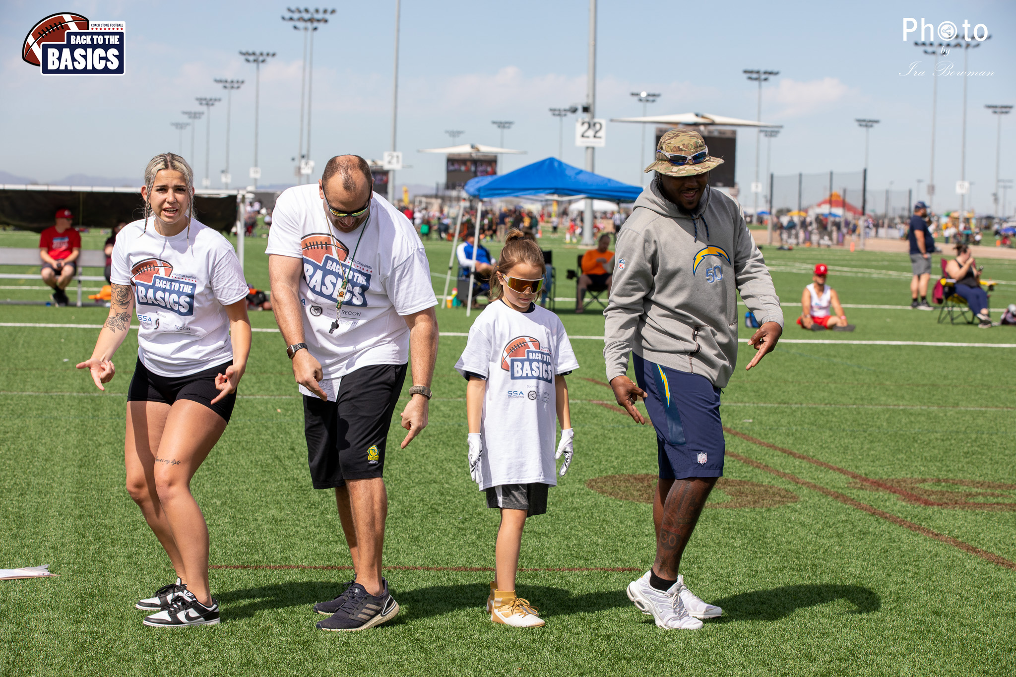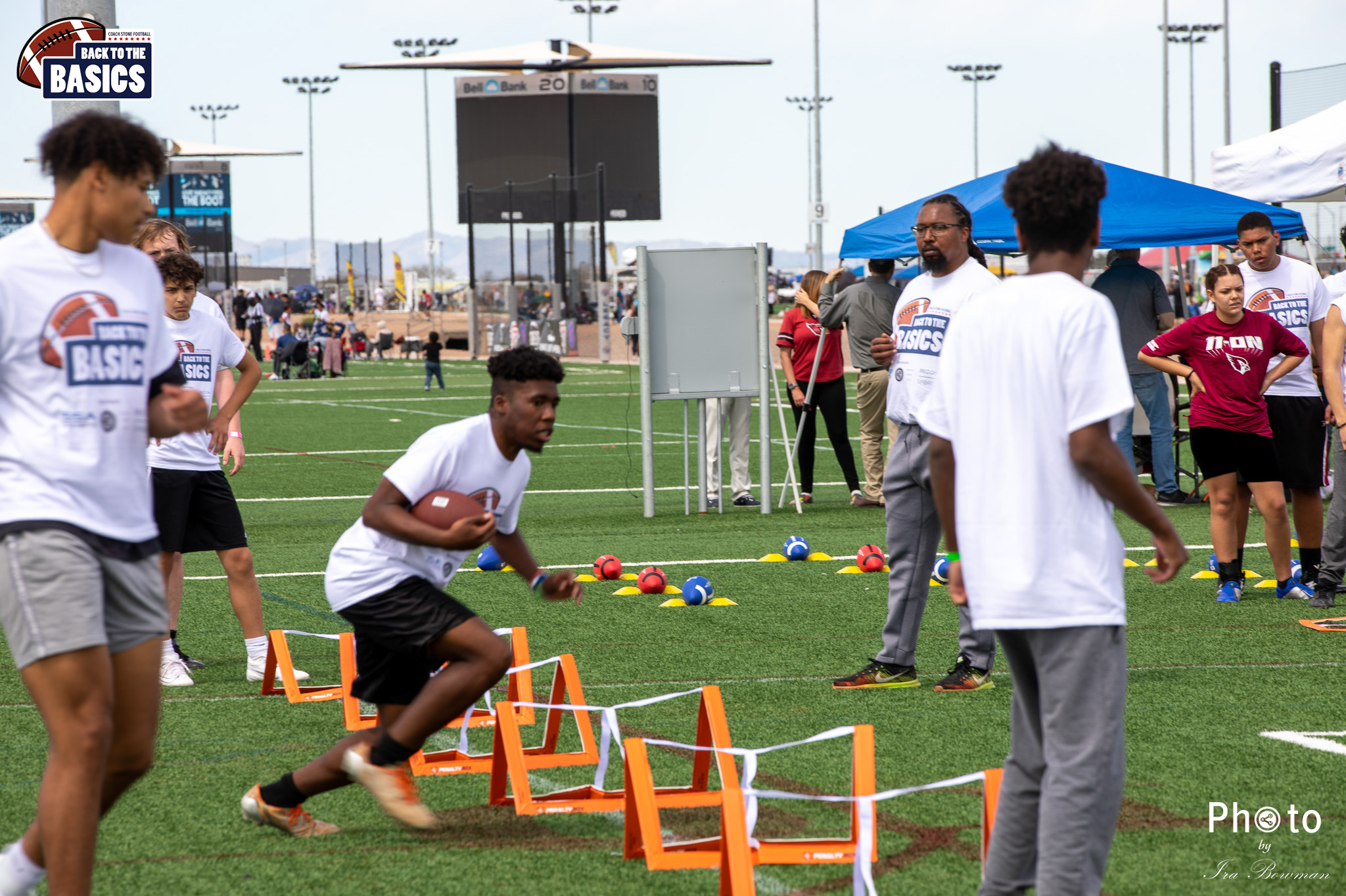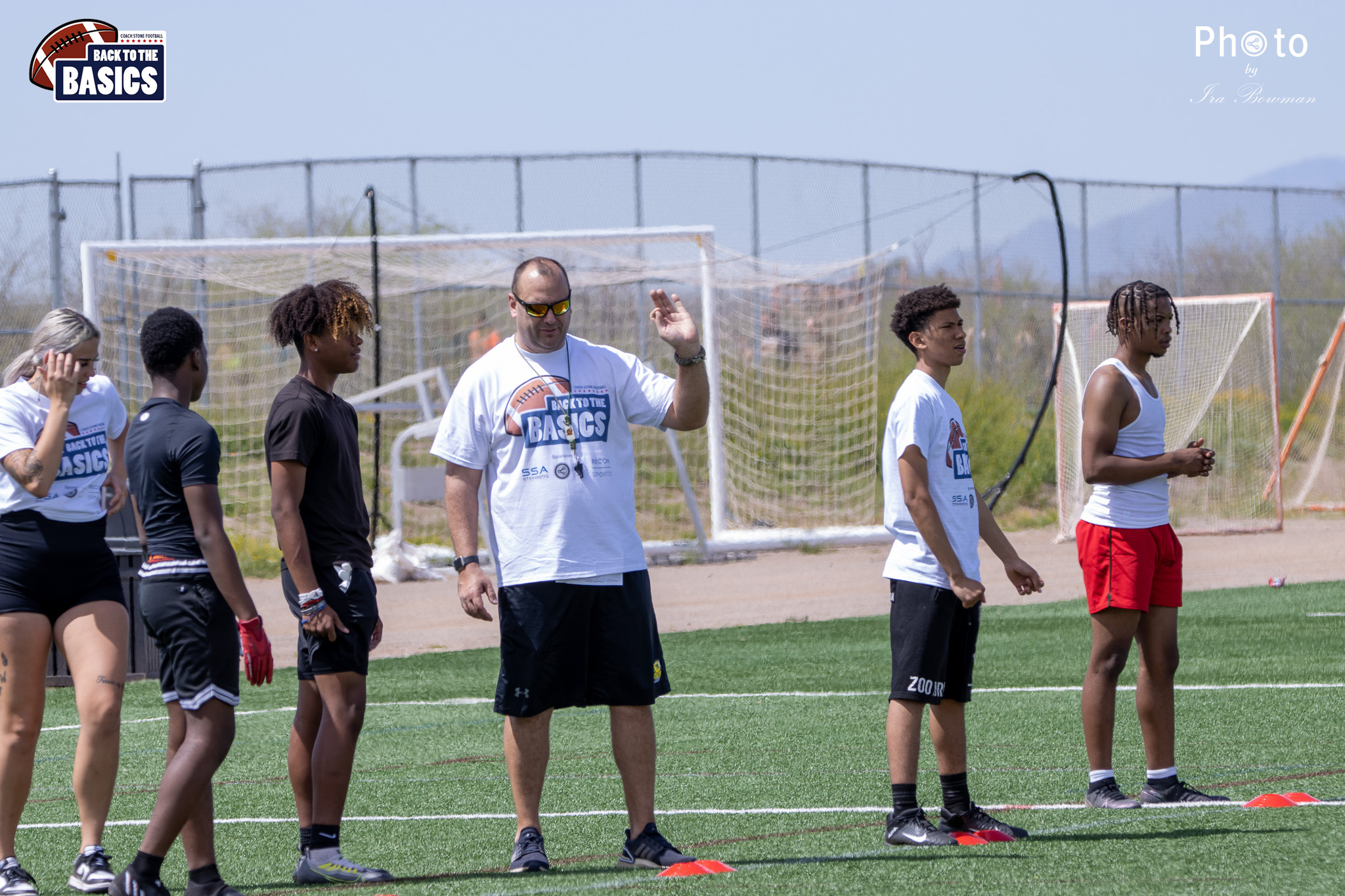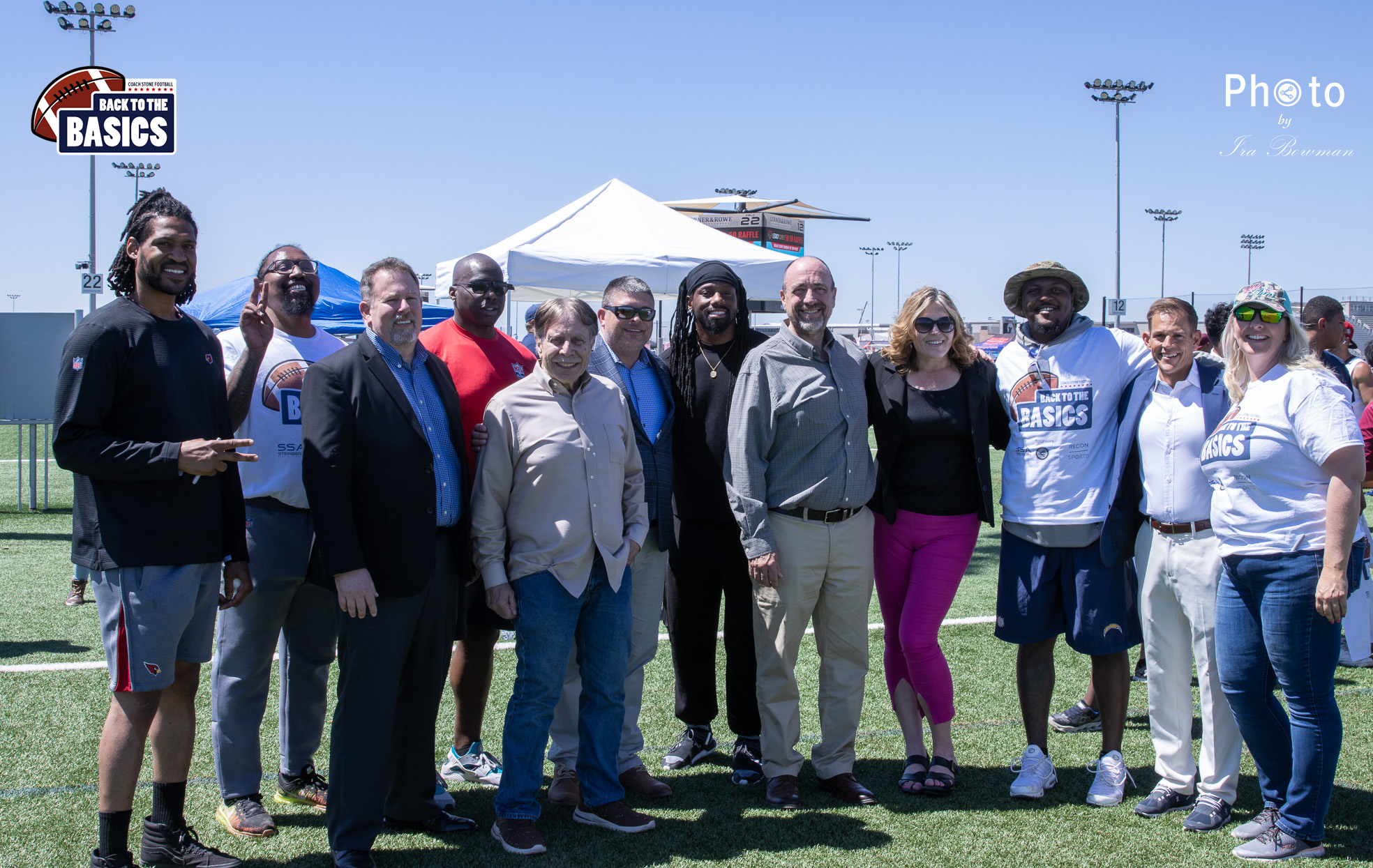 Steinberg Sports Academy hosted the Back to the Basics football camp, with Coach Stone and several former NFL Football Players including Super Bowl winning Chukky Okobi, Reggie Walker, David Carter and Charmeachealle Moore II. All photos presented here were taken and are owned by Ira Bowman, and all rights are reserved.