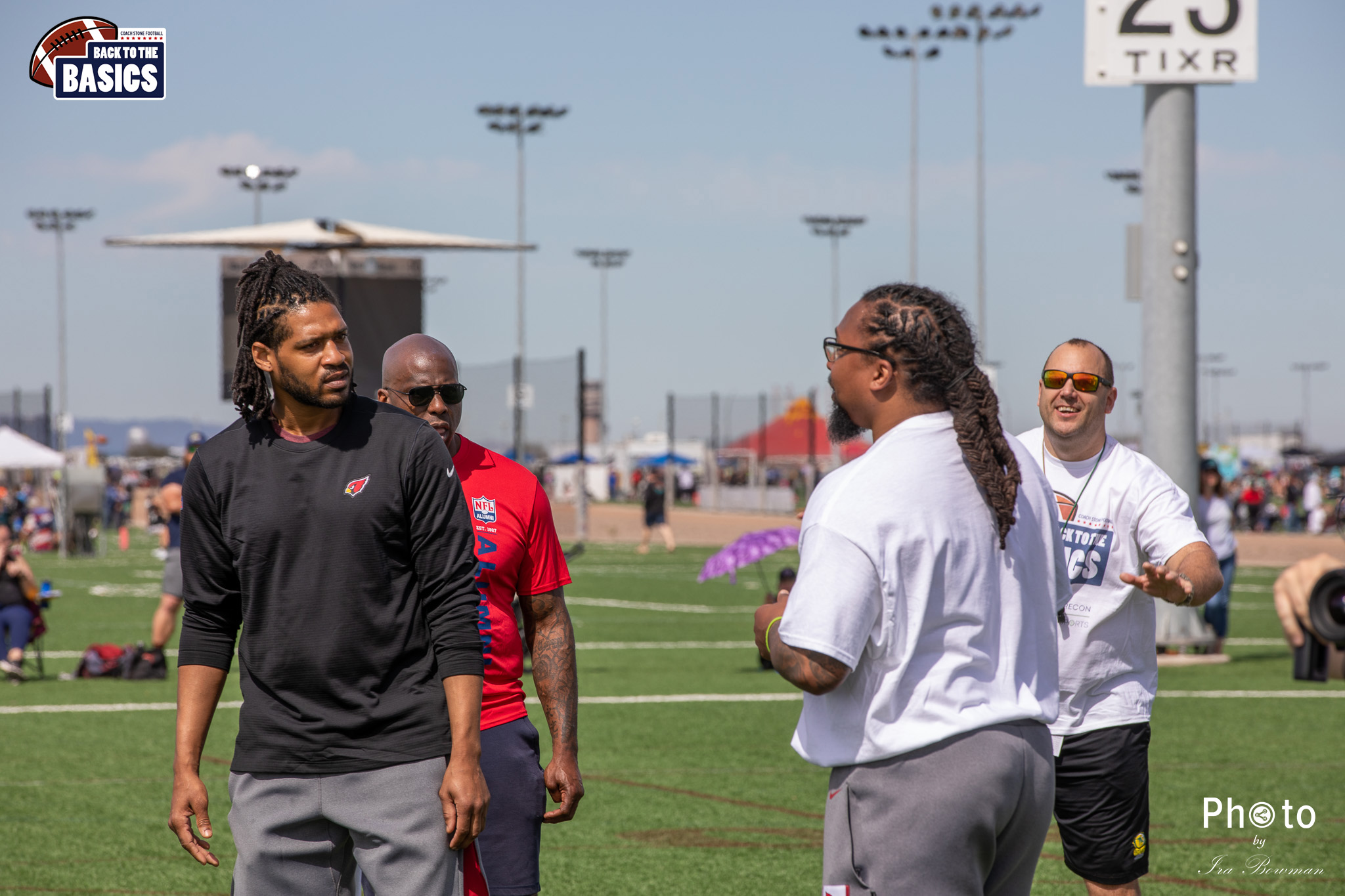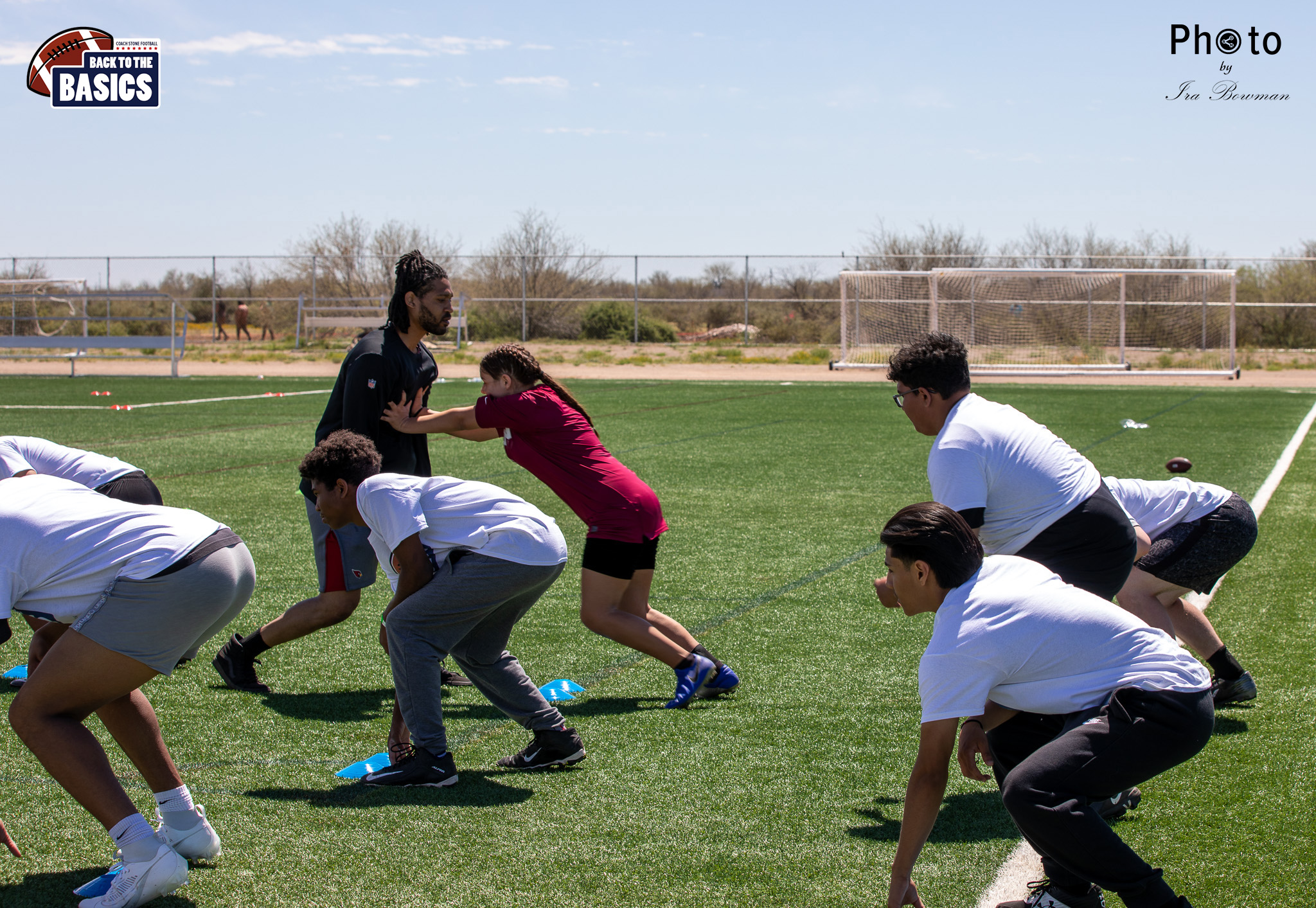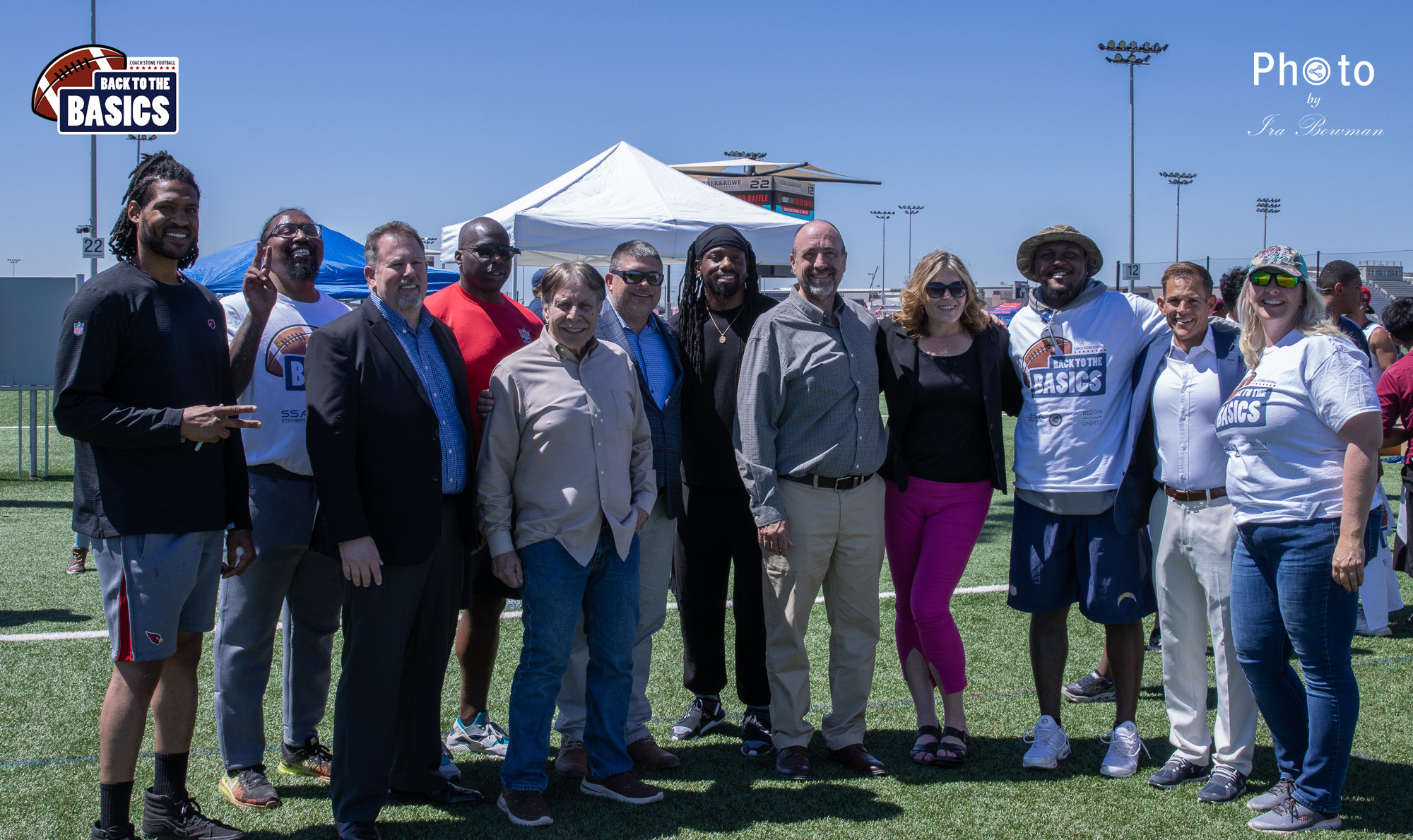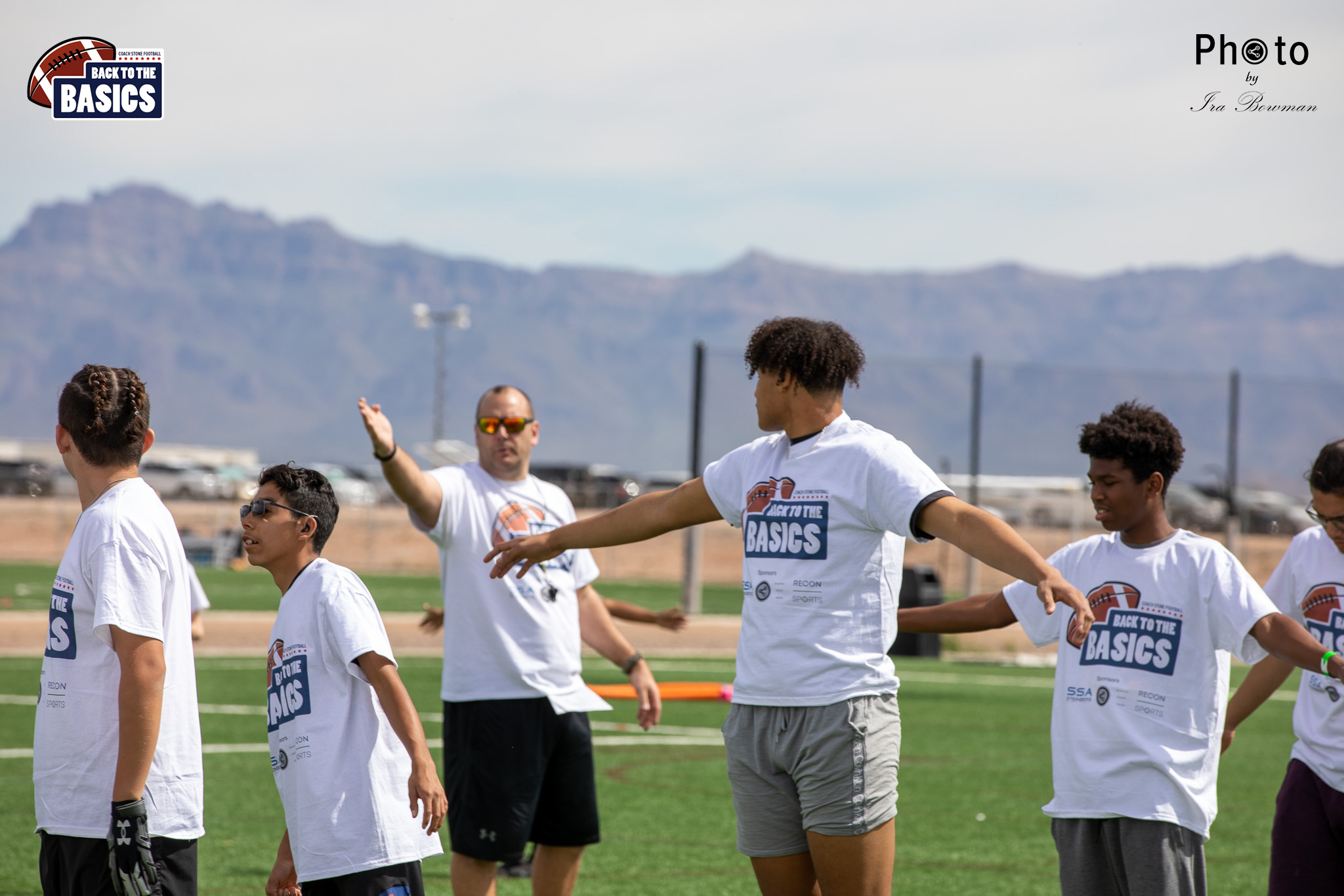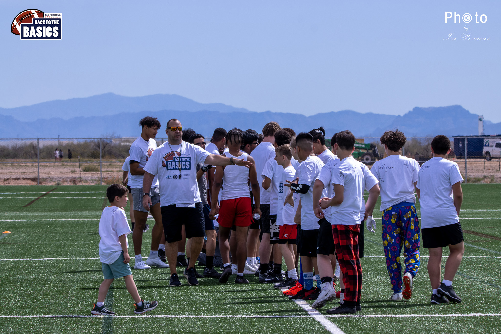 Steinberg Sports Academy hosted the Back to the Basics football camp, with Coach Stone and several former NFL Football Players including Super Bowl winning Chukky Okobi, Reggie Walker, David Carter and Charmeachealle Moore II. All photos presented here were taken and are owned by Ira Bowman, and all rights are reserved.