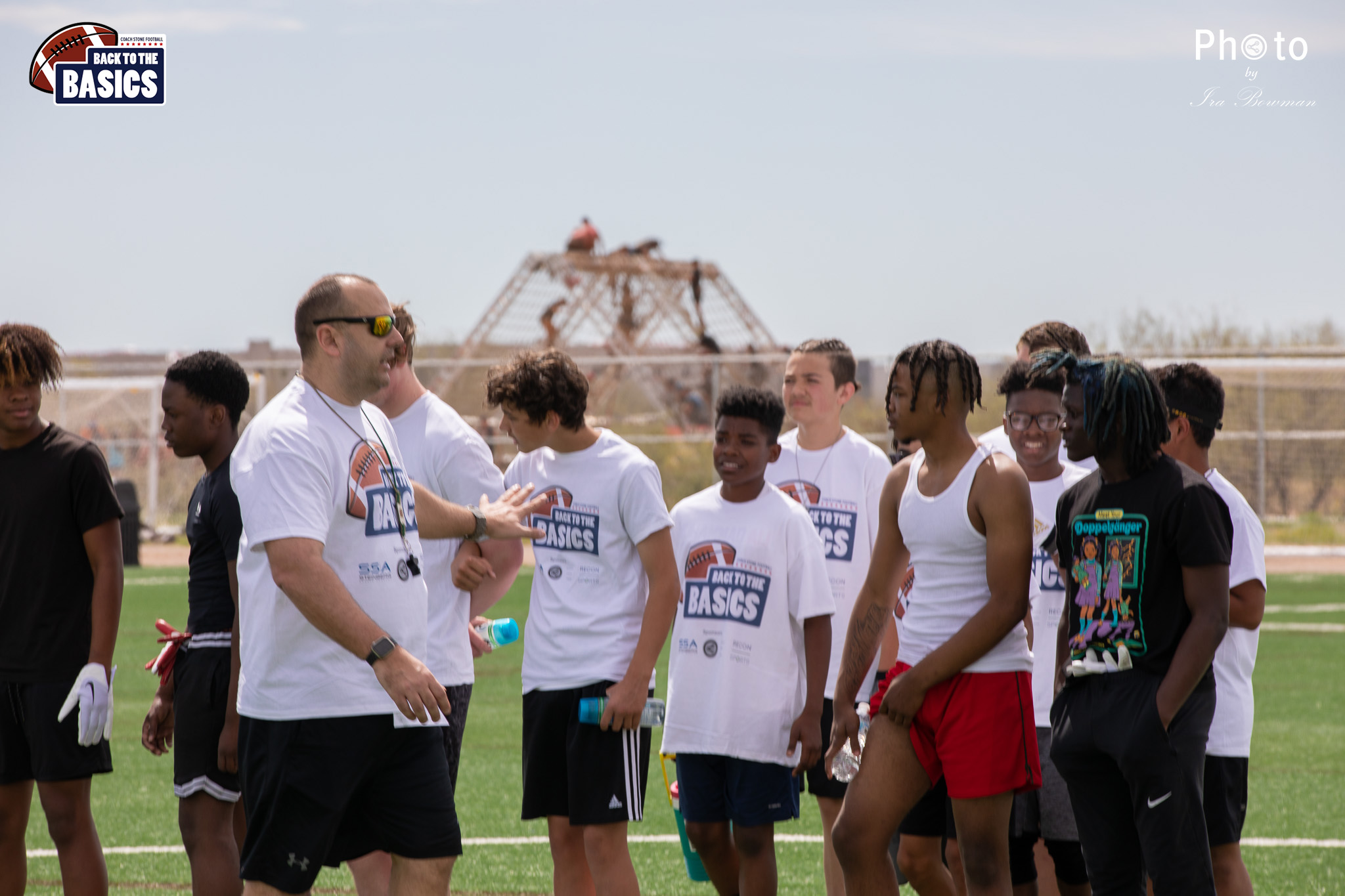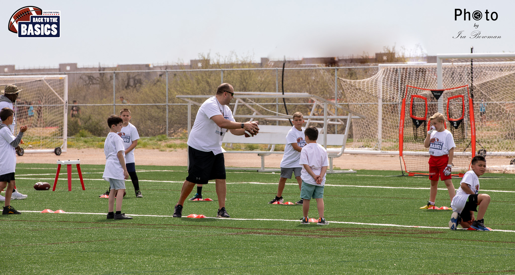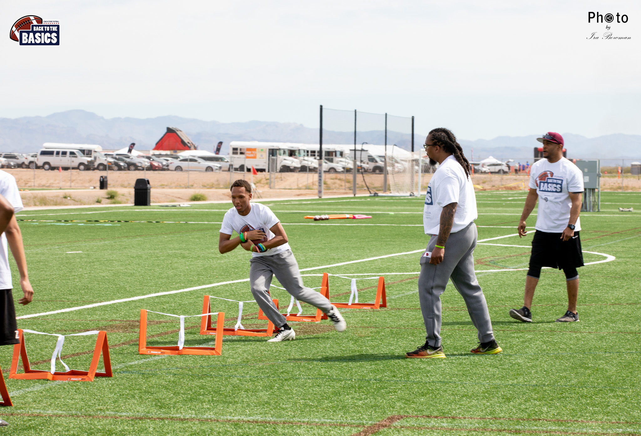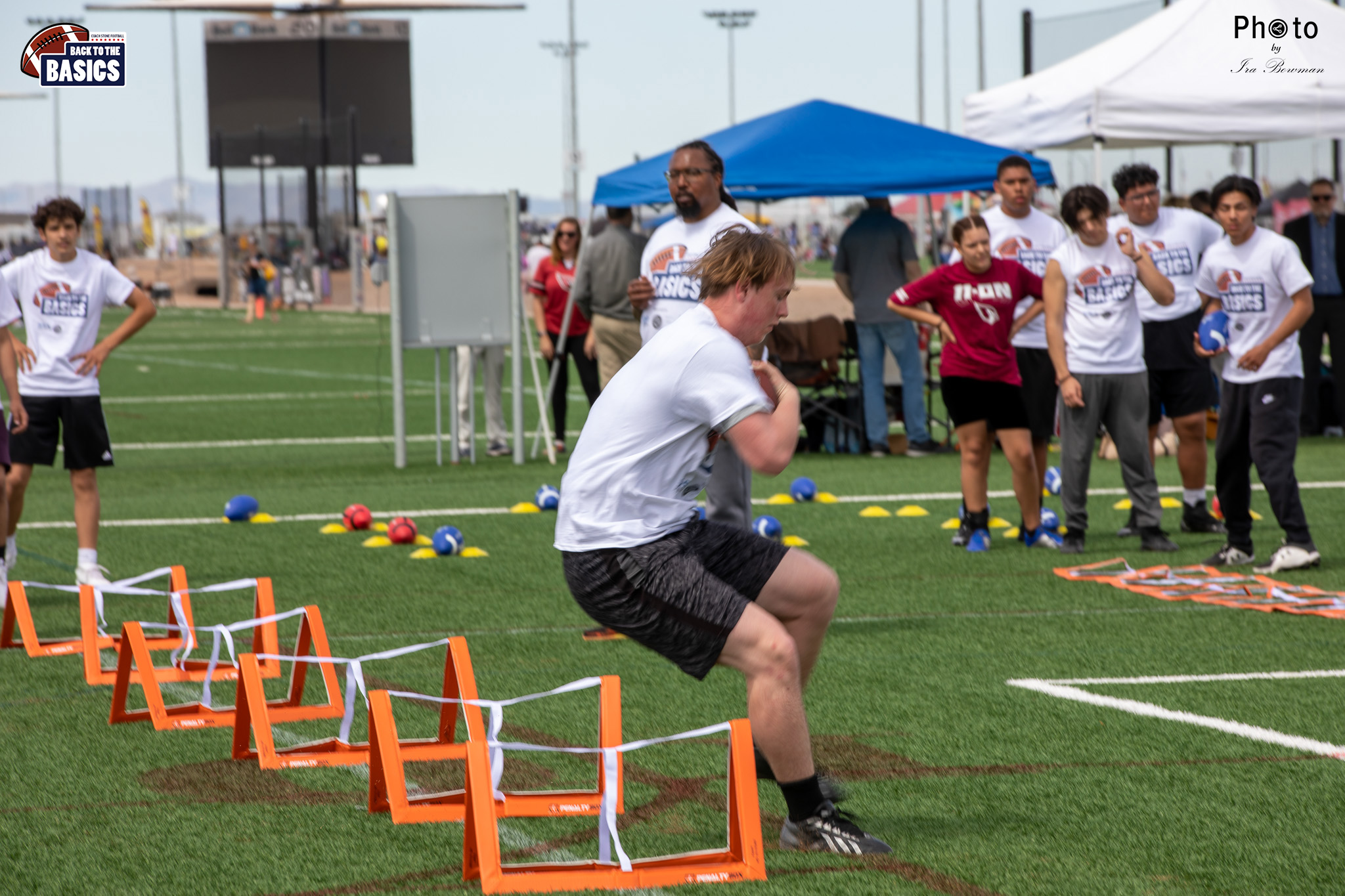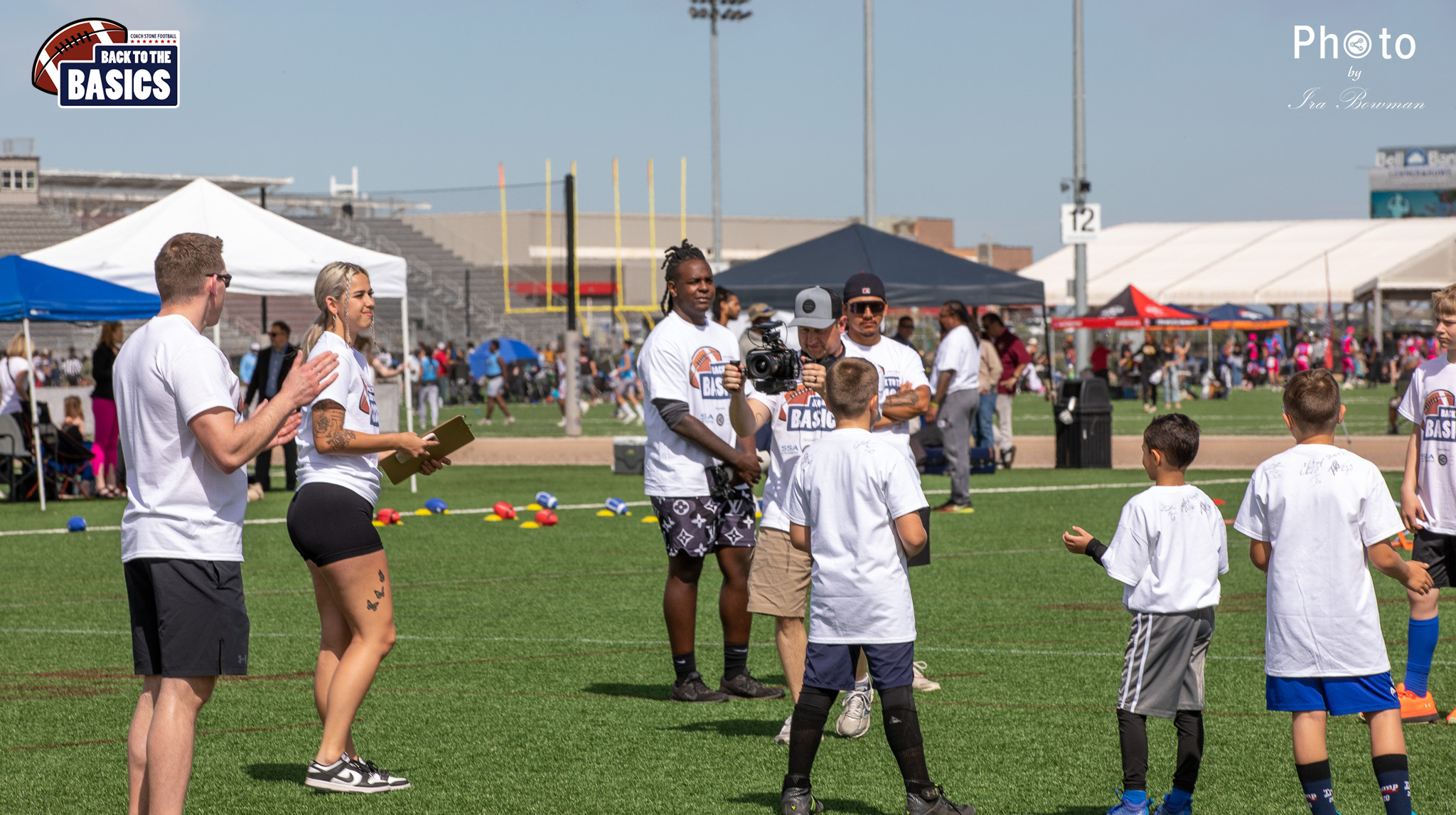 Steinberg Sports Academy hosted the Back to the Basics football camp, with Coach Stone and several former NFL Football Players including Super Bowl winning Chukky Okobi, Reggie Walker, David Carter and Charmeachealle Moore II. All photos presented here were taken and are owned by Ira Bowman, and all rights are reserved.