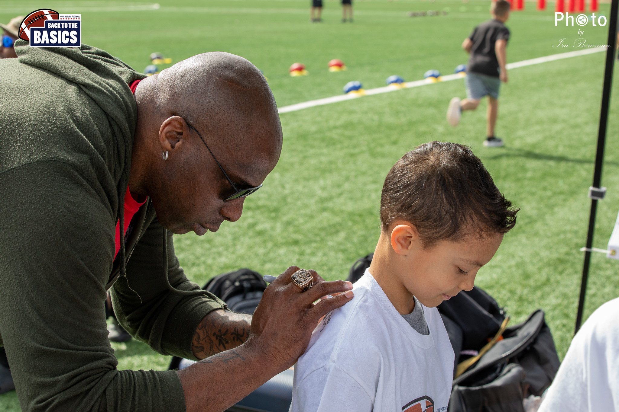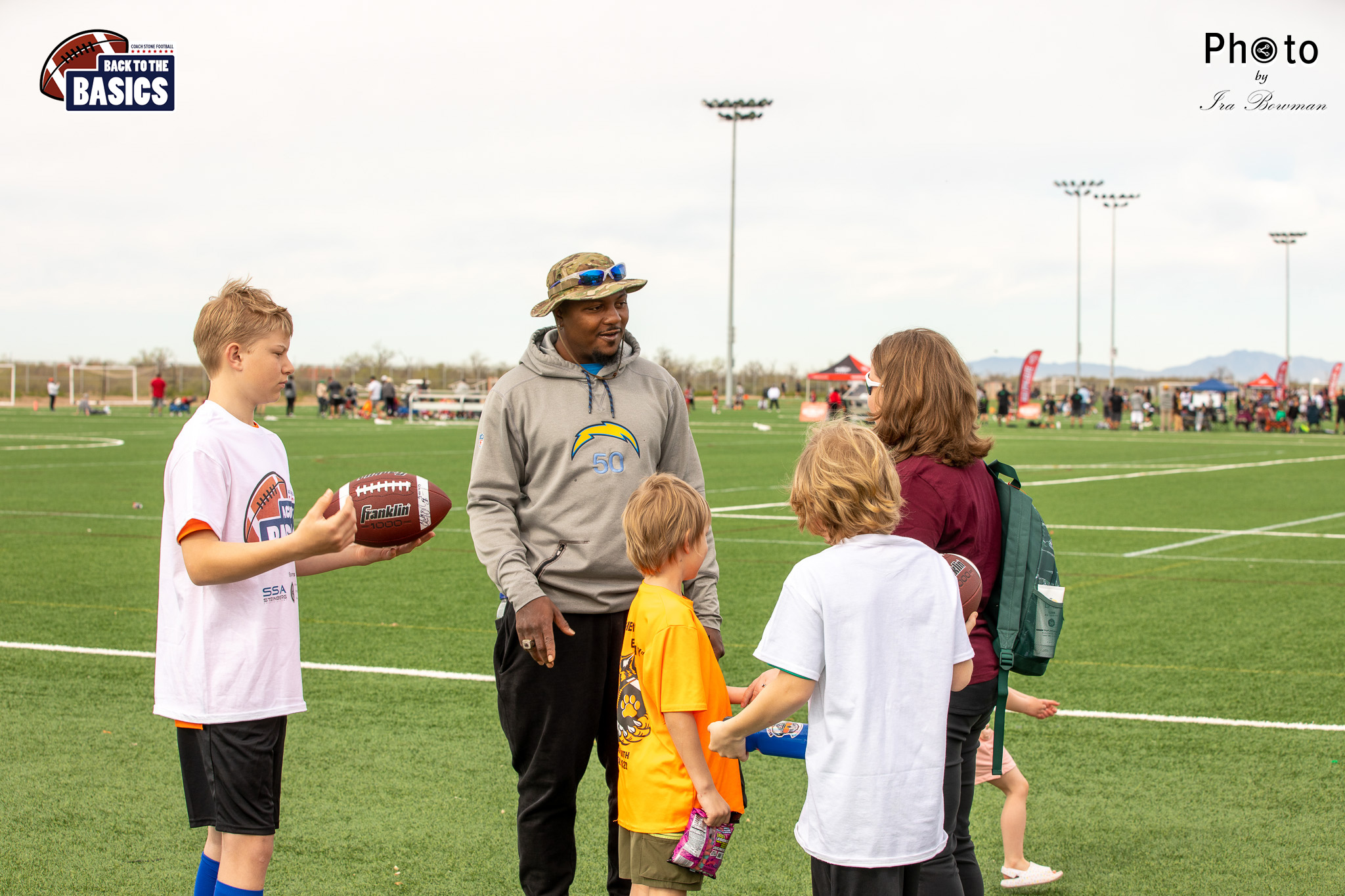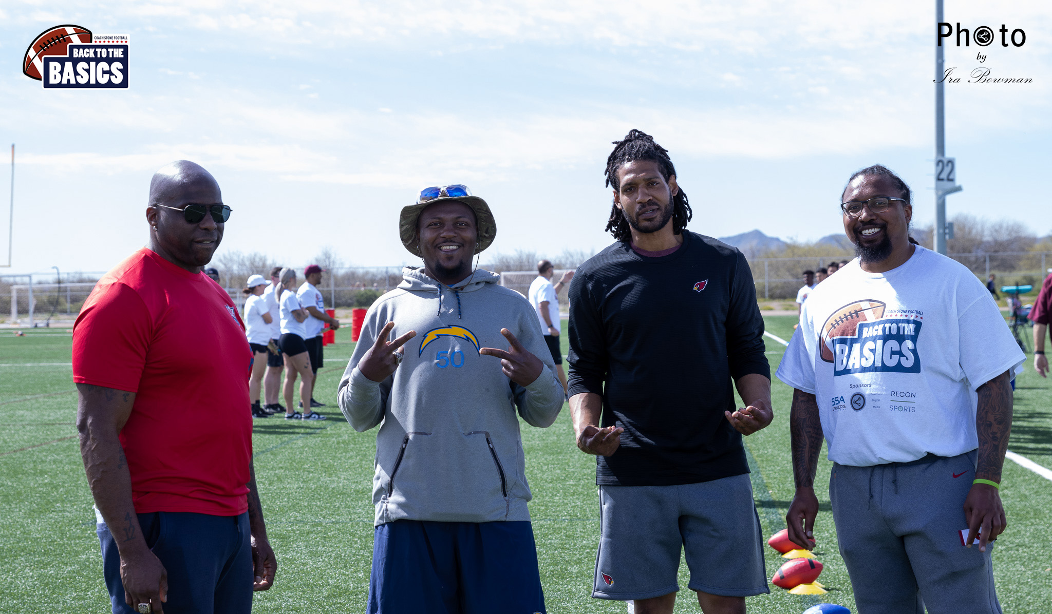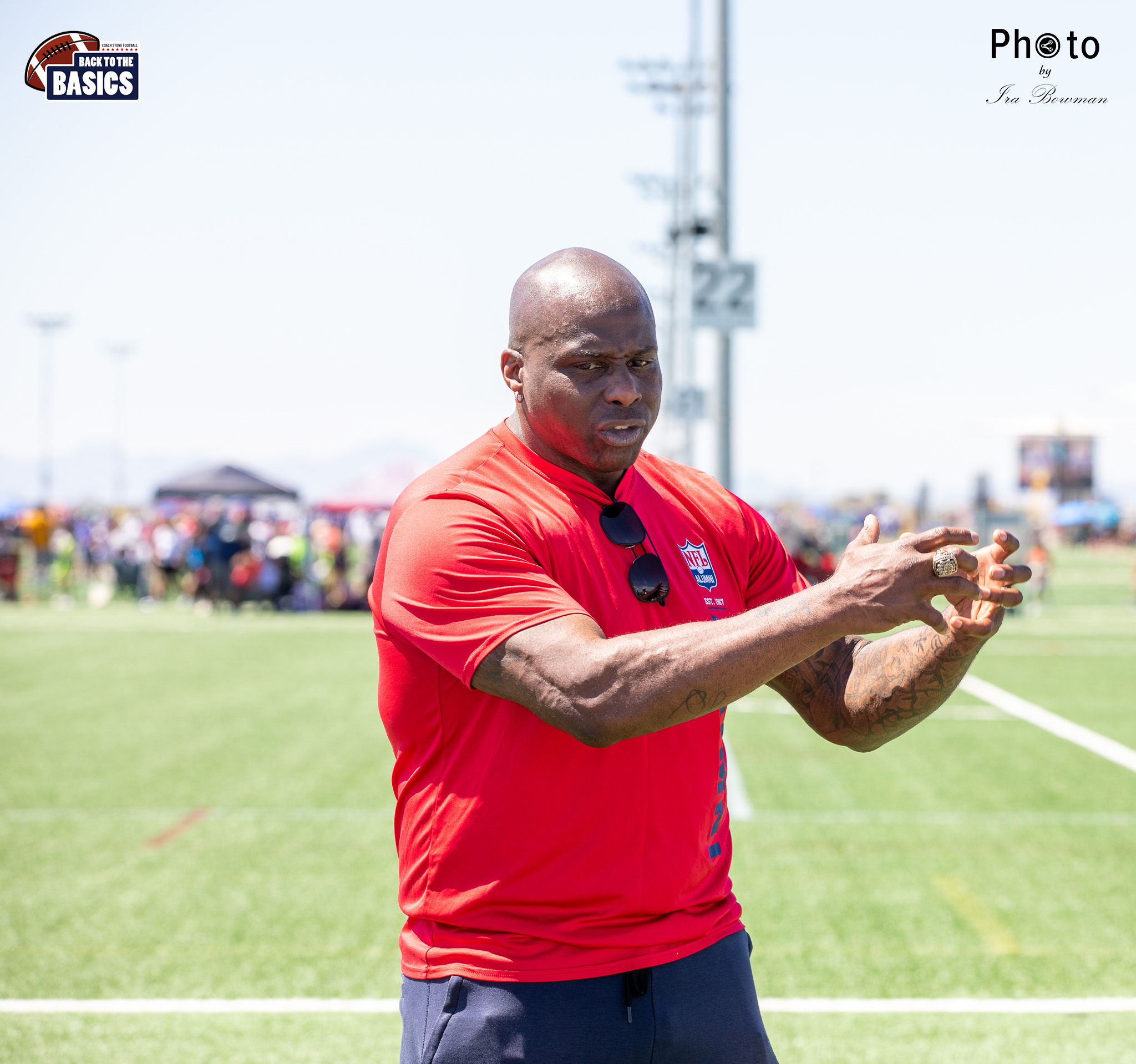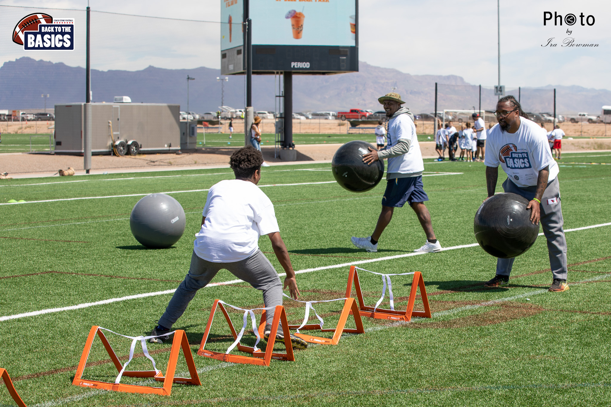 Steinberg Sports Academy hosted the Back to the Basics football camp, with Coach Stone and several former NFL Football Players including Super Bowl winning Chukky Okobi, Reggie Walker, David Carter and Charmeachealle Moore II. All photos presented here were taken and are owned by Ira Bowman, and all rights are reserved.
