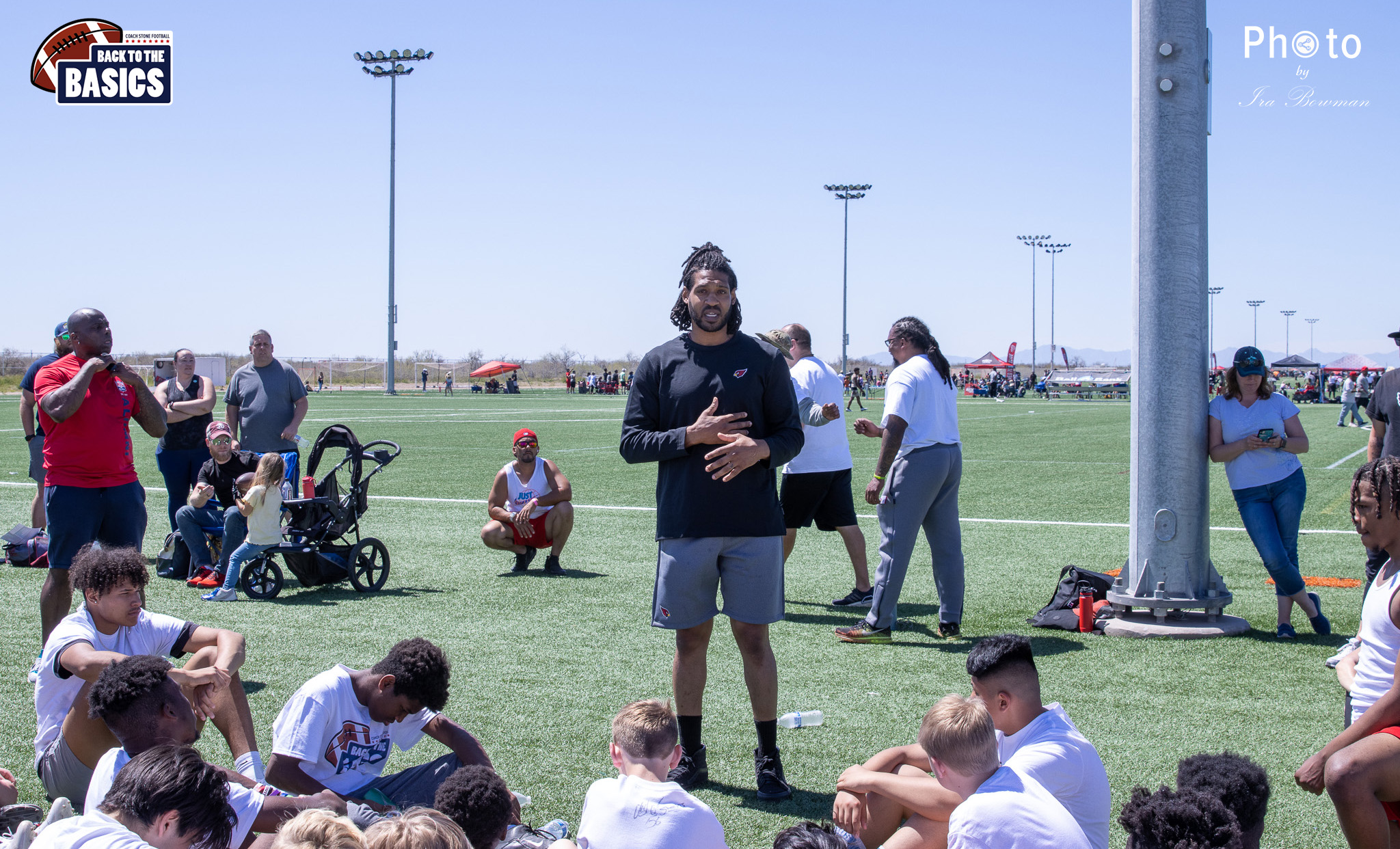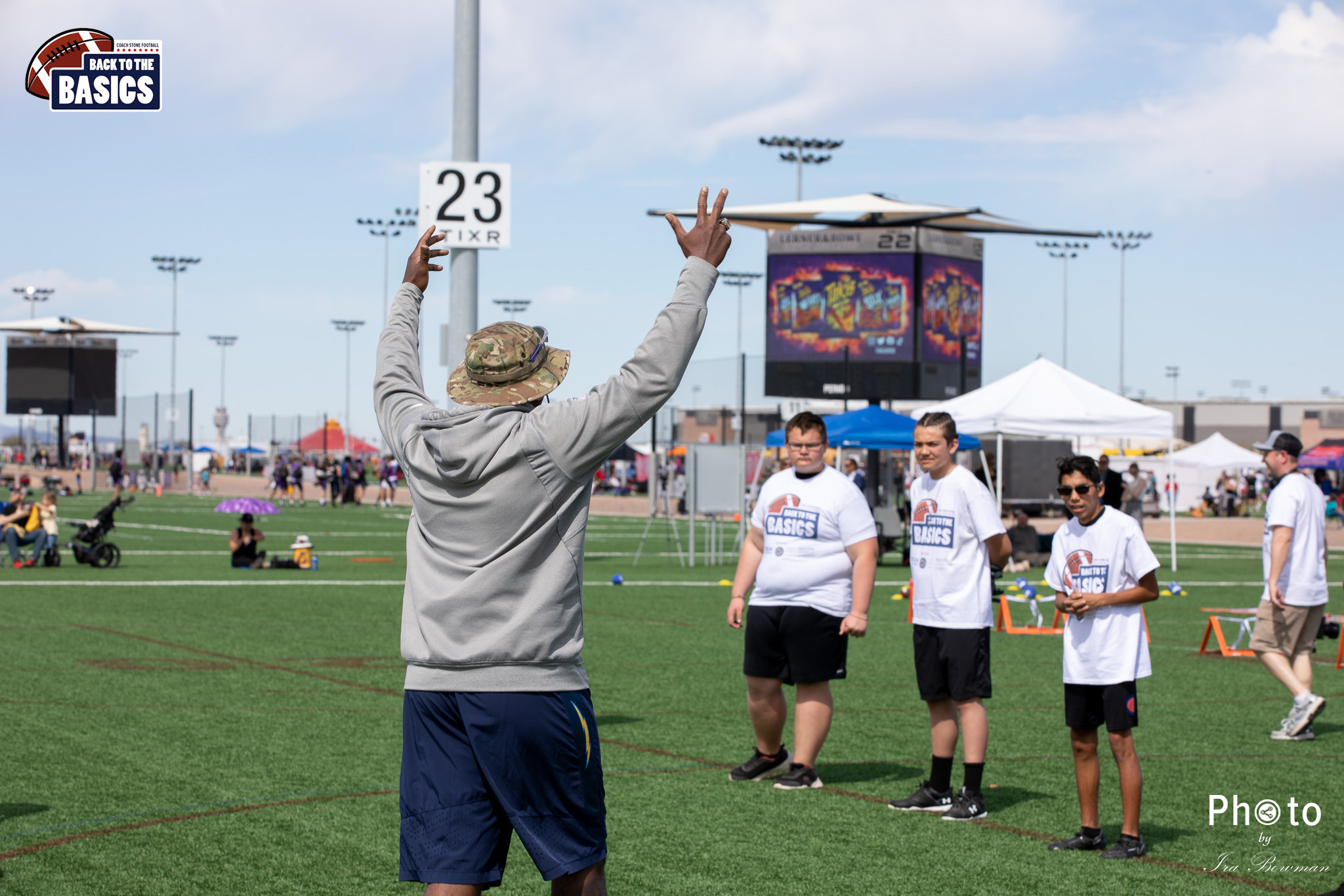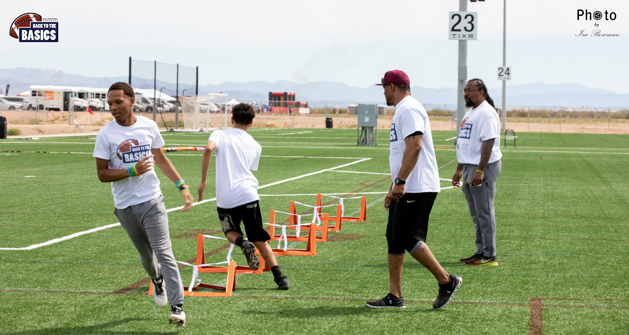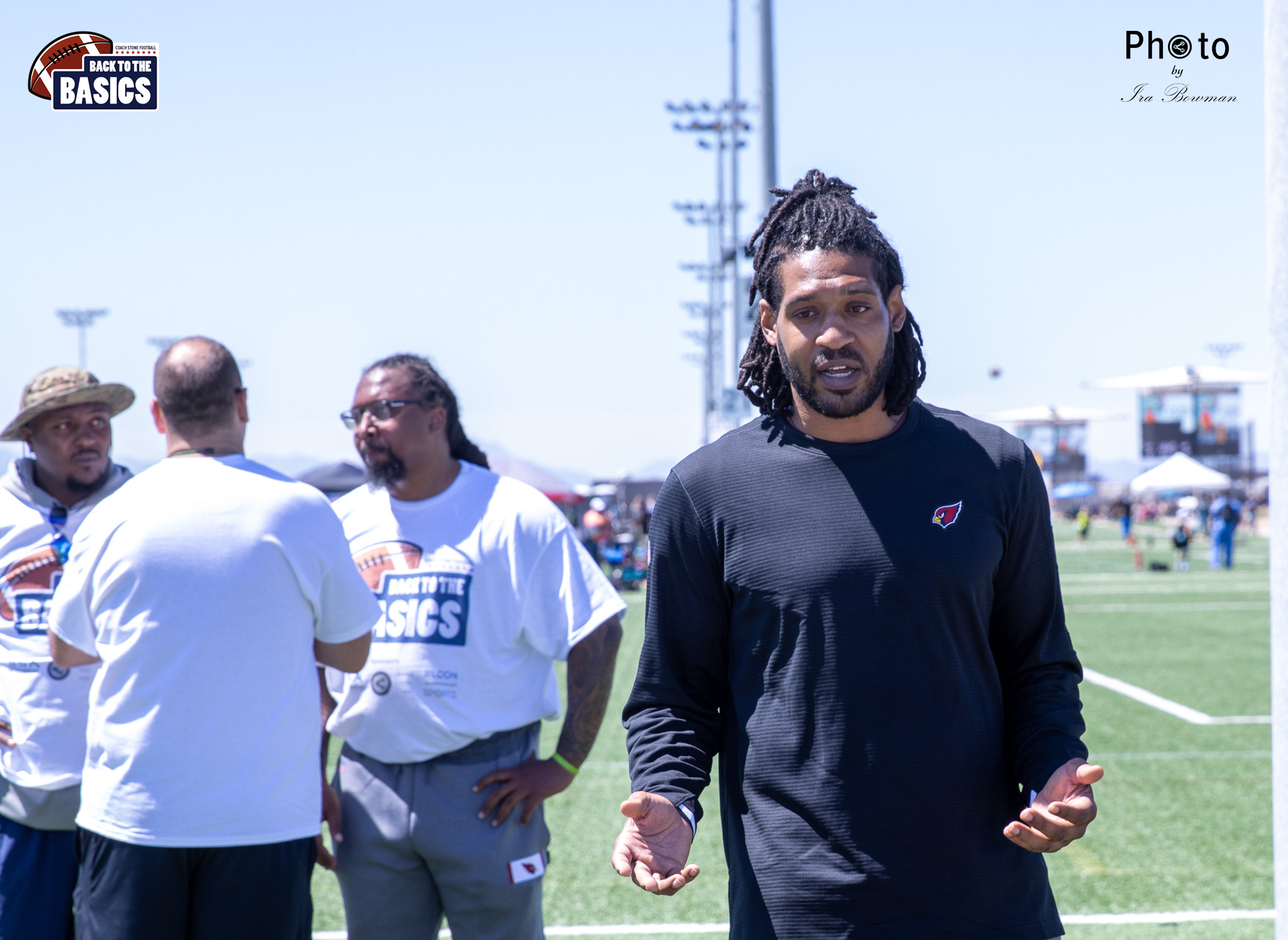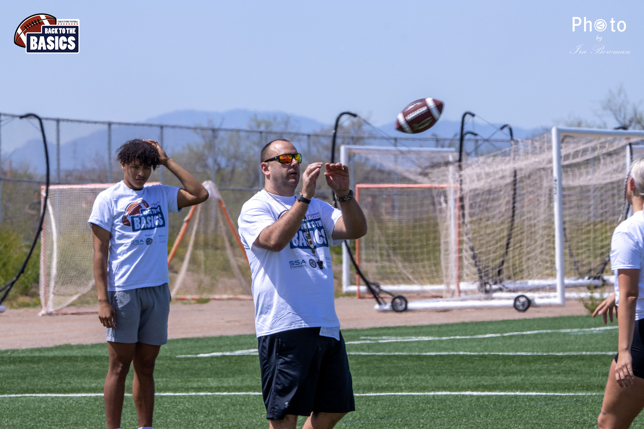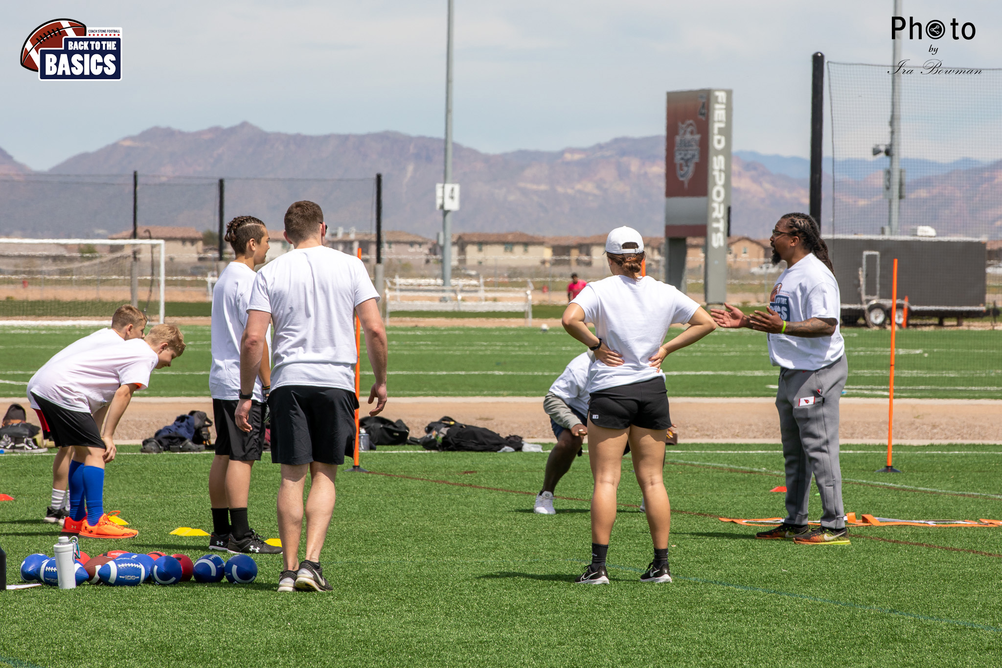Steinberg Sports Academy hosted the Back to the Basics football camp, with Coach Stone and several former NFL Football Players including Super Bowl winning Chukky Okobi, Reggie Walker, David Carter and Charmeachealle Moore II. All photos presented here were taken and are owned by Ira Bowman, and all rights are reserved.