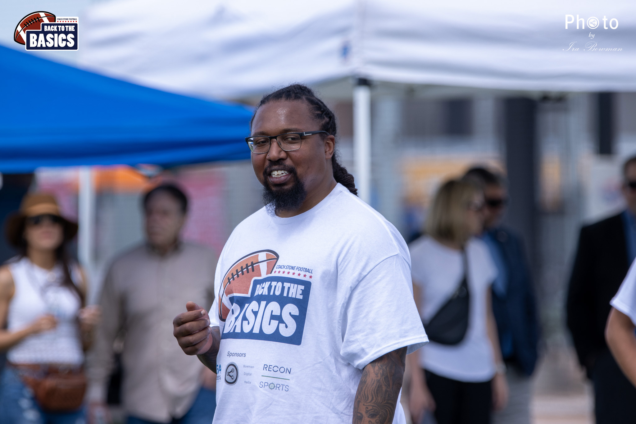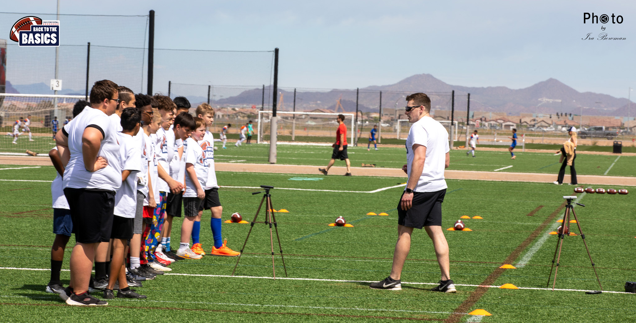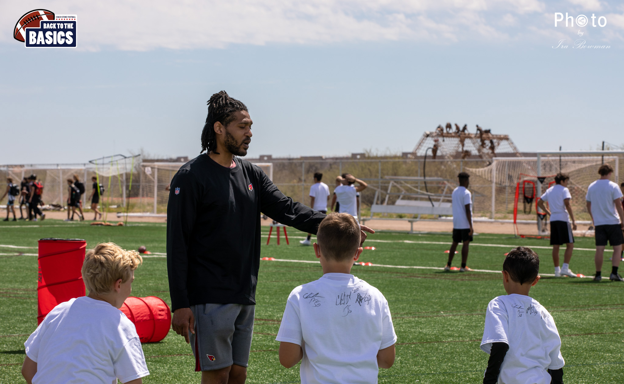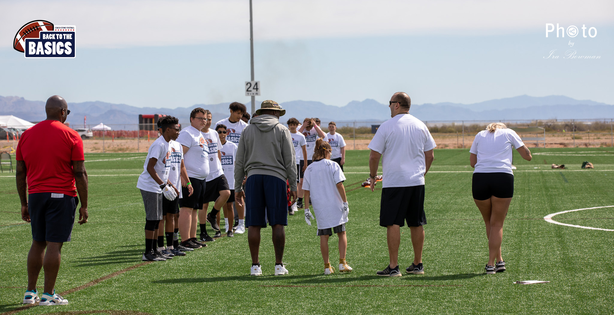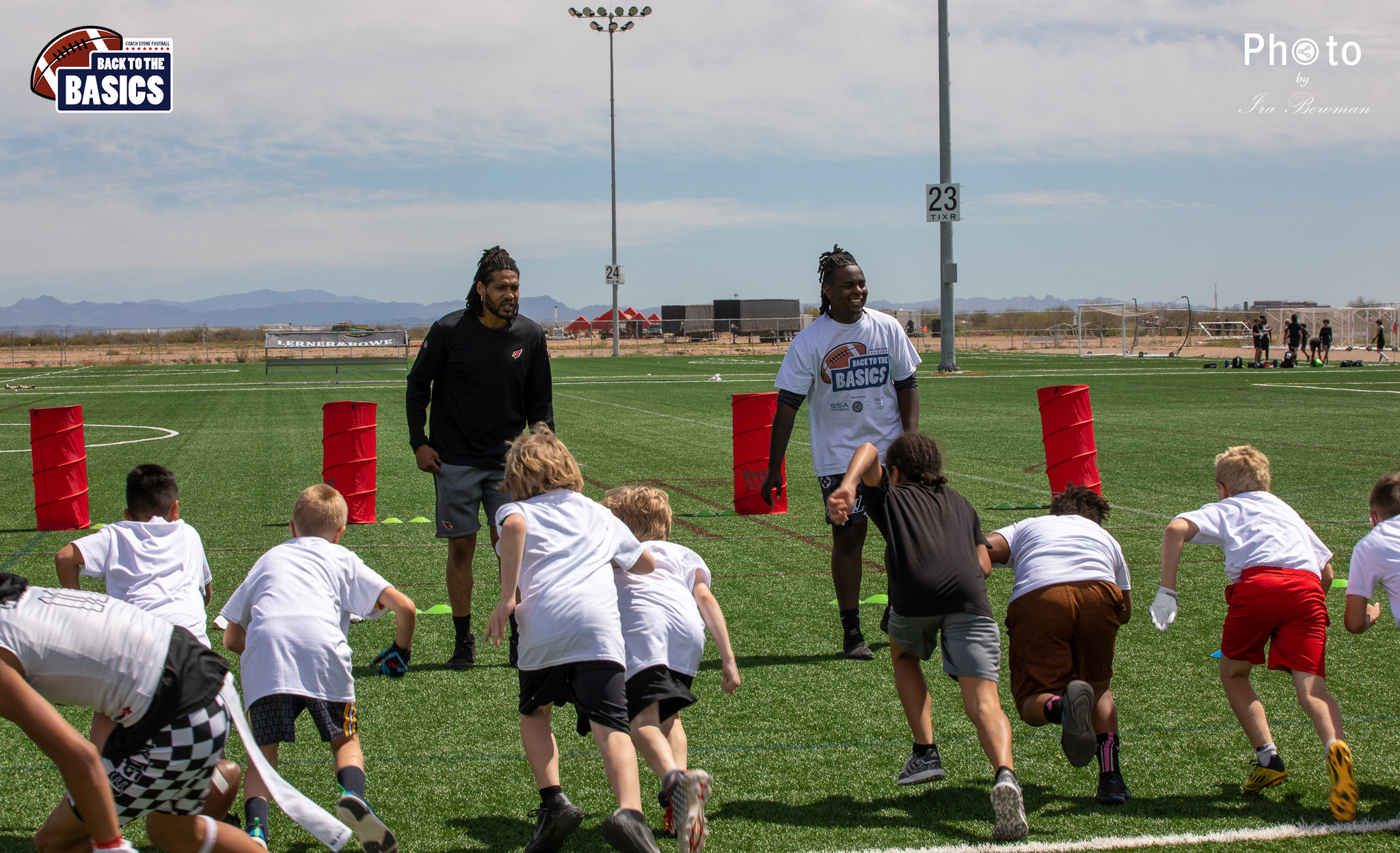 Steinberg Sports Academy hosted the Back to the Basics football camp, with Coach Stone and several former NFL Football Players including Super Bowl winning Chukky Okobi, Reggie Walker, David Carter and Charmeachealle Moore II. All photos presented here were taken and are owned by Ira Bowman, and all rights are reserved.