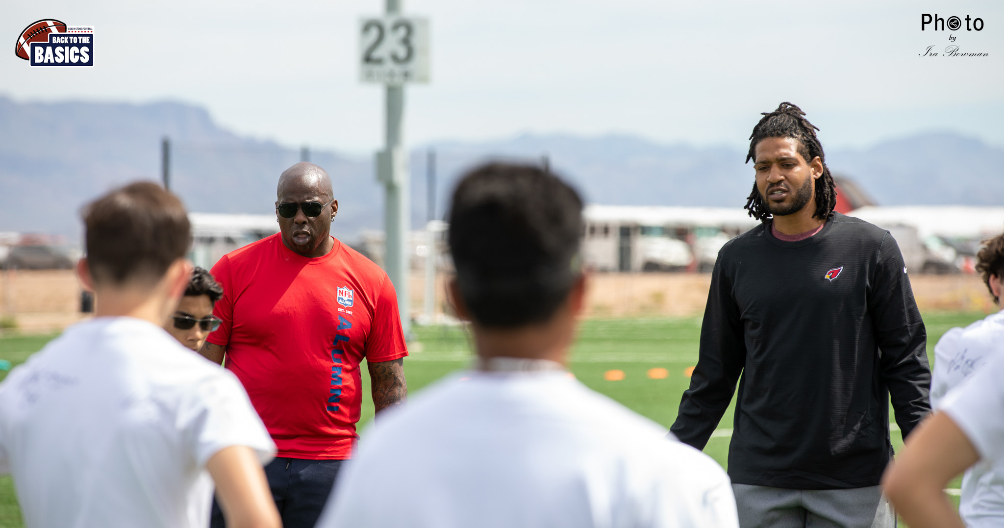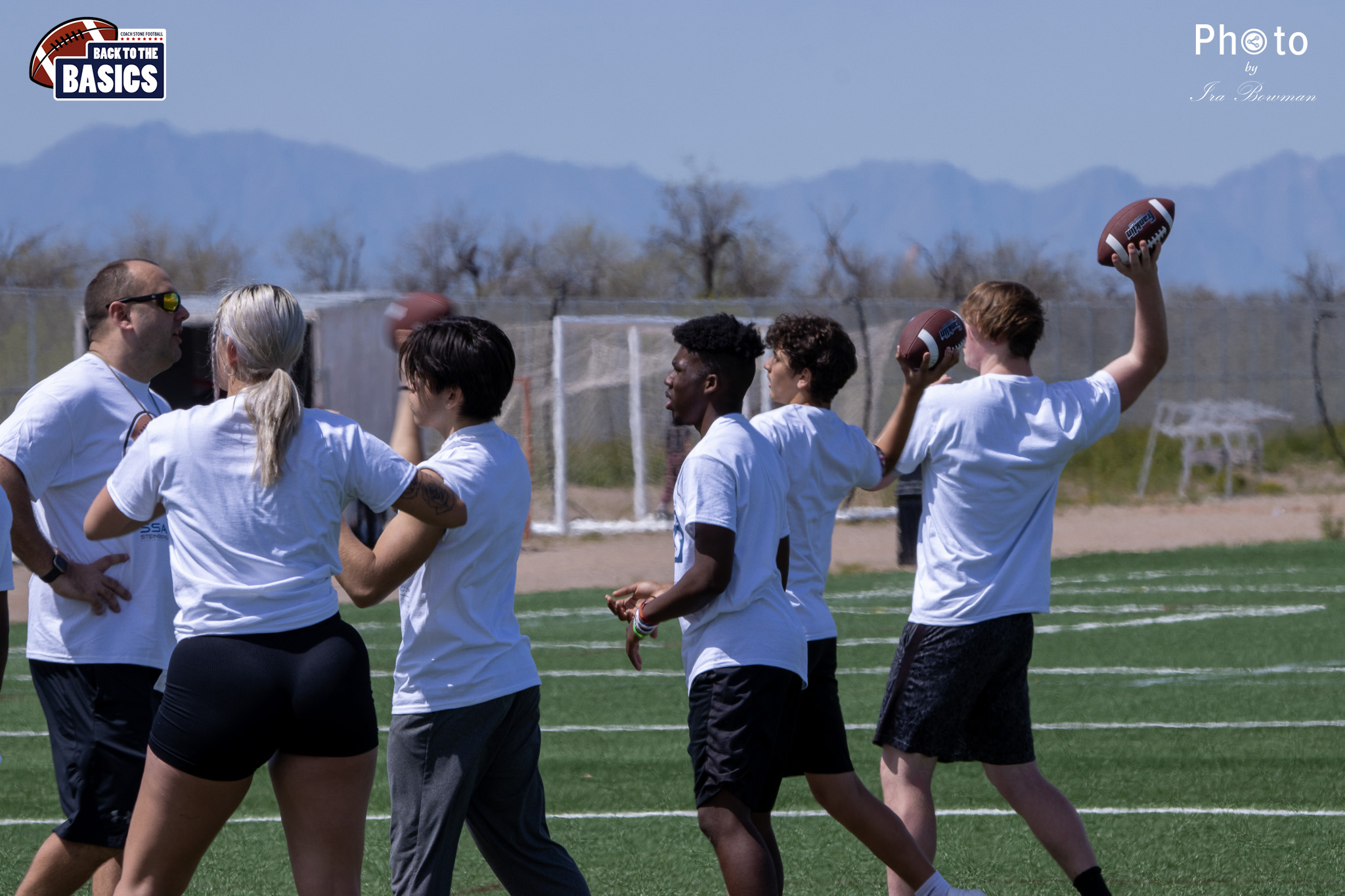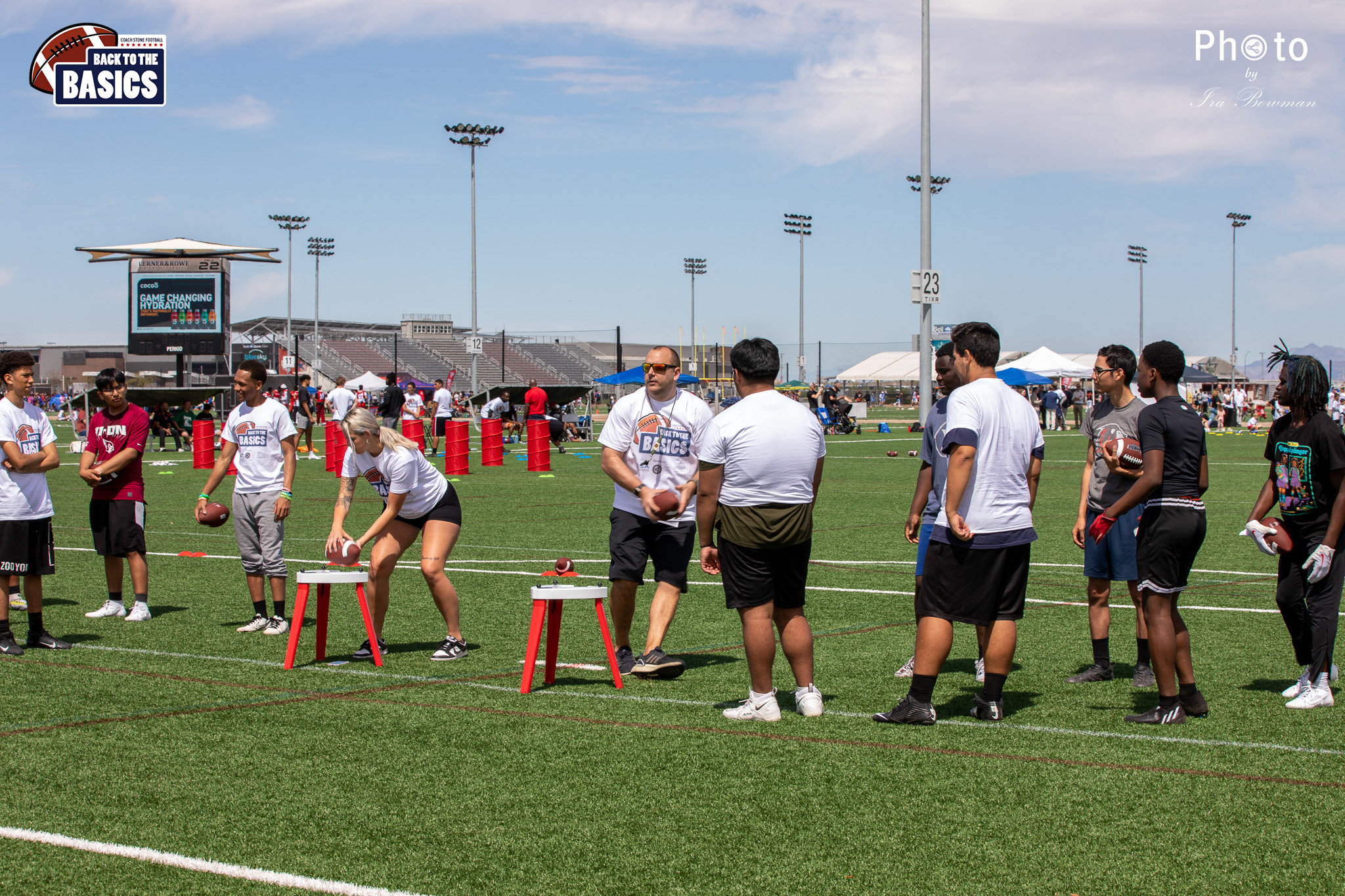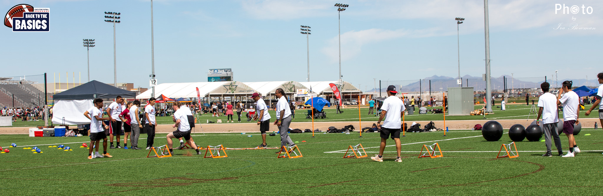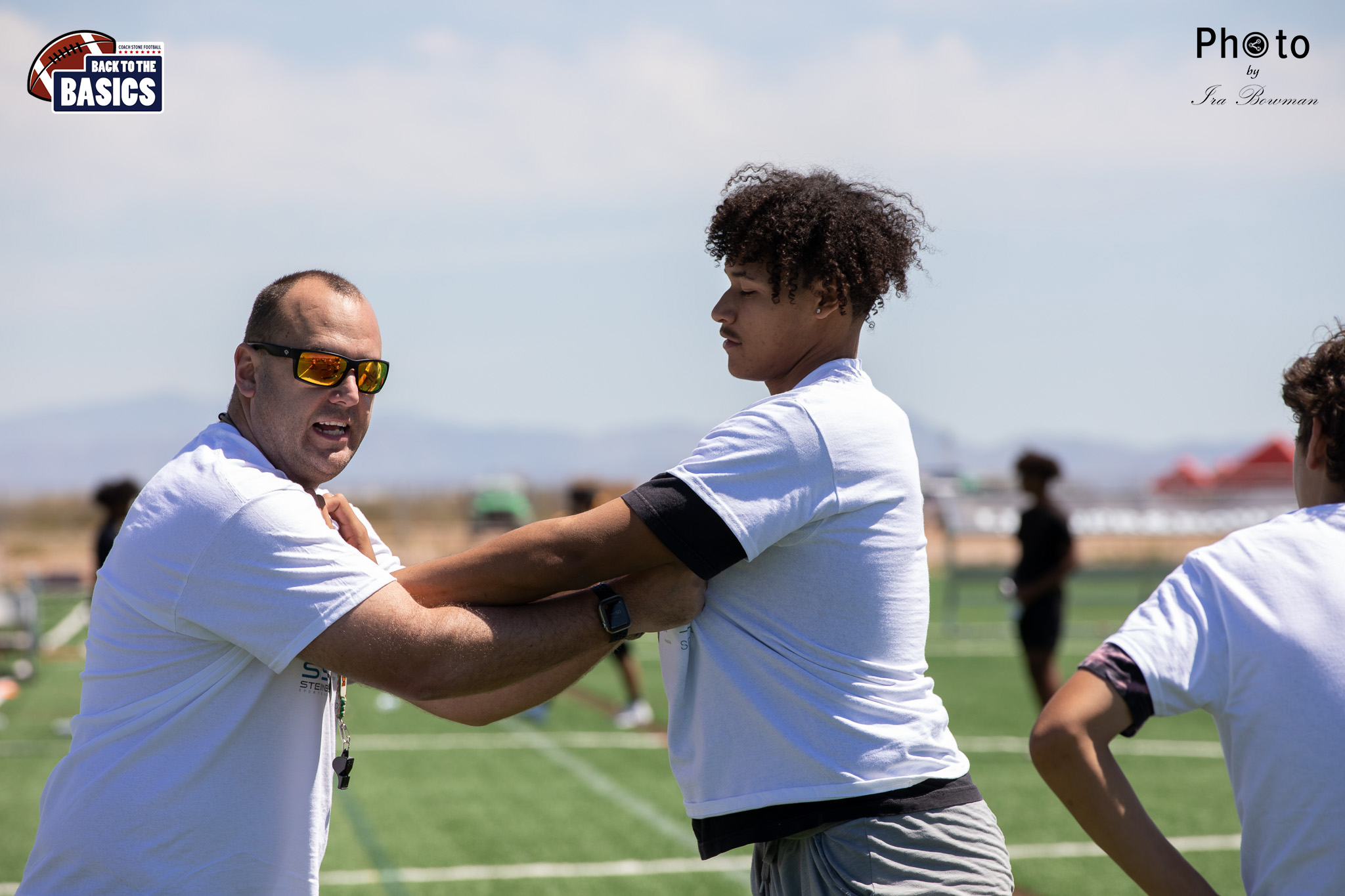 Steinberg Sports Academy hosted the Back to the Basics football camp, with Coach Stone and several former NFL Football Players including Super Bowl winning Chukky Okobi, Reggie Walker, David Carter and Charmeachealle Moore II. All photos presented here were taken and are owned by Ira Bowman, and all rights are reserved.