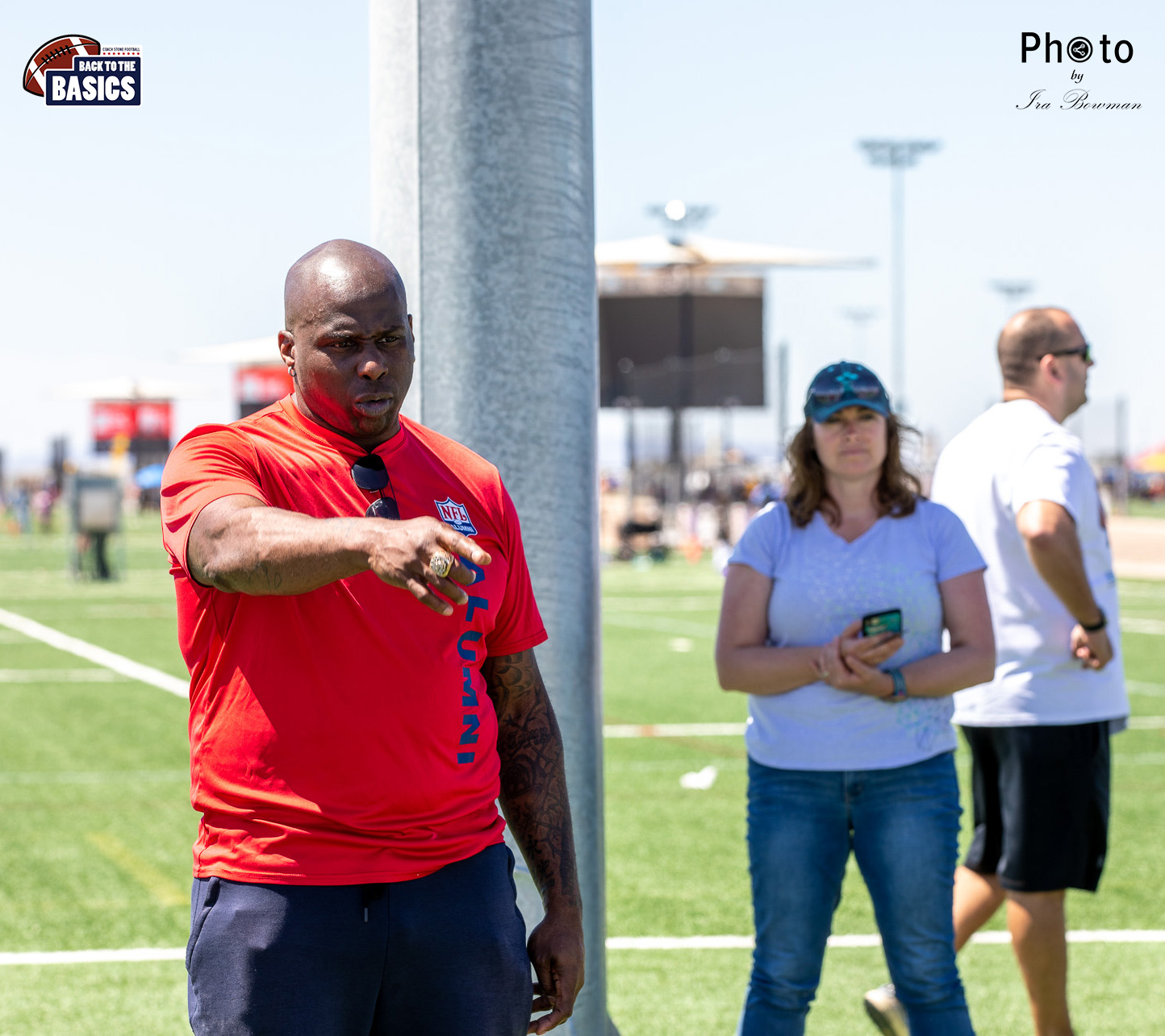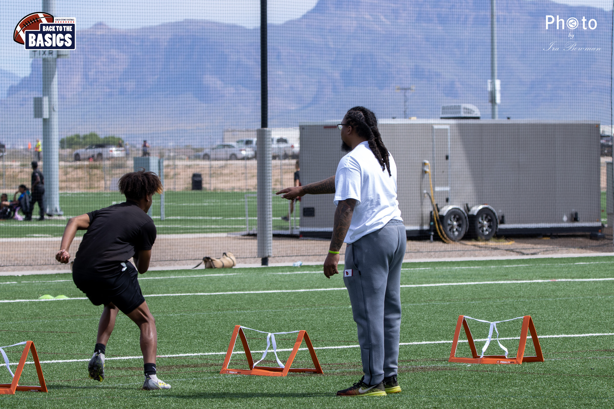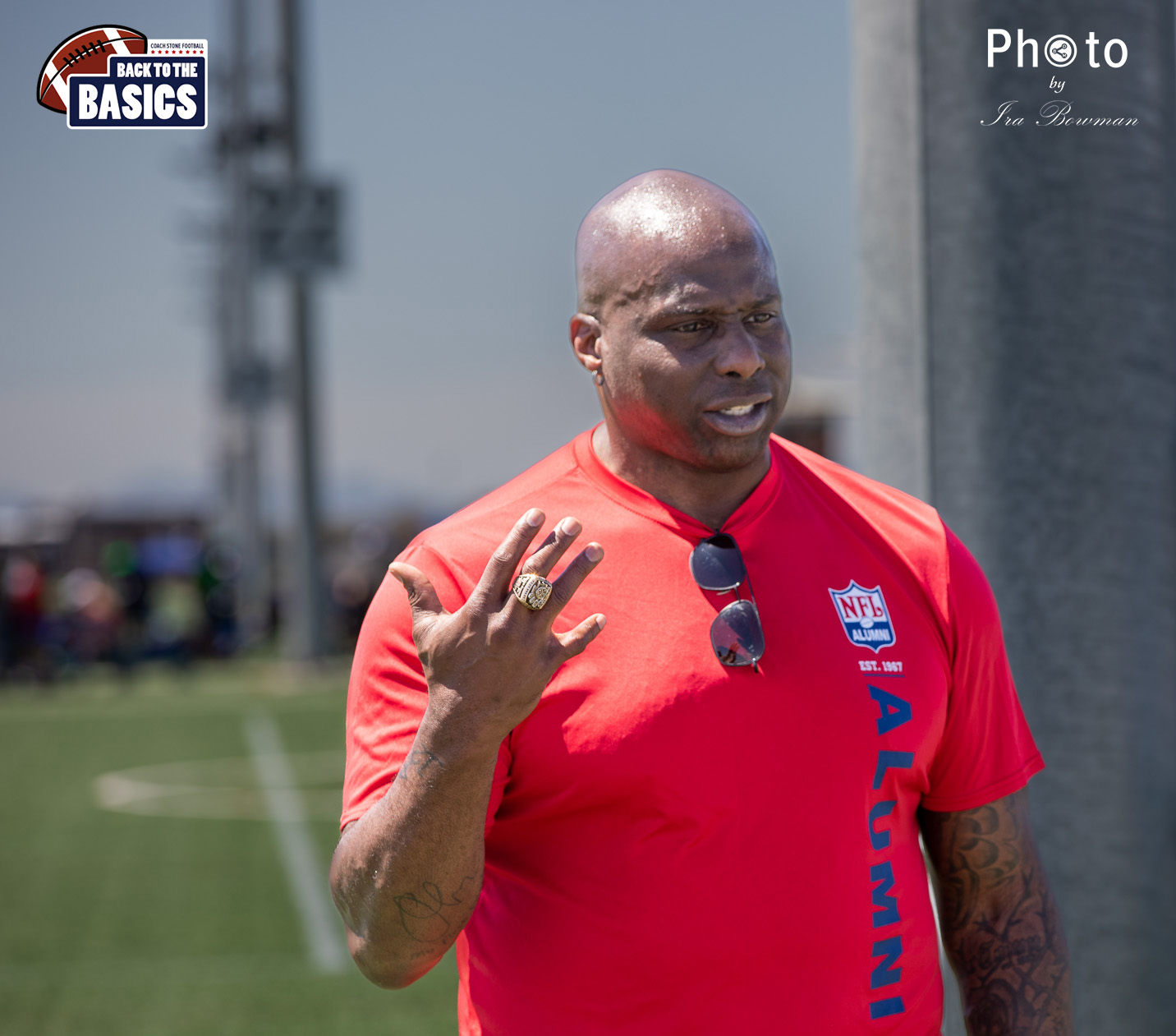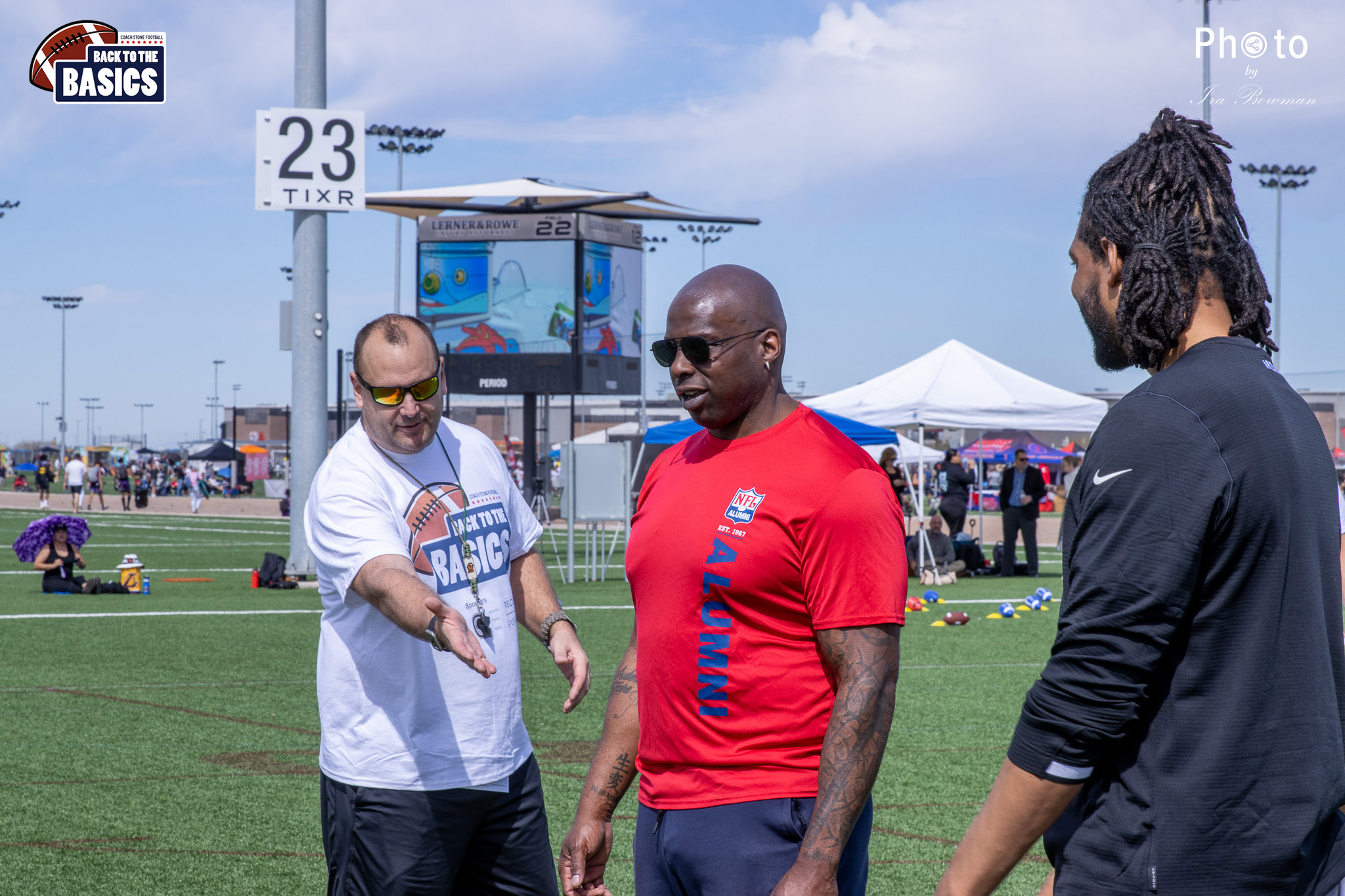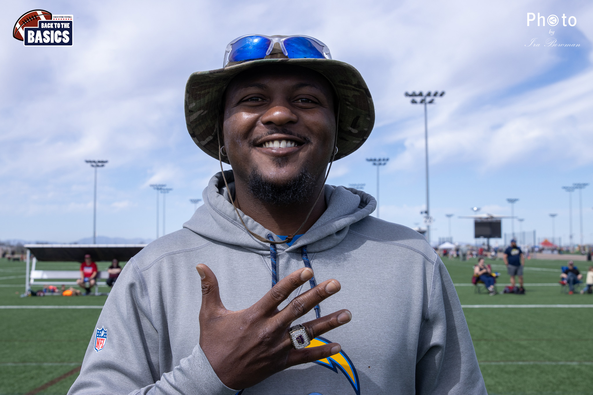 Steinberg Sports Academy hosted the Back to the Basics football camp, with Coach Stone and several former NFL Football Players including Super Bowl winning Chukky Okobi, Reggie Walker, David Carter and Charmeachealle Moore II. All photos presented here were taken and are owned by Ira Bowman, and all rights are reserved.