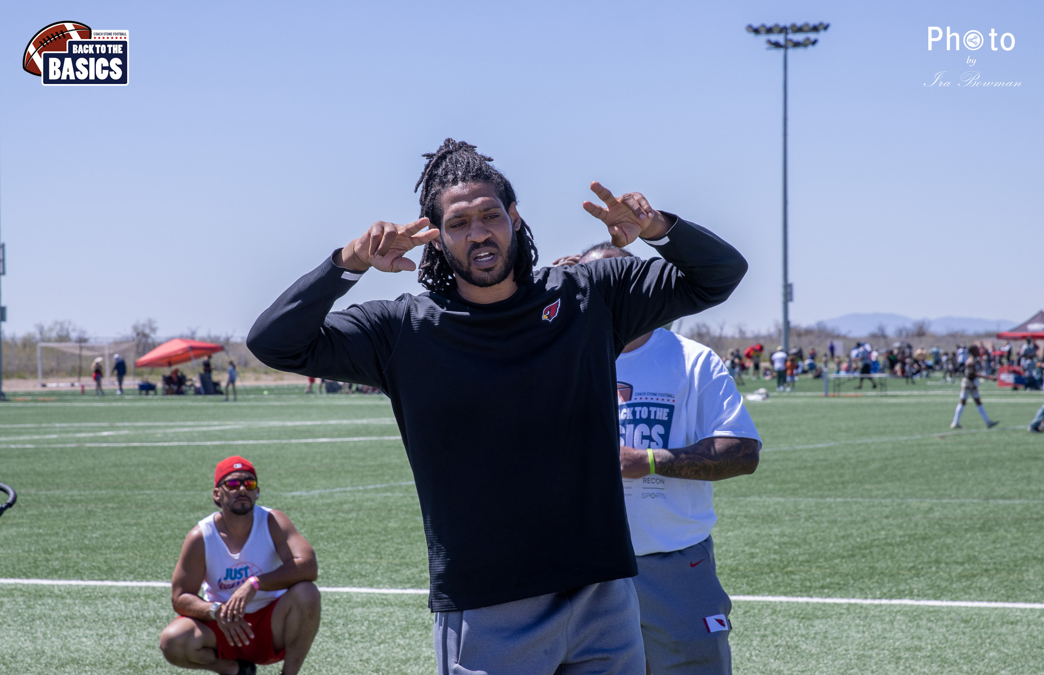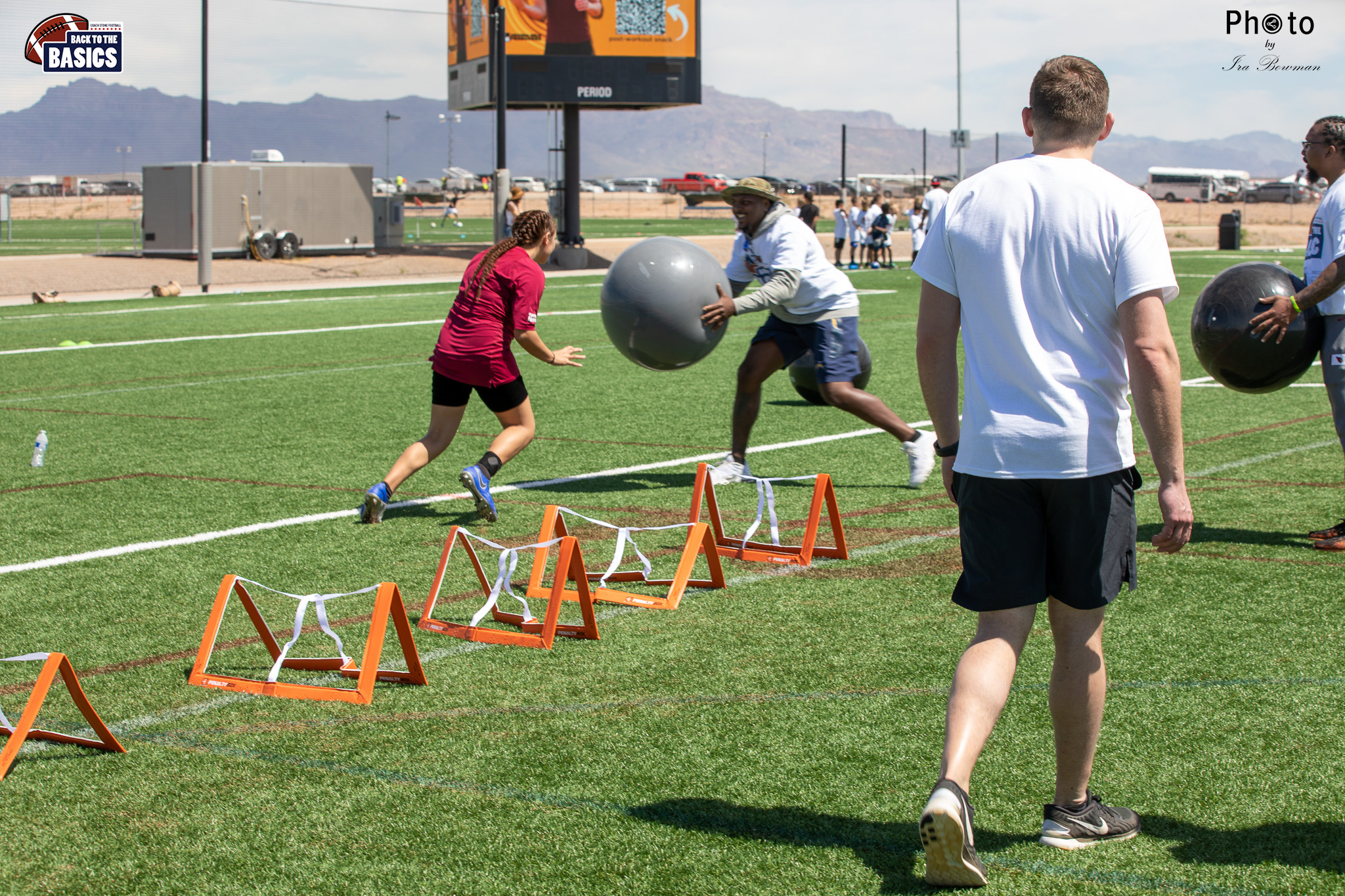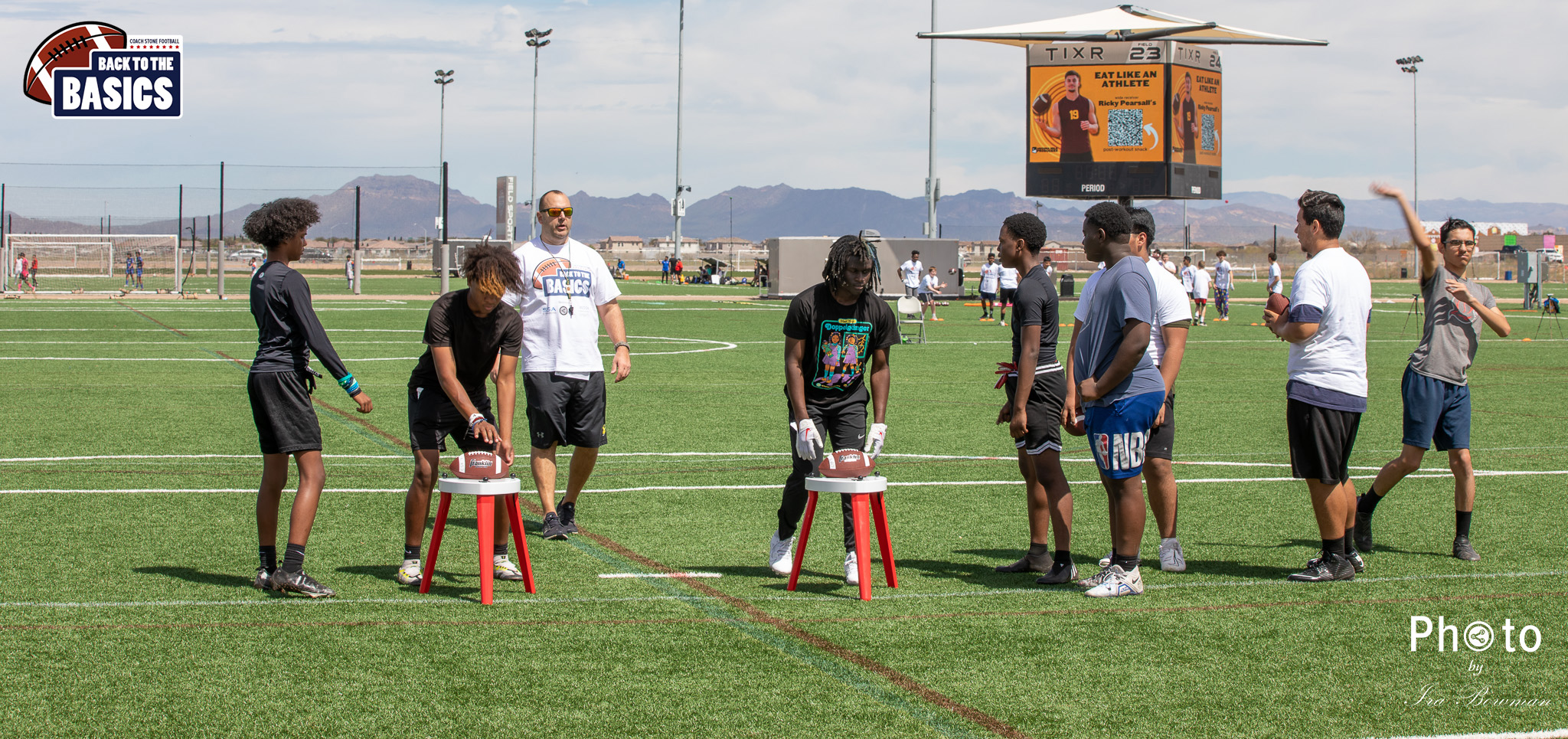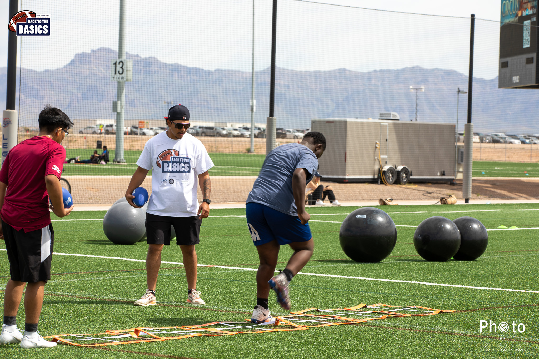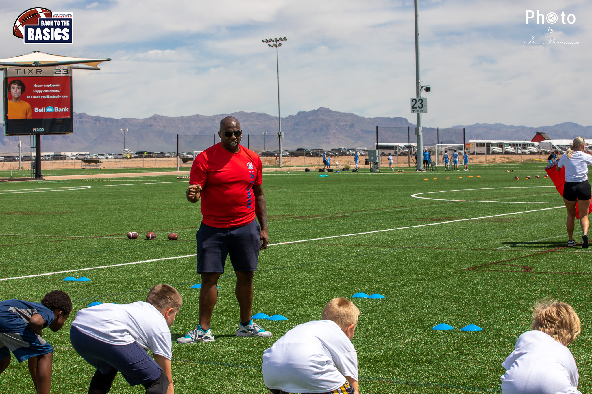 Steinberg Sports Academy hosted the Back to the Basics football camp, with Coach Stone and several former NFL Football Players including Super Bowl winning Chukky Okobi, Reggie Walker, David Carter and Charmeachealle Moore II. All photos presented here were taken and are owned by Ira Bowman, and all rights are reserved.