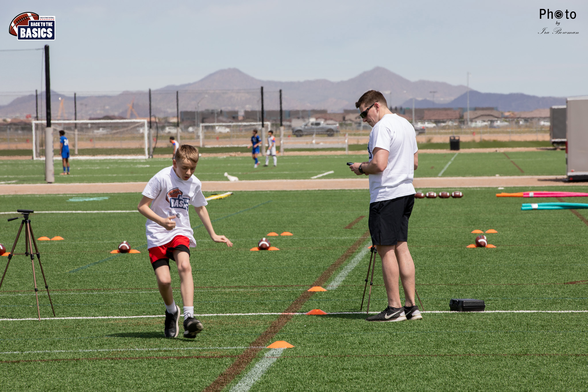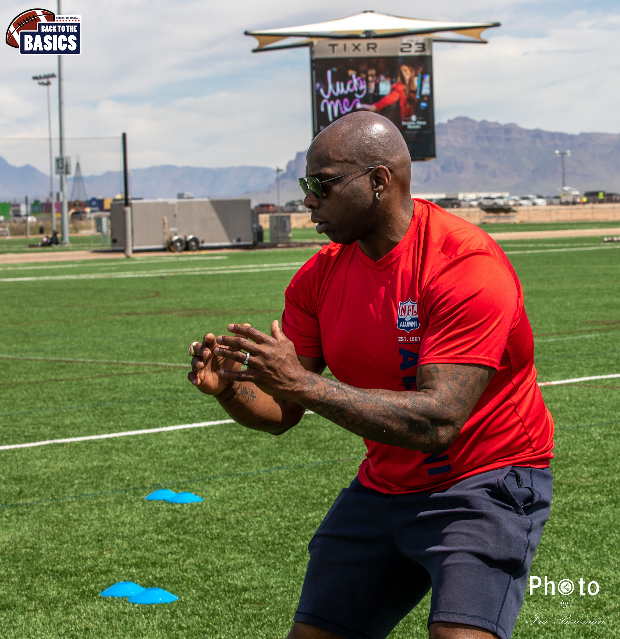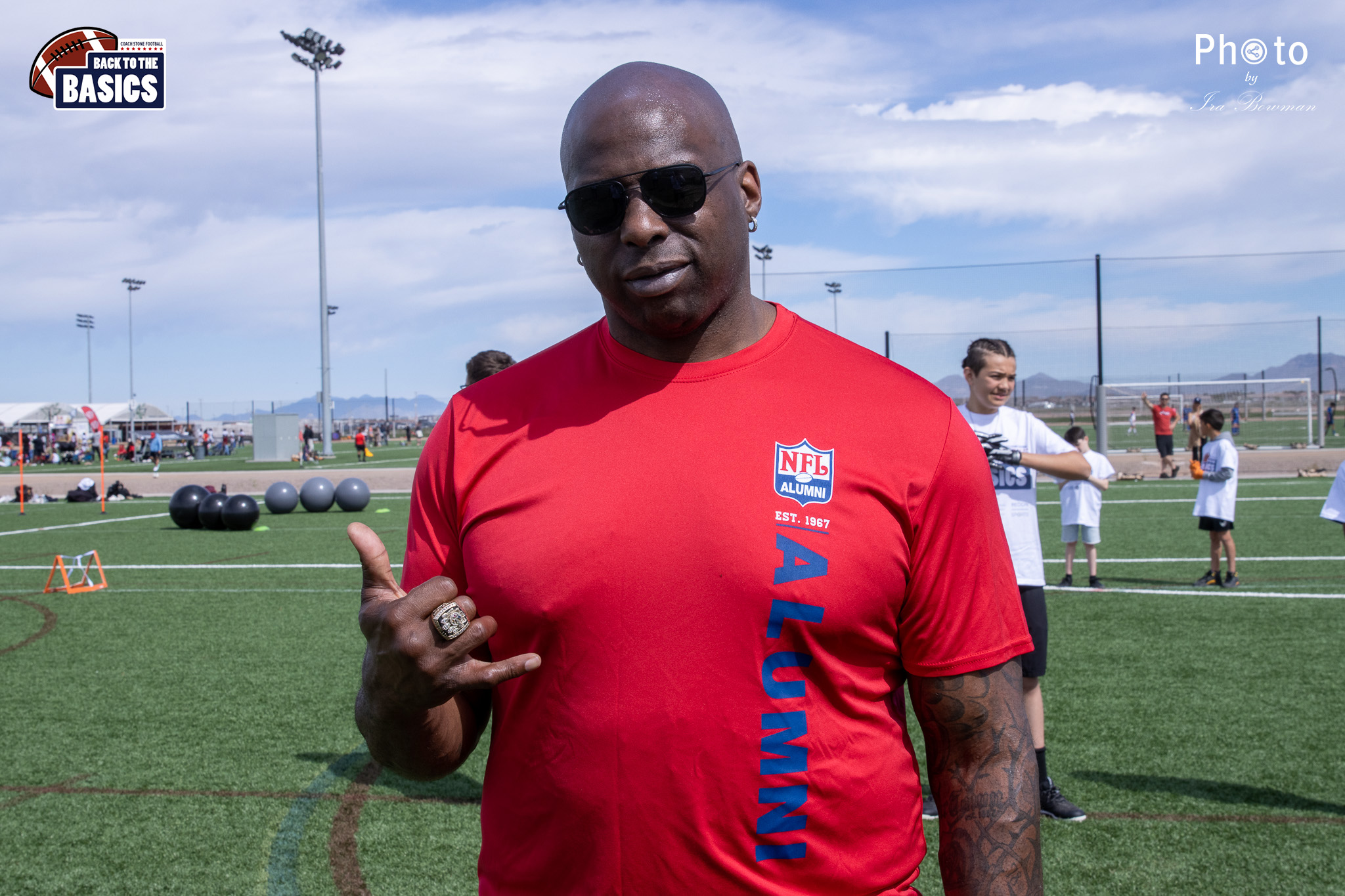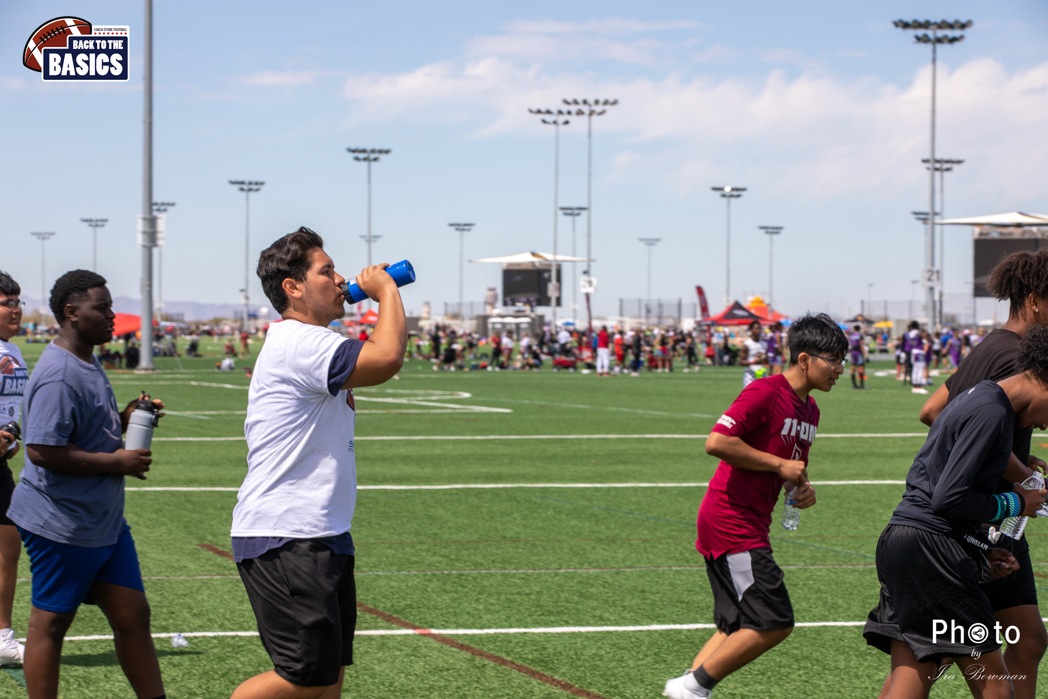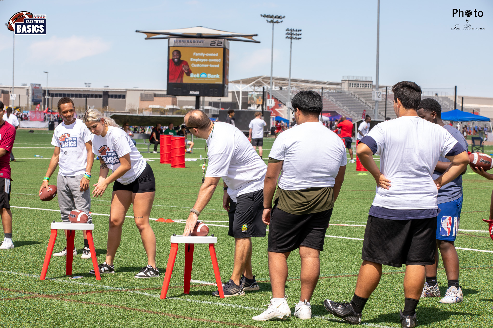 Steinberg Sports Academy hosted the Back to the Basics football camp, with Coach Stone and several former NFL Football Players including Super Bowl winning Chukky Okobi, Reggie Walker, David Carter and Charmeachealle Moore II. All photos presented here were taken and are owned by Ira Bowman, and all rights are reserved.